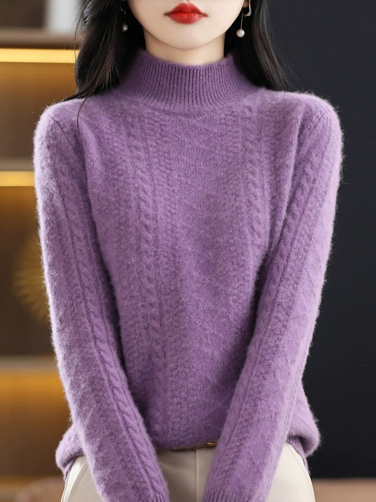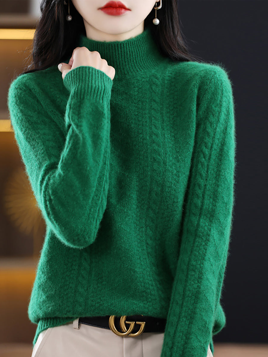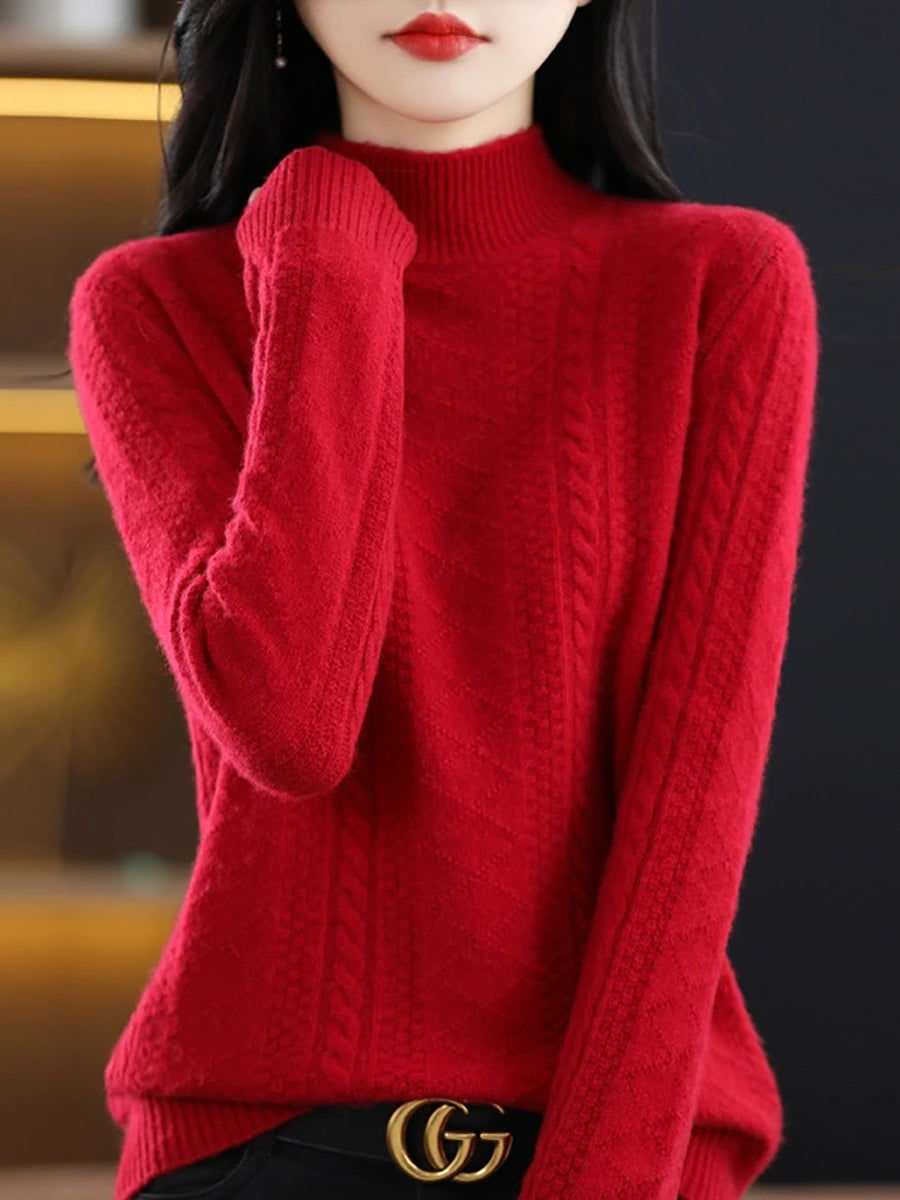 סוודר סרוג חצי גולף בצבע טהור לחורף לנשים