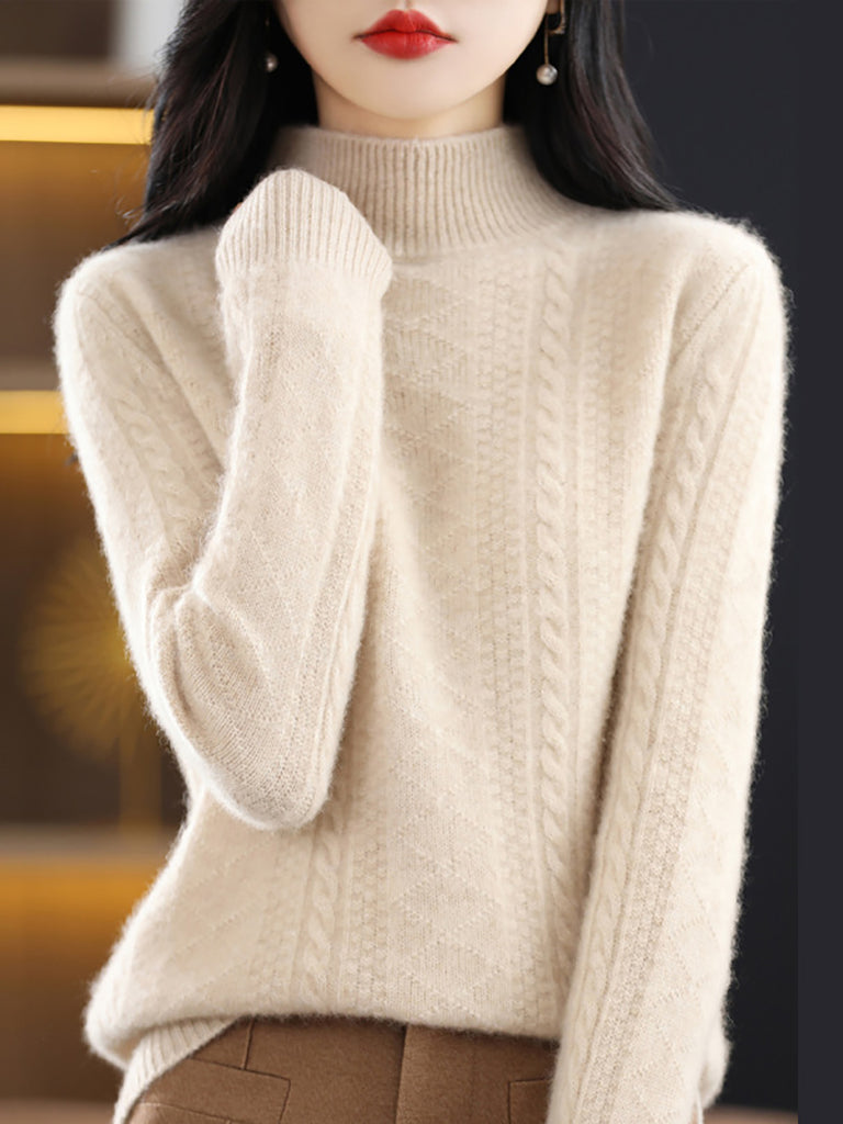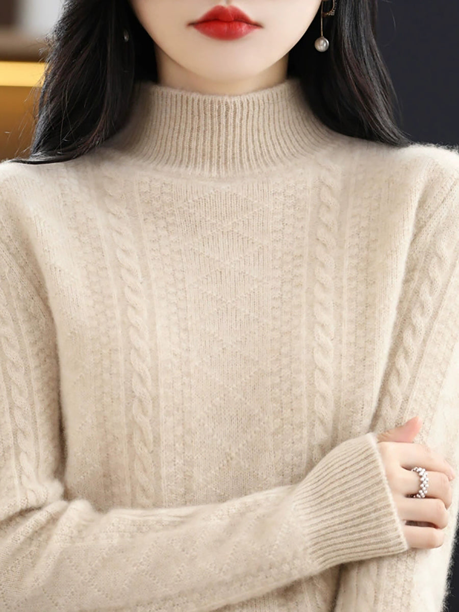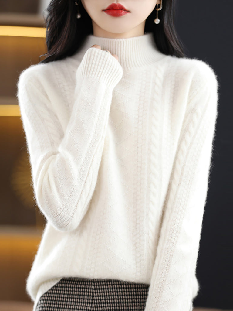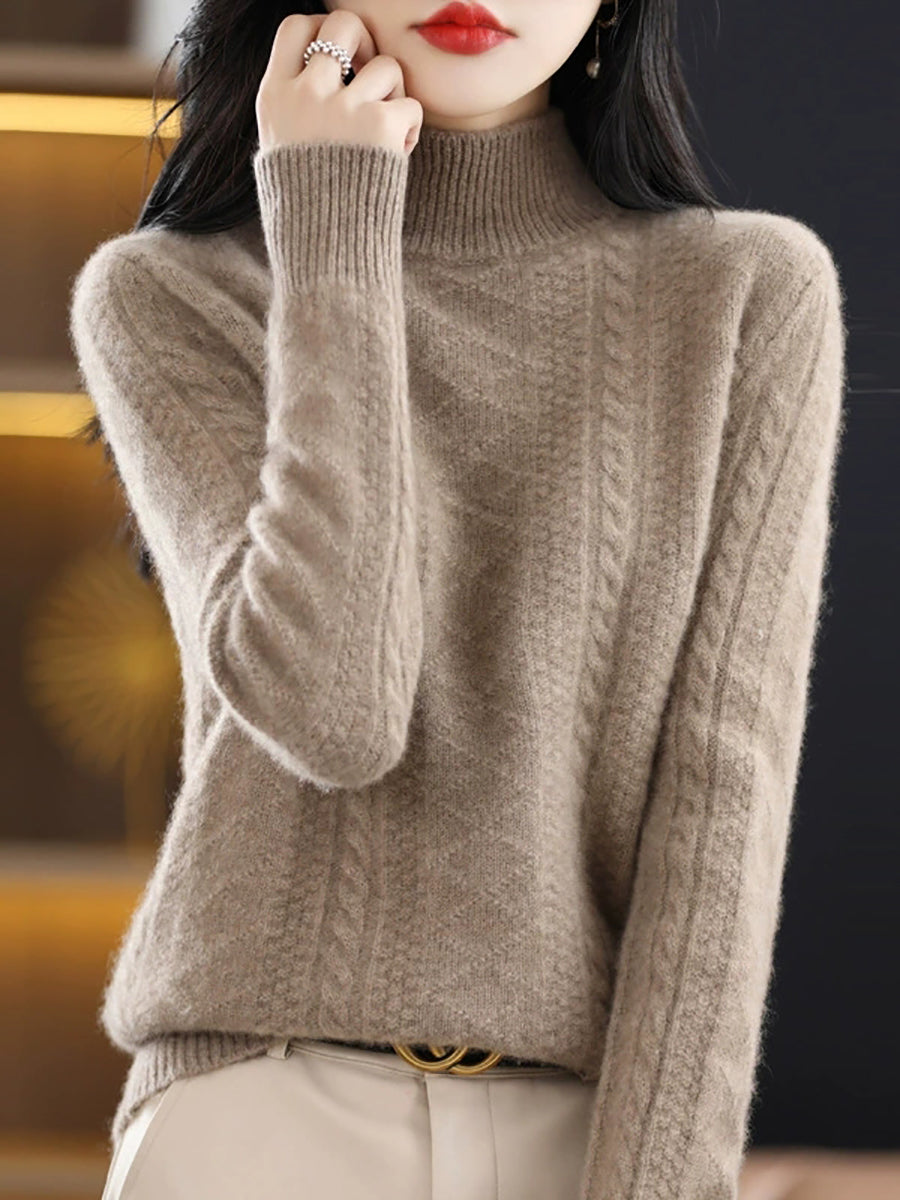סוודר סרוג חצי גולף בצבע טהור לחורף לנשים