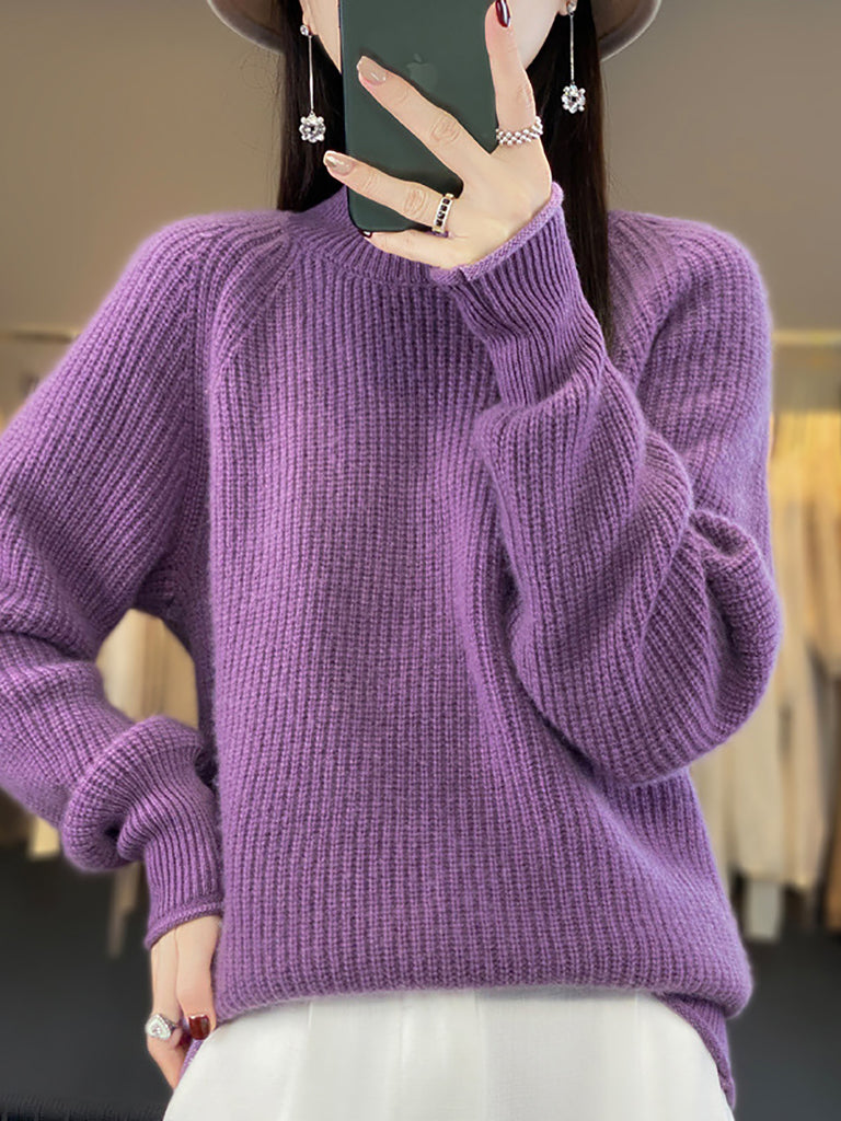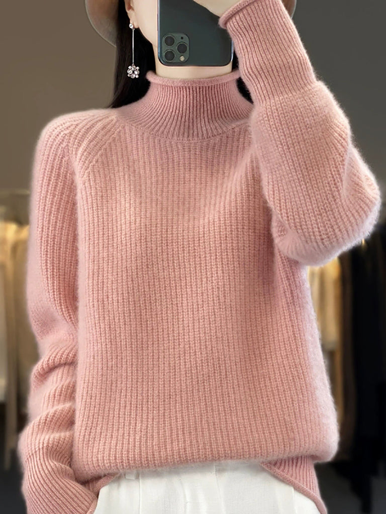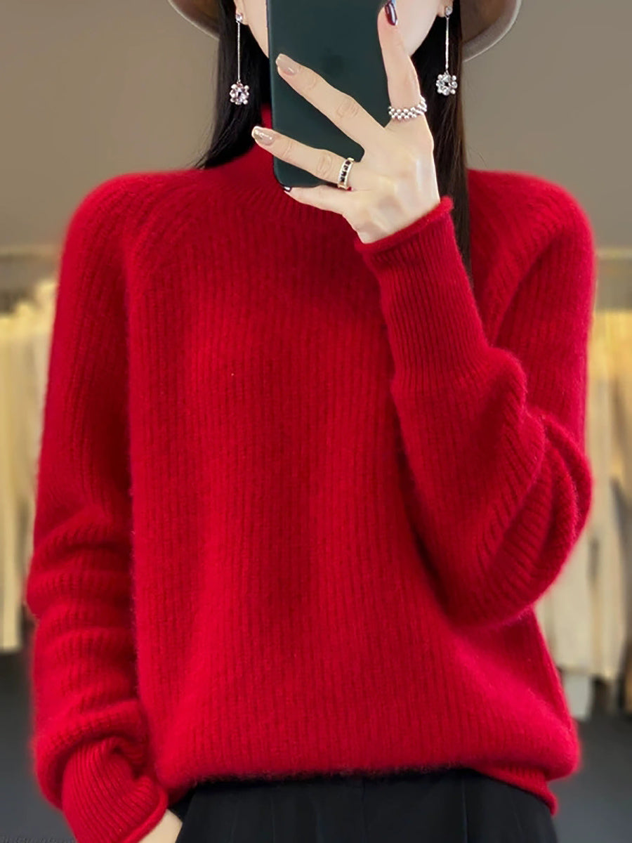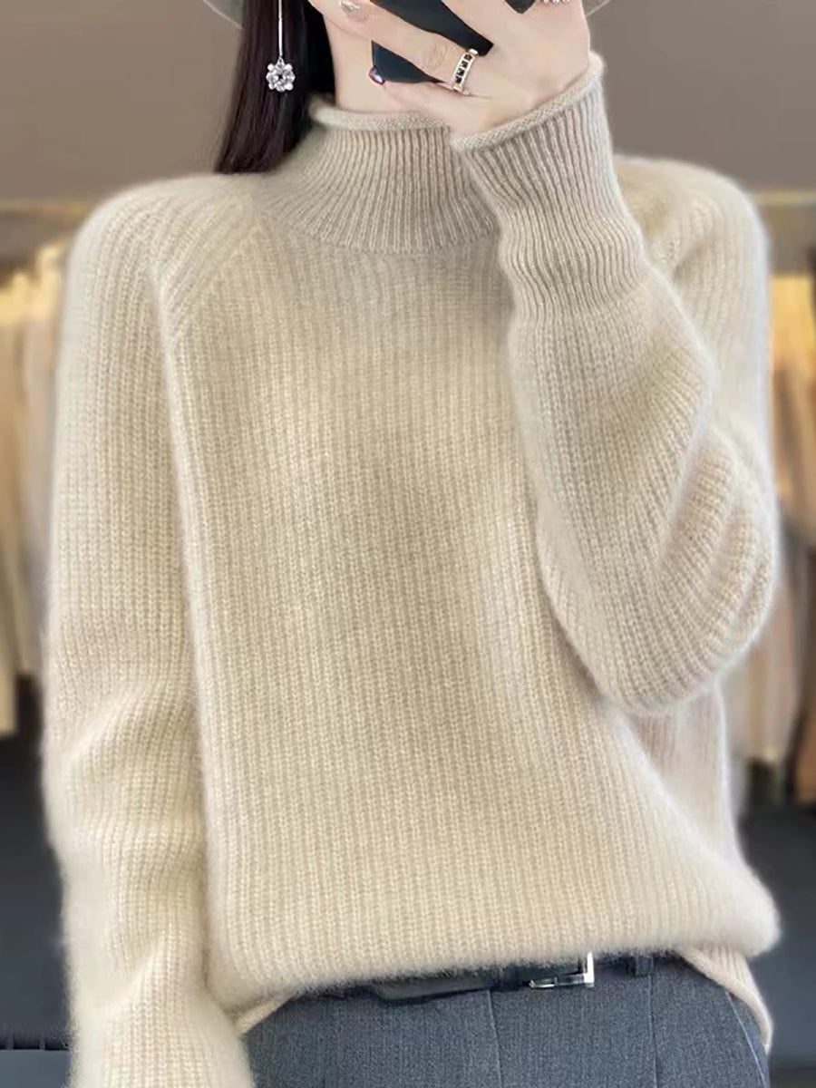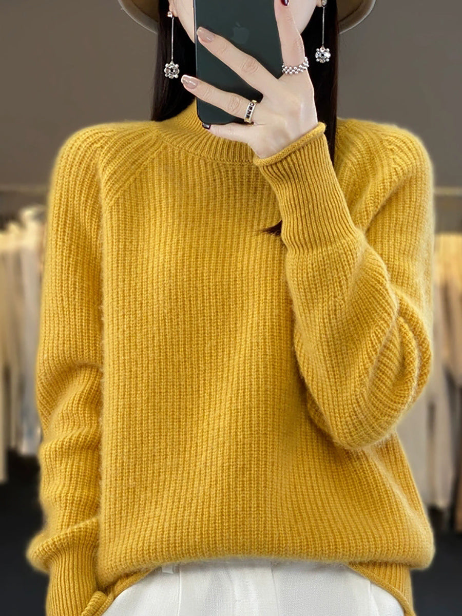 סוודר צמר גולף בצבע טהור לחורף לנשים