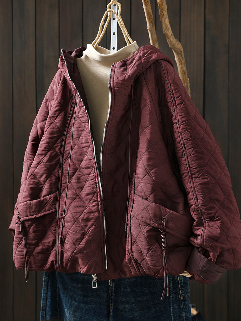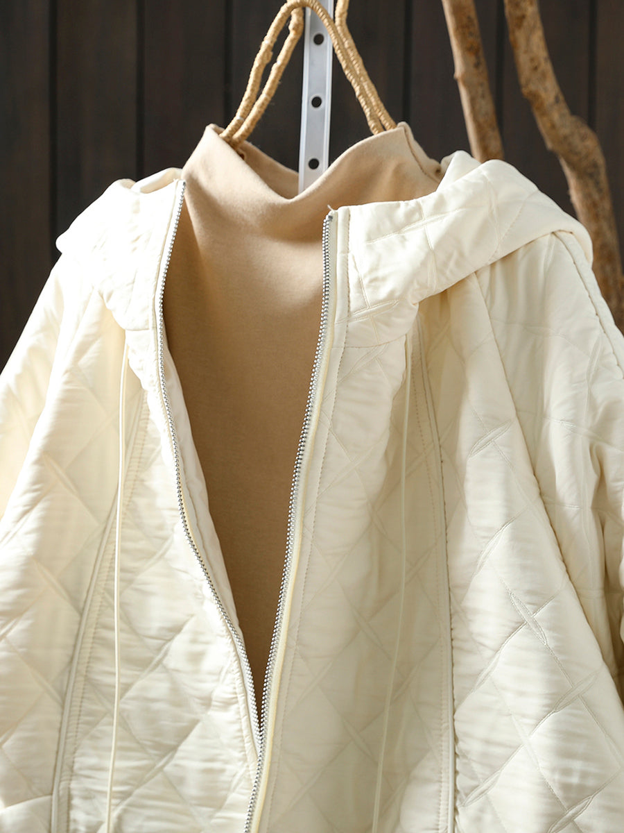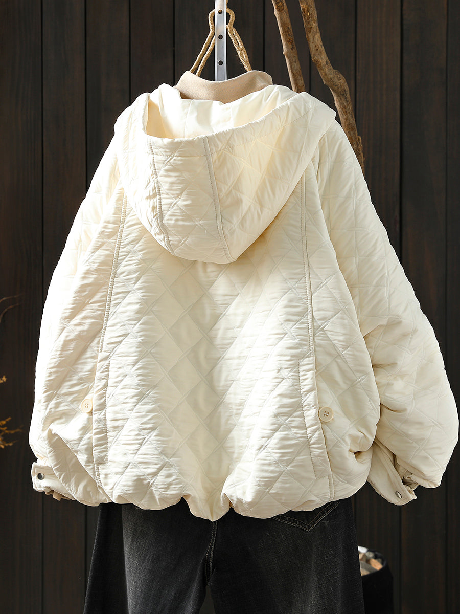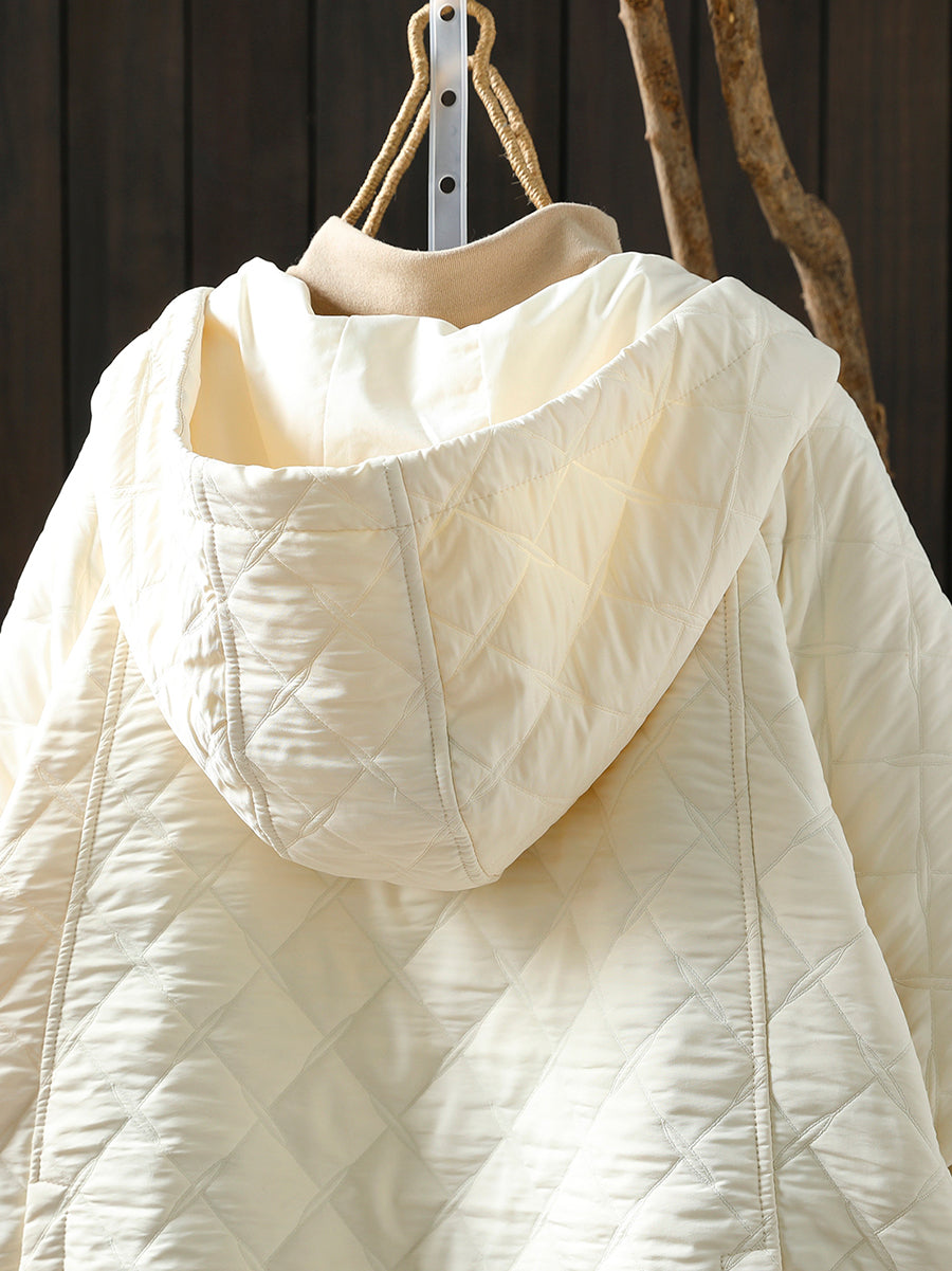 מעיל מרופד בצבע טהור לחורף לנשים עם קפוצ'ון