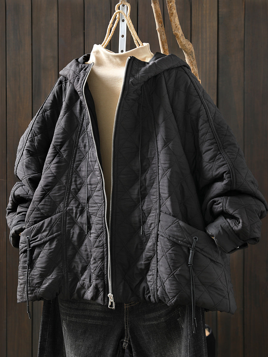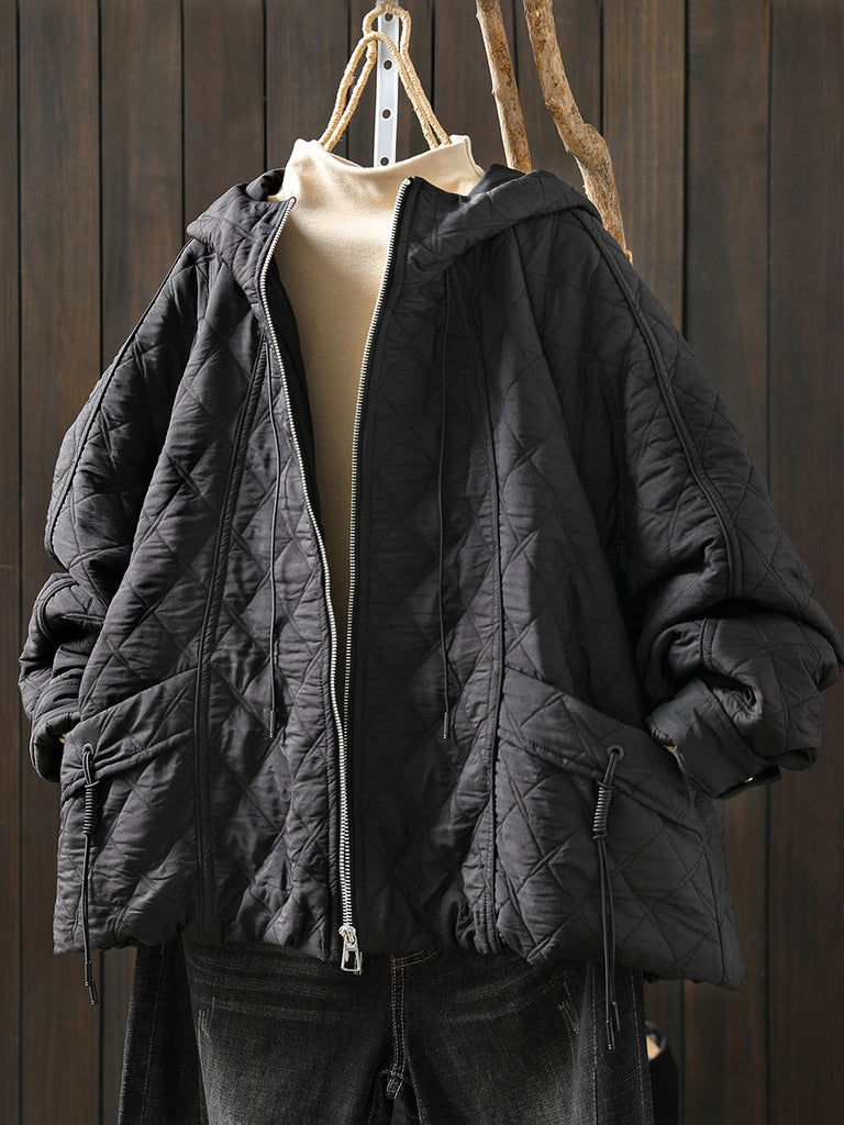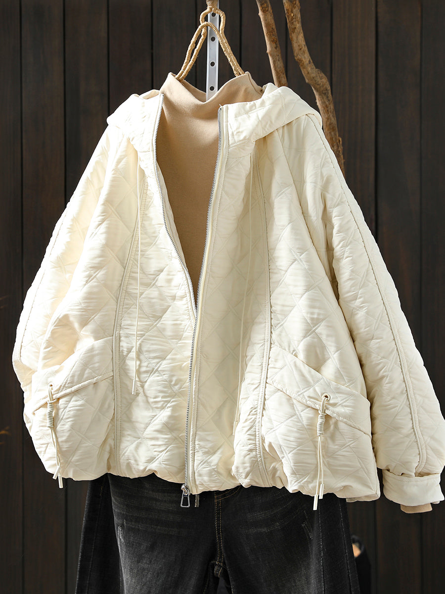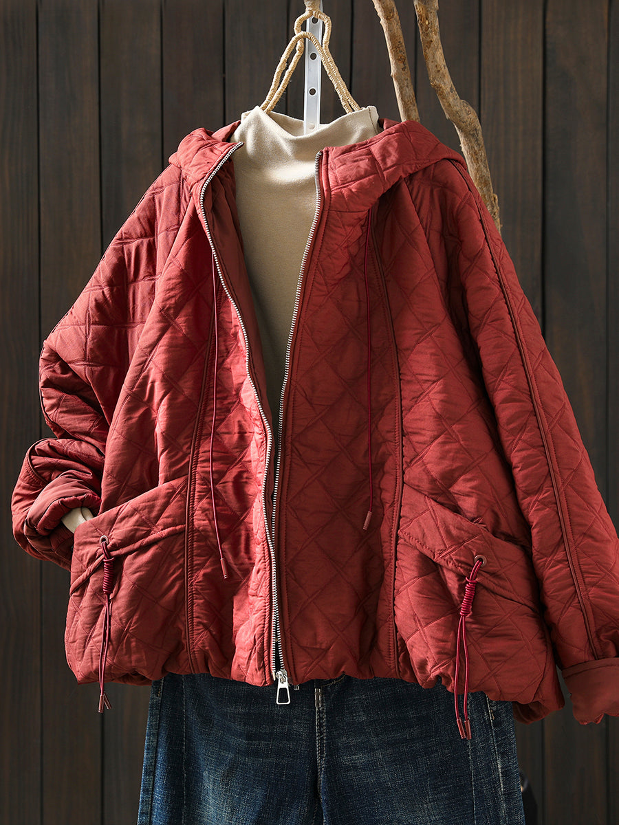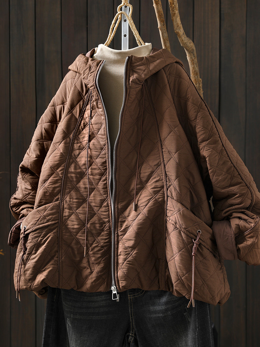 מעיל מרופד בצבע טהור לחורף לנשים עם קפוצ'ון