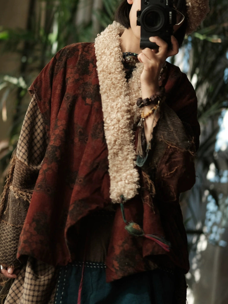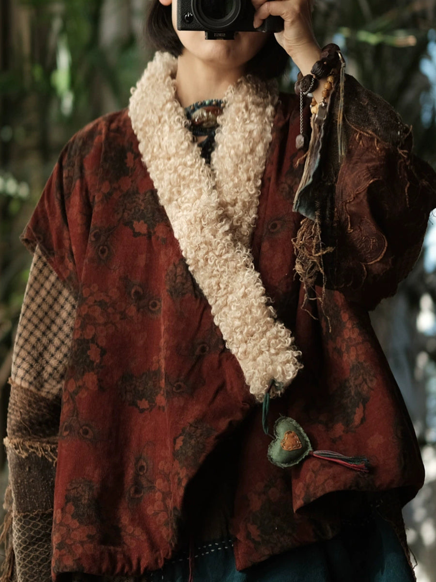 אפוד מרופד עם שוליים מצופים פרחים וינטג' לנשים