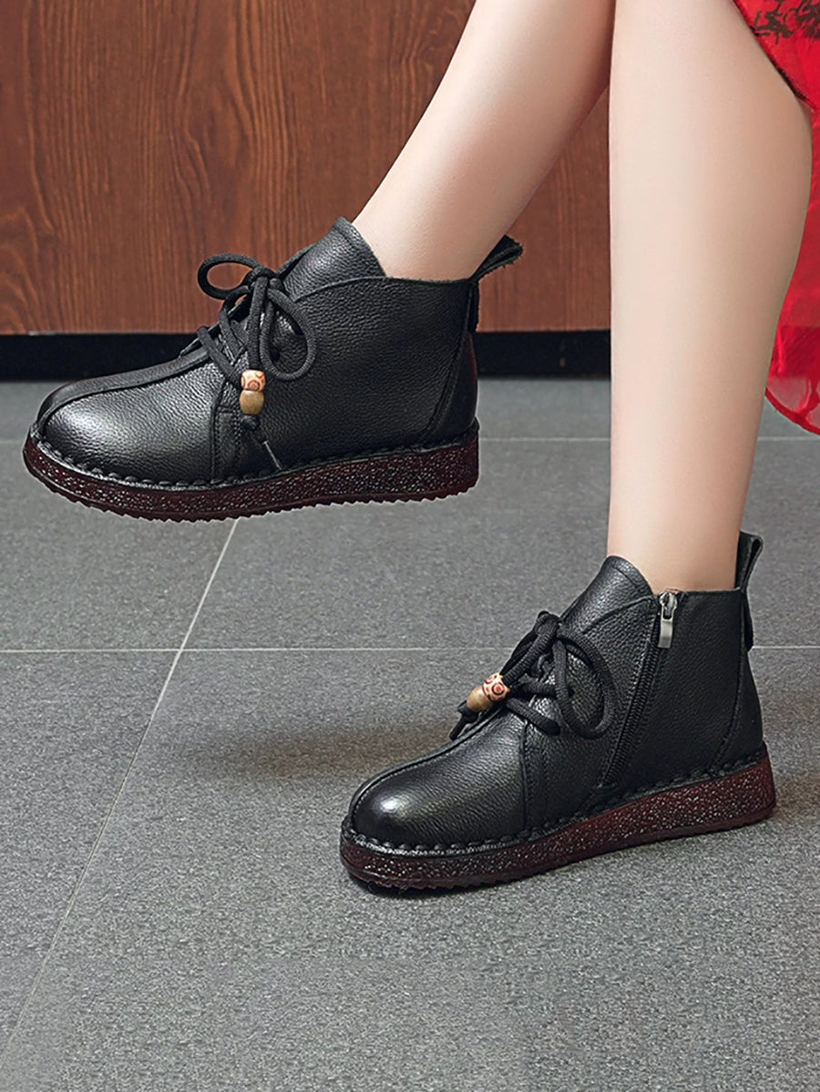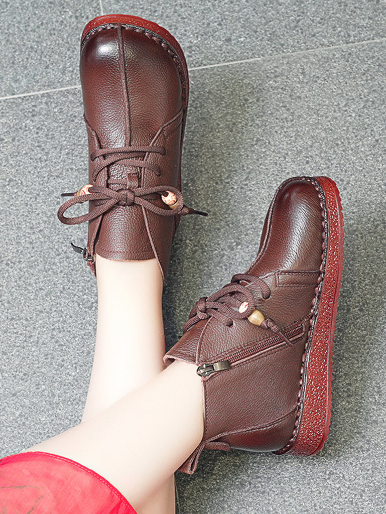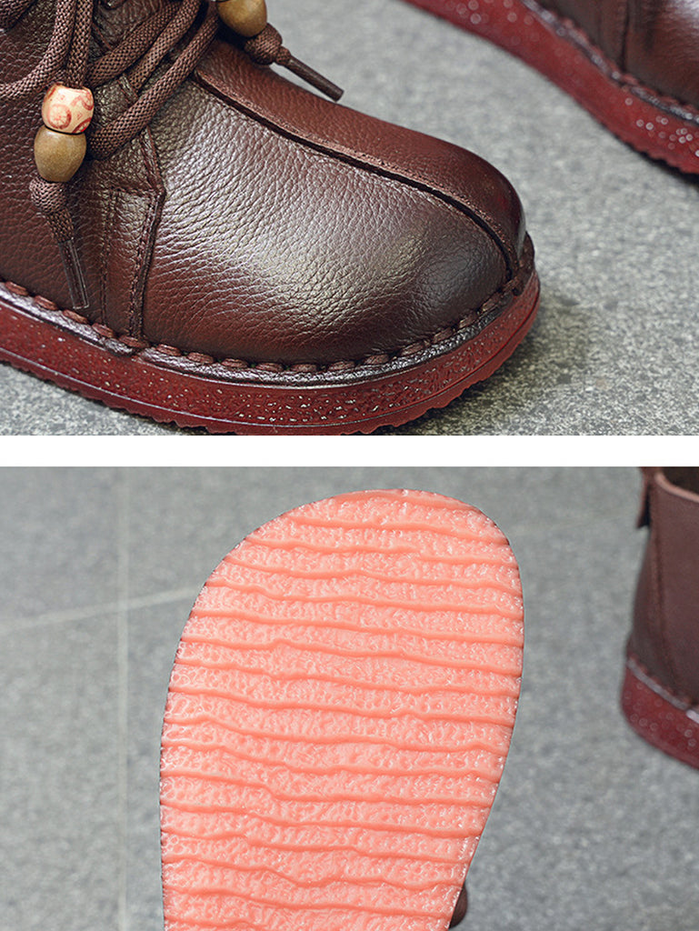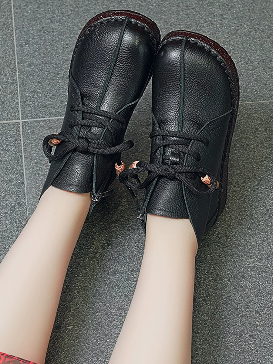 מגפי עור אמיתי וינטג' לנשים עם עקבים נמוכים