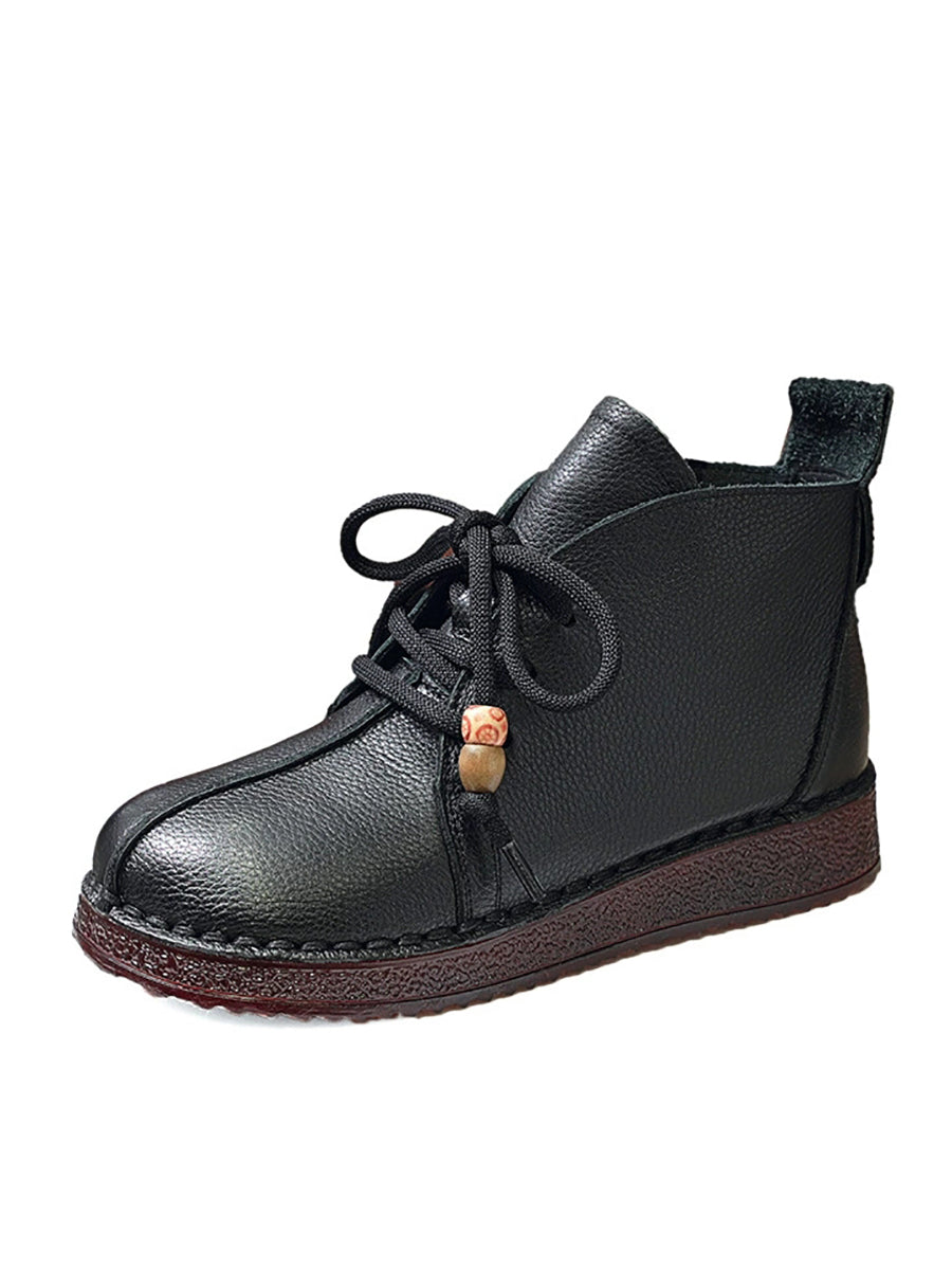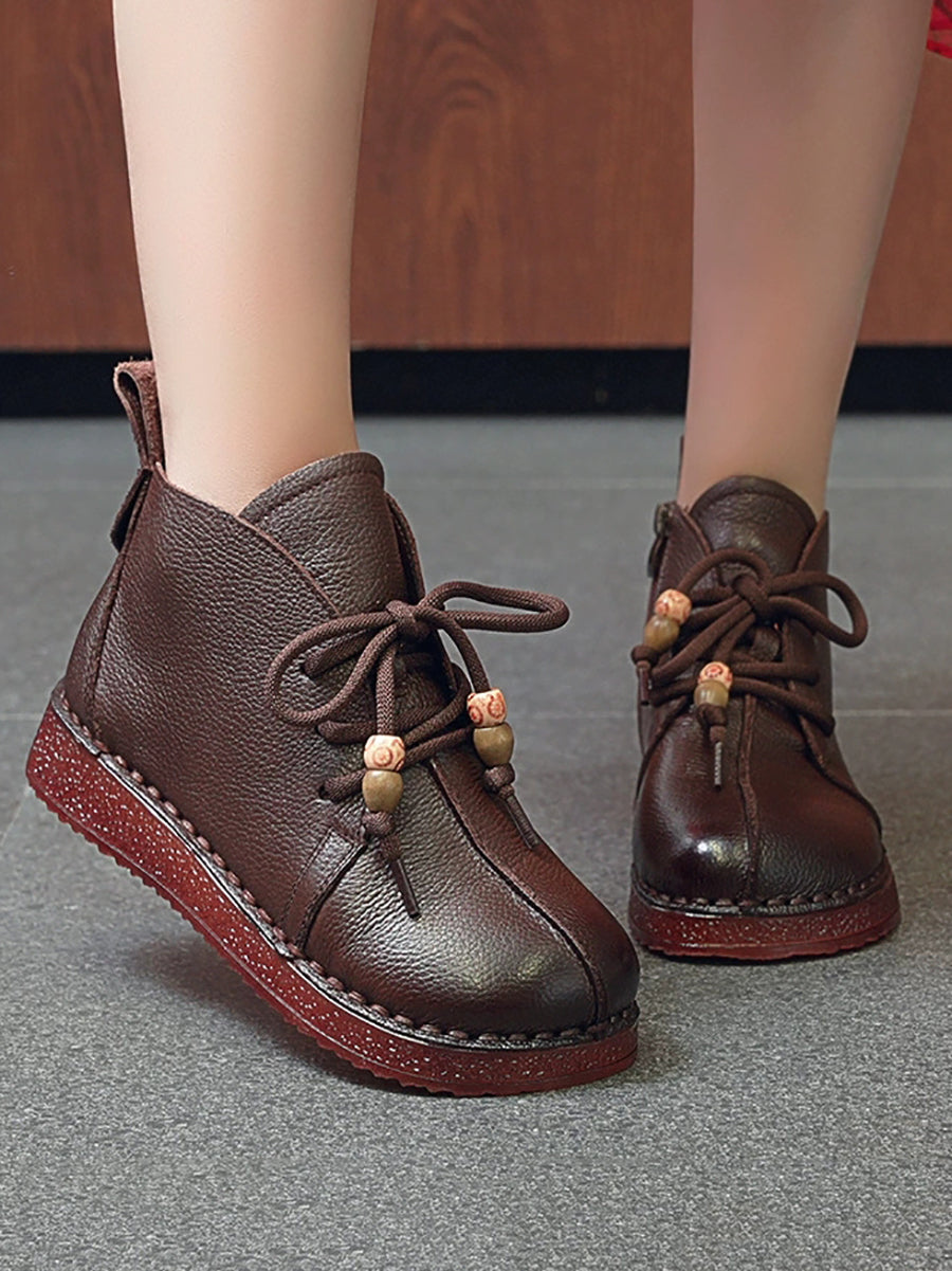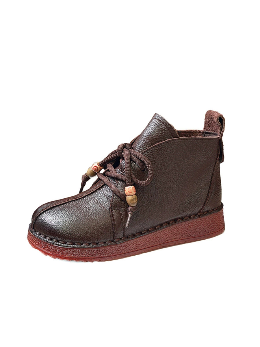 מגפי עור אמיתי וינטג' לנשים עם עקבים נמוכים