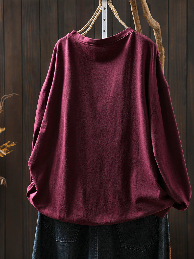 חולצת כותנה עם צווארון O פרחוני בסגנון סתיו לנשים
