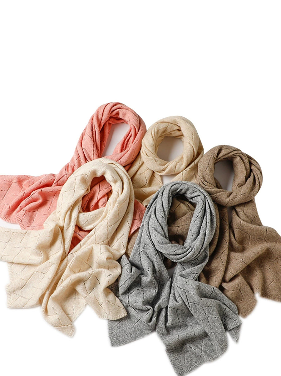 צעיף סרוג חלול בצבע טהור חורף לנשים