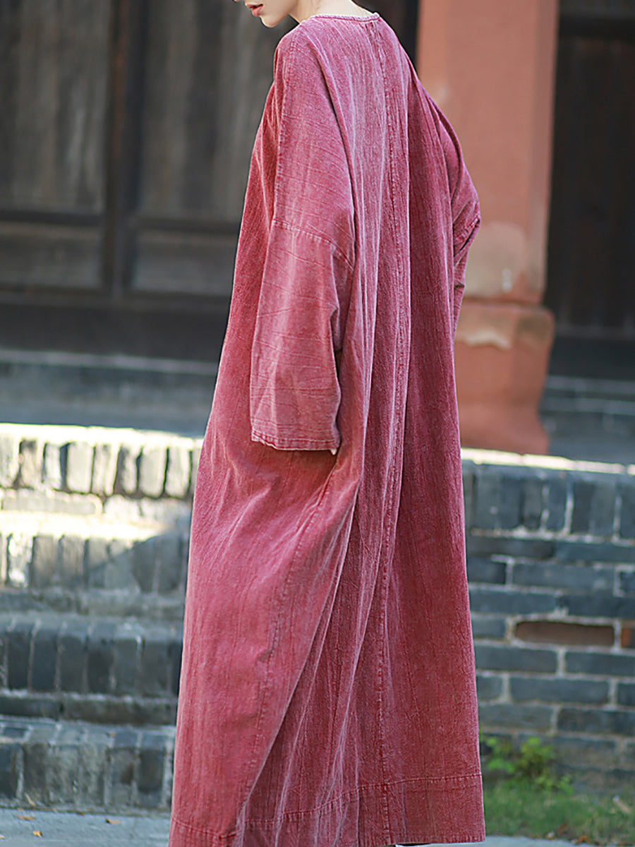 שמלת כותנה פשתן בצבע רטרו טהור לנשים בסתיו