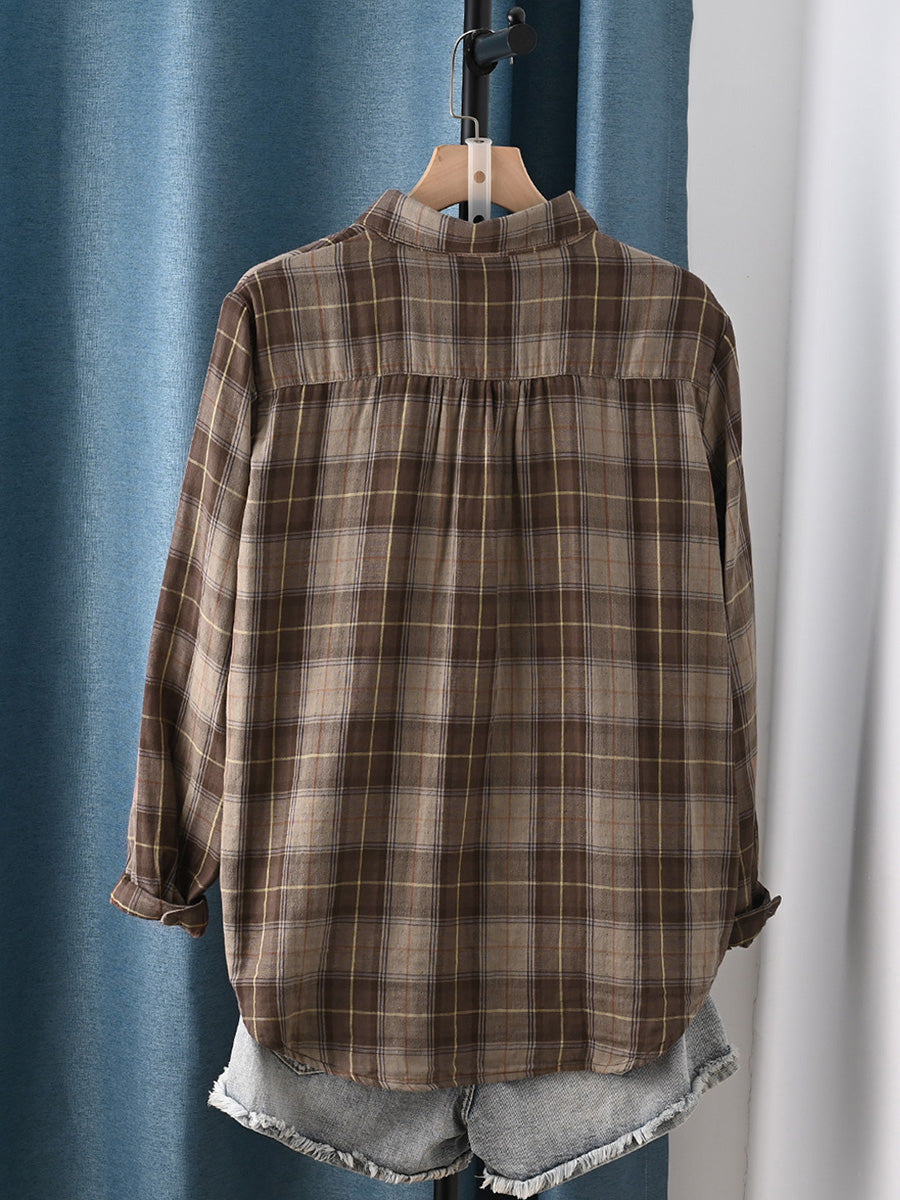חולצת אביב משובצת 100% כותנה לנשים בסגנון אומנותי