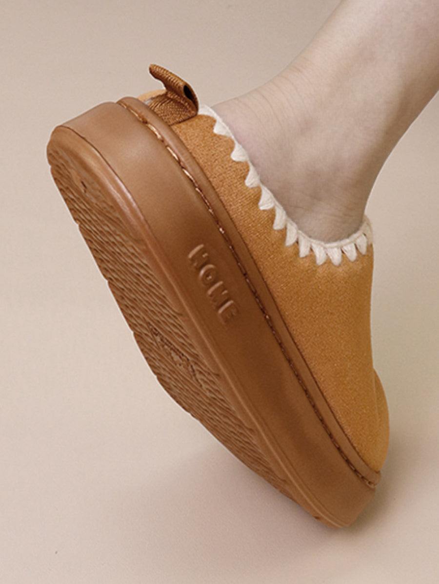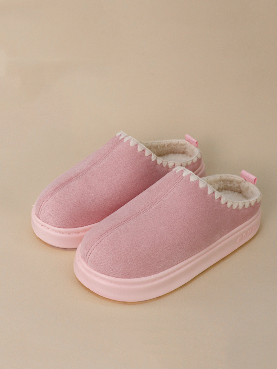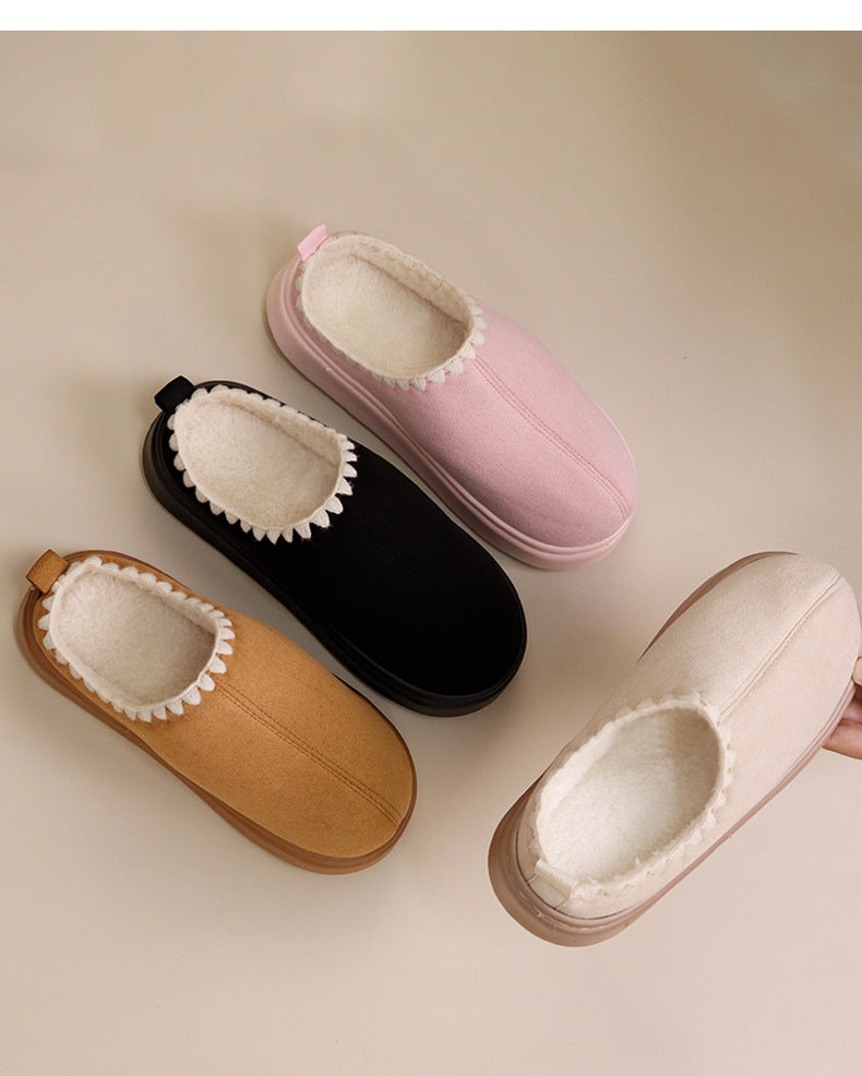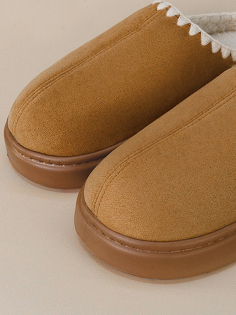 נעלי בית לזוג עם בטנת פליז בצבע טהור, חורף מזדמן