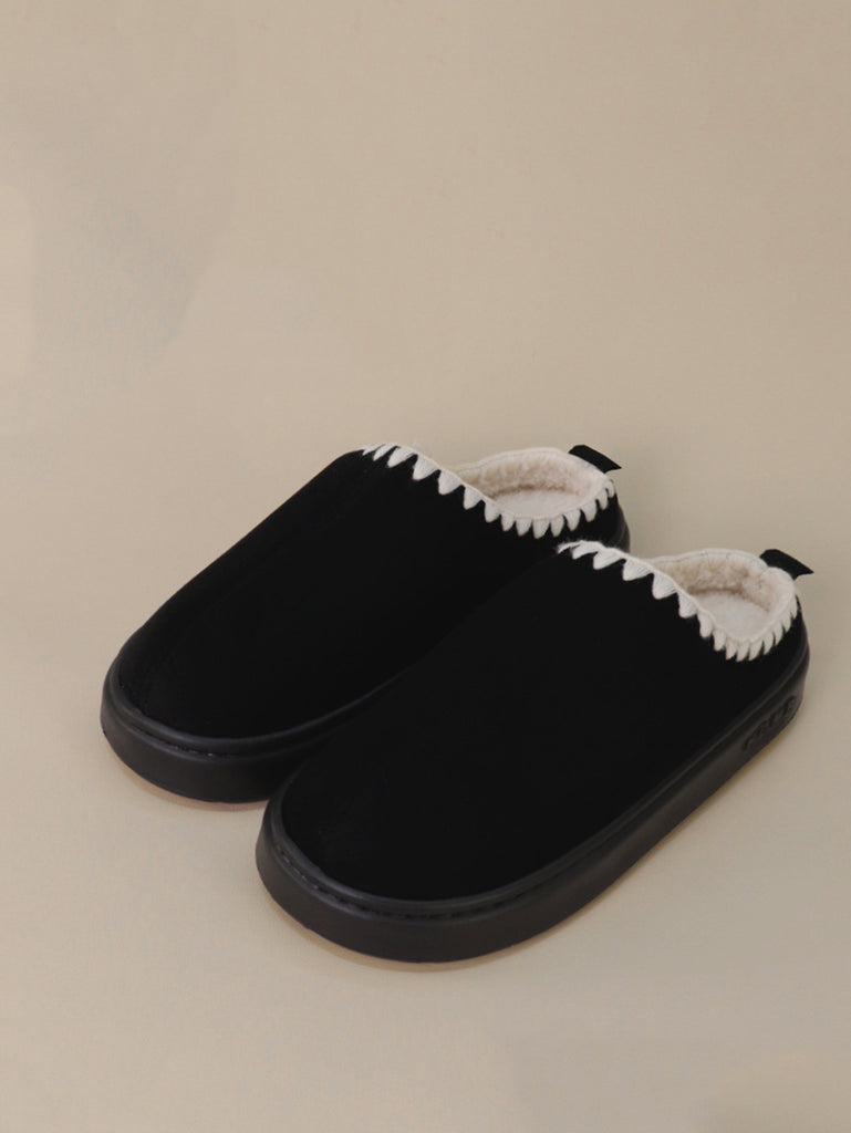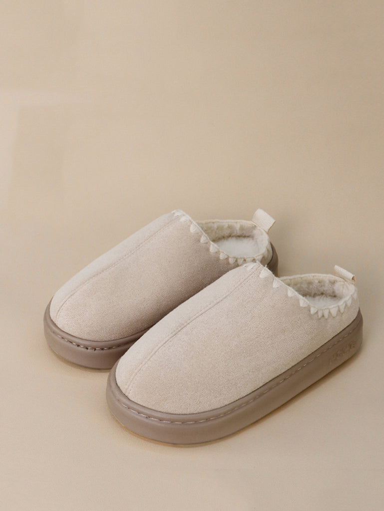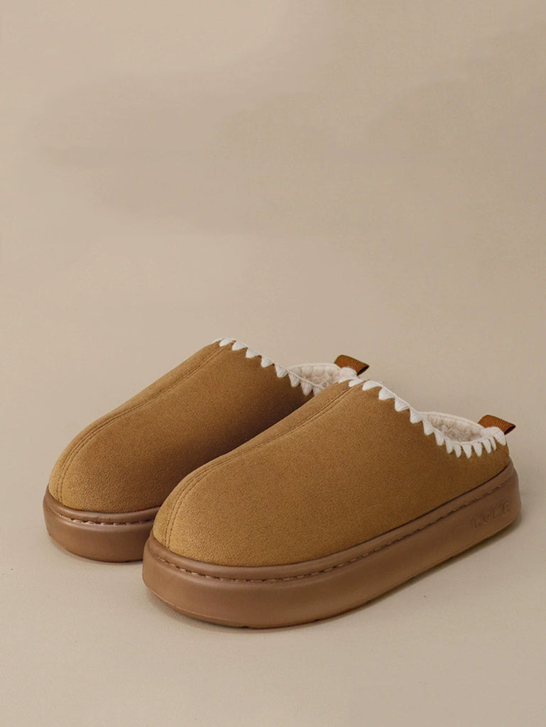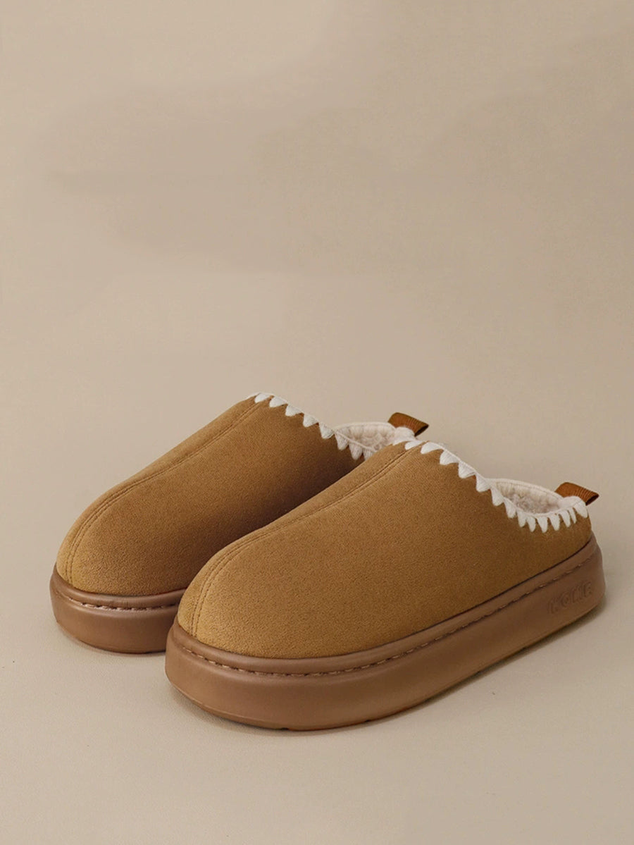 נעלי בית לזוג עם בטנת פליז בצבע טהור, חורף מזדמן