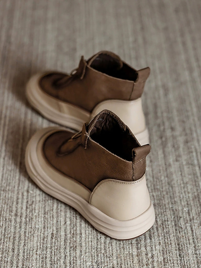 מגפי קרסול מעור רטרו עם רוכסן לנשים בסתיו