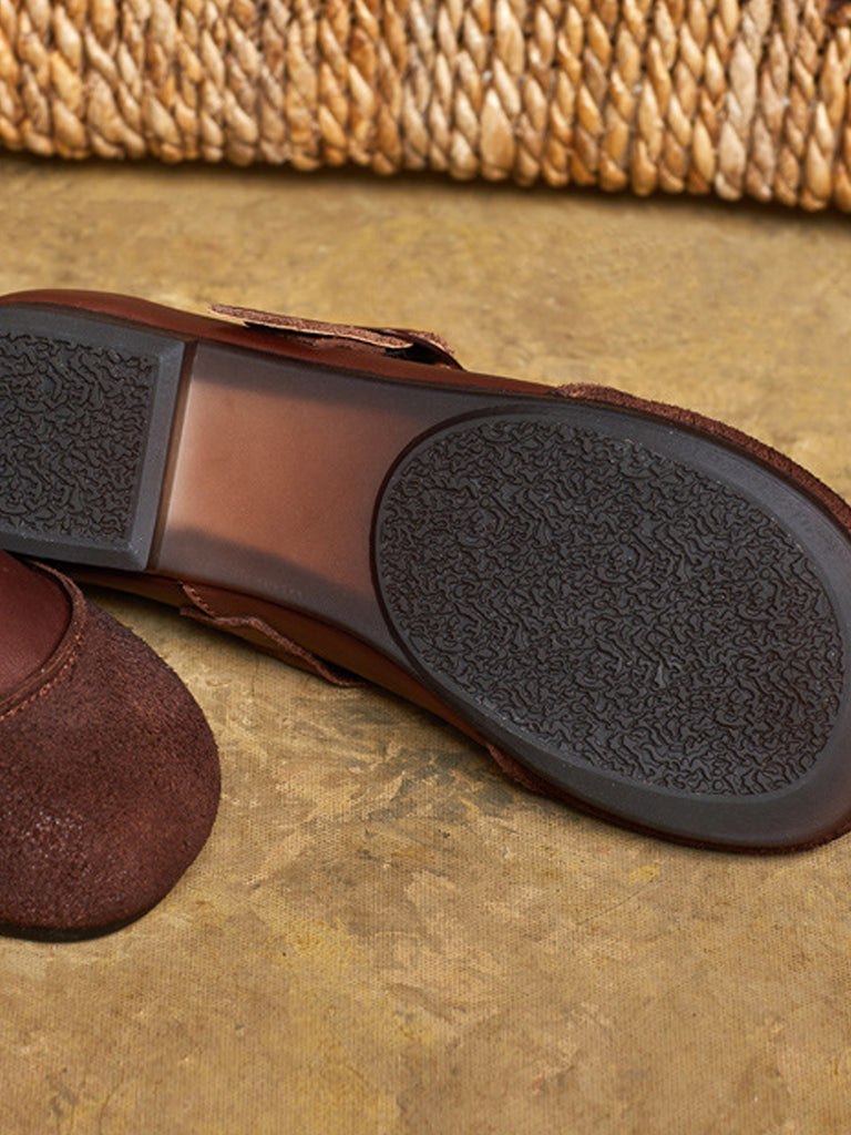 נעלי עור וינטג' לנשים בקיץ עם עקבים נמוכים