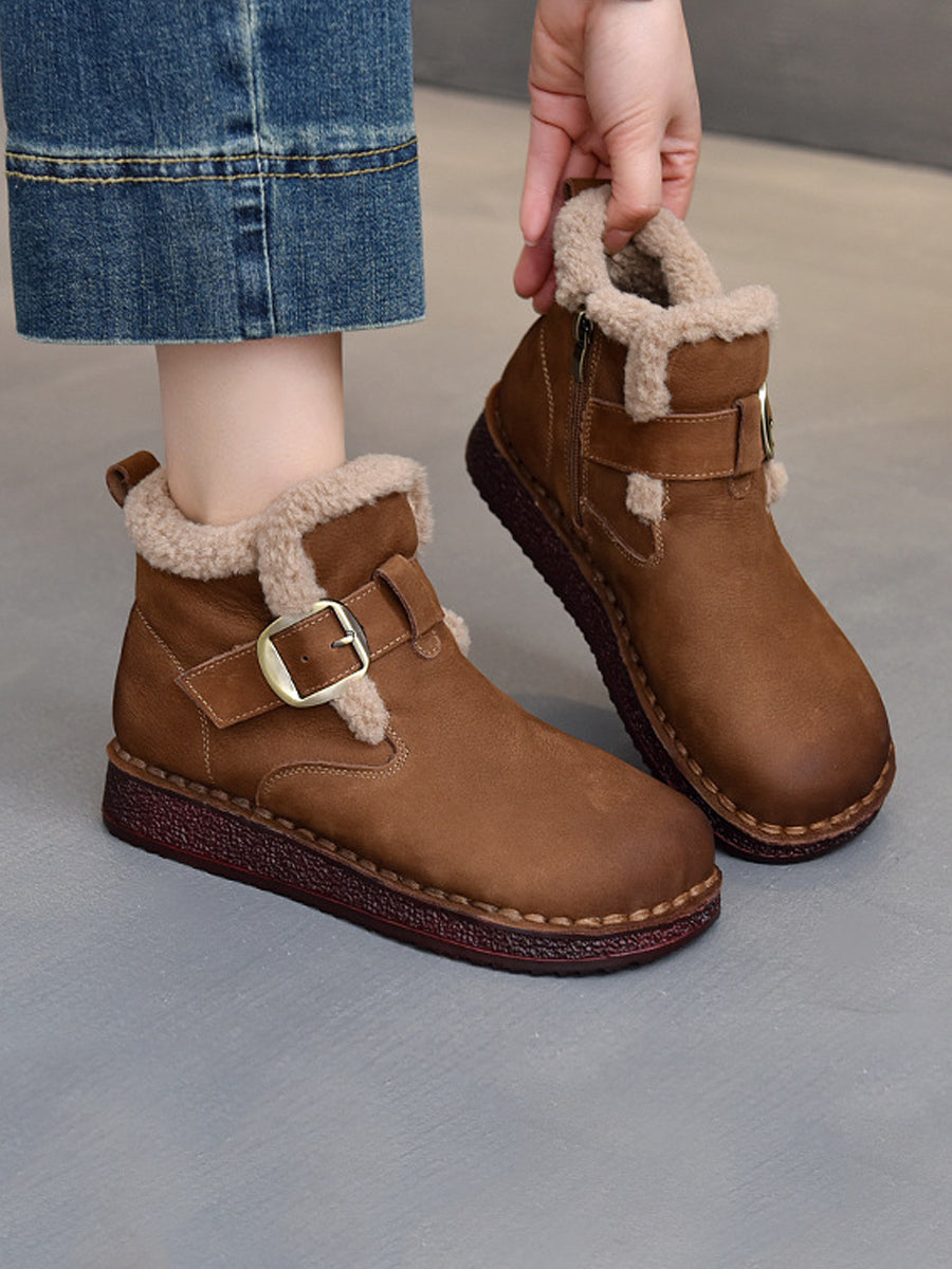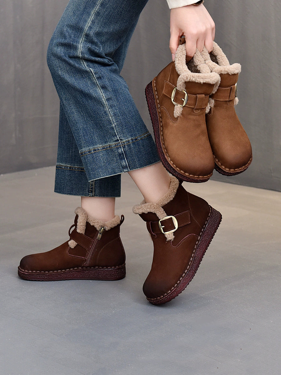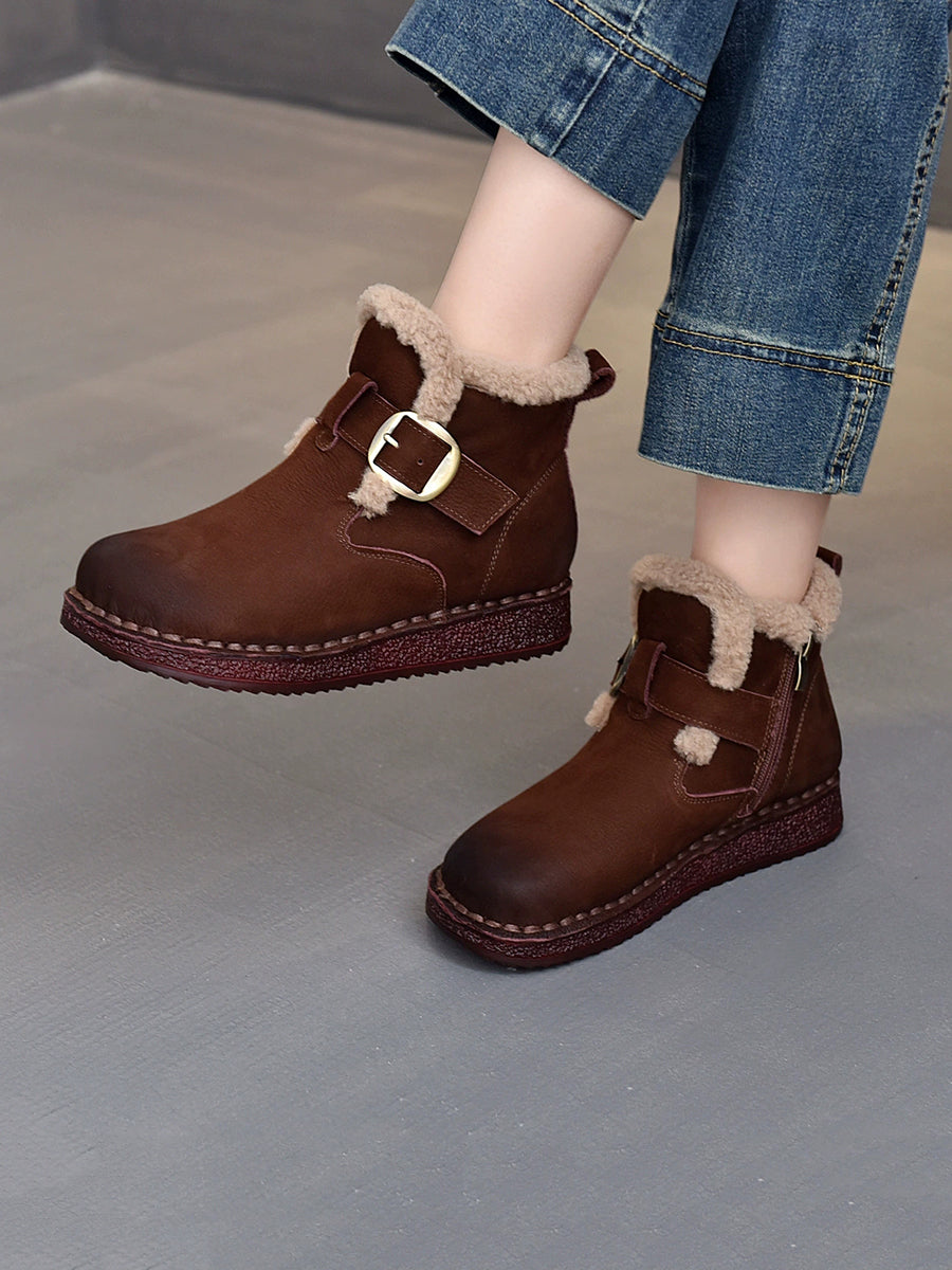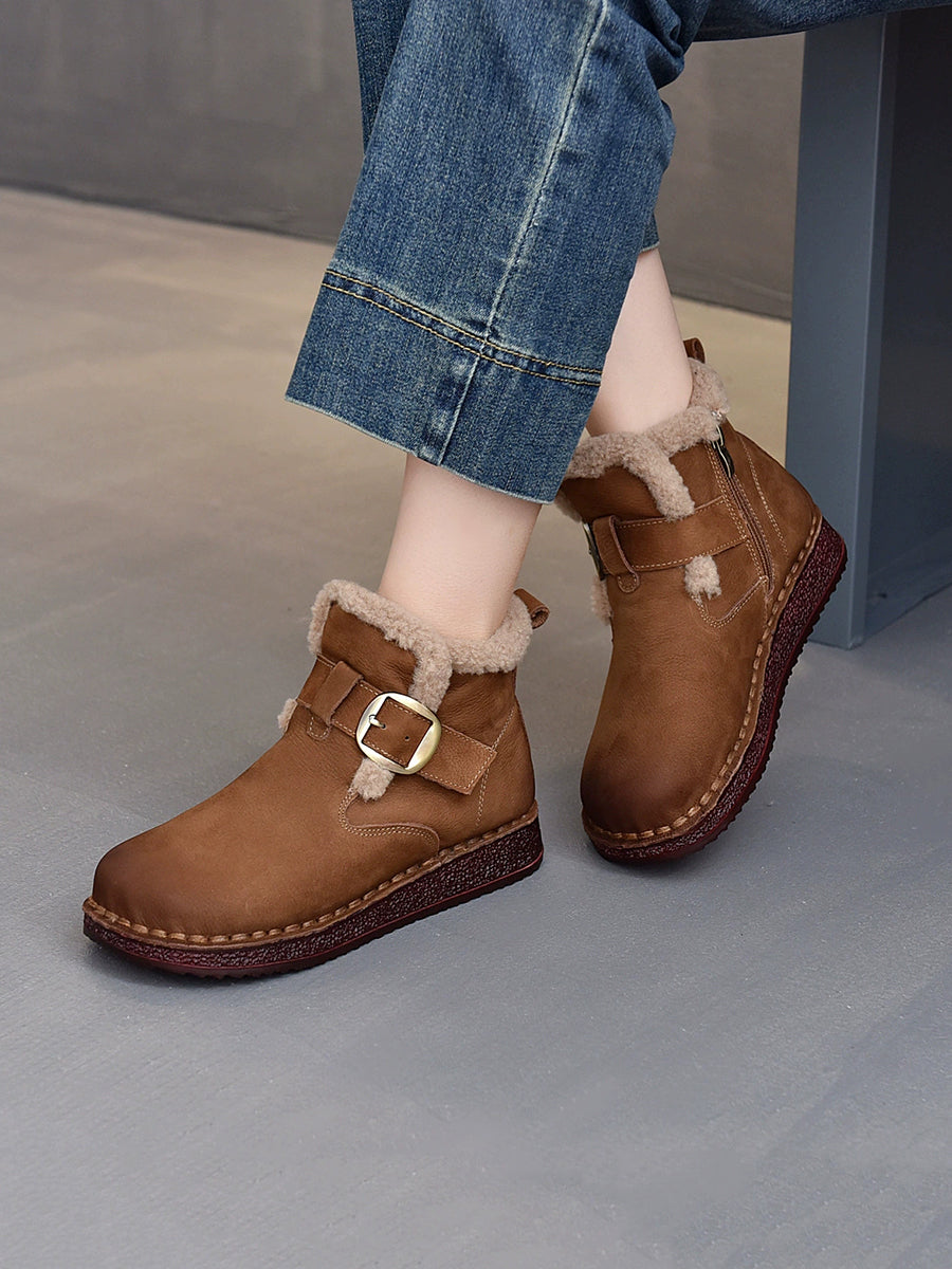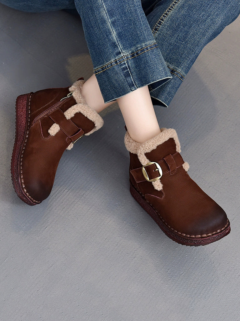 מגפי קרסול וינטג' מעור אמיתי לנשים עם בטנת פליז