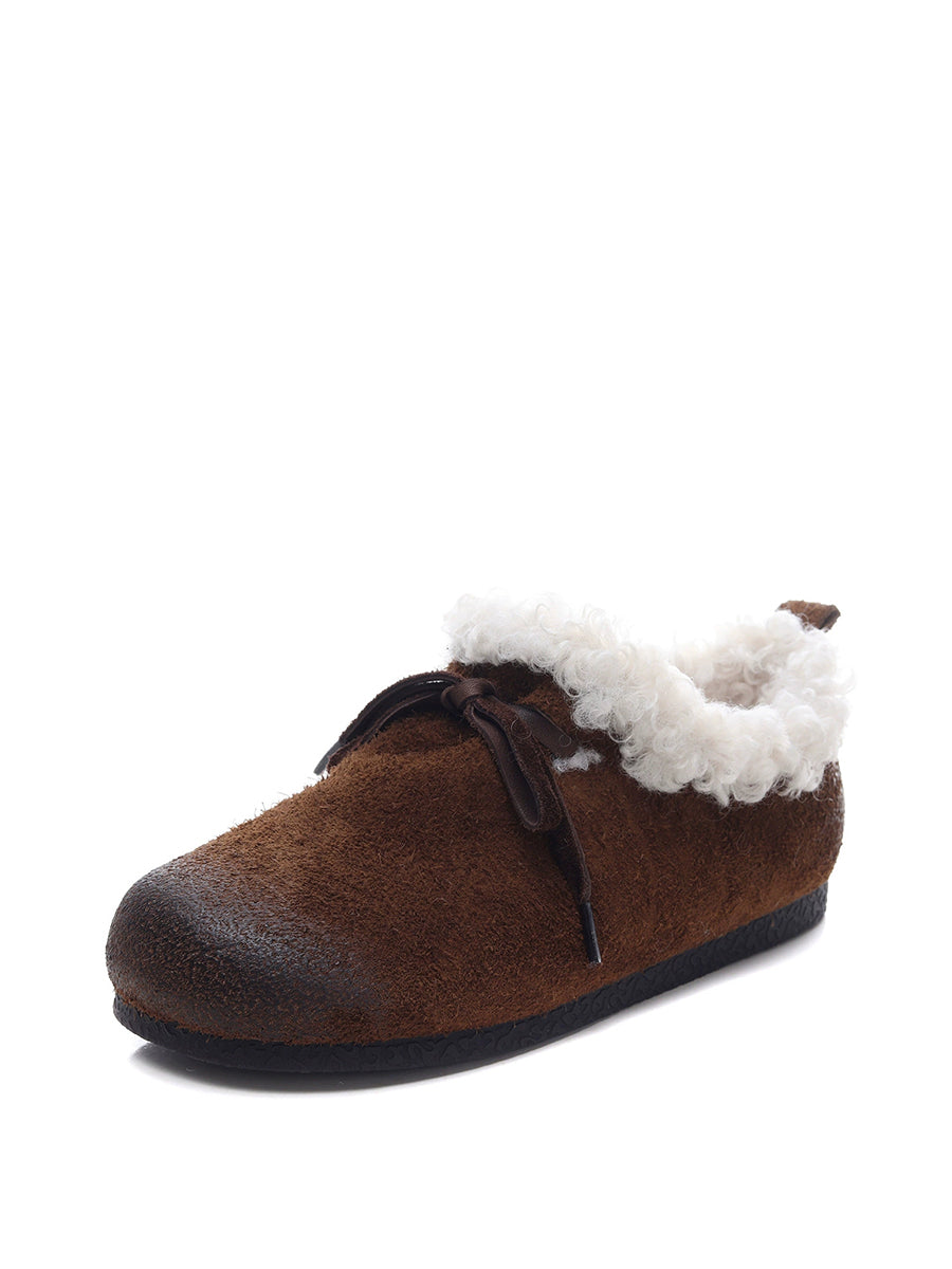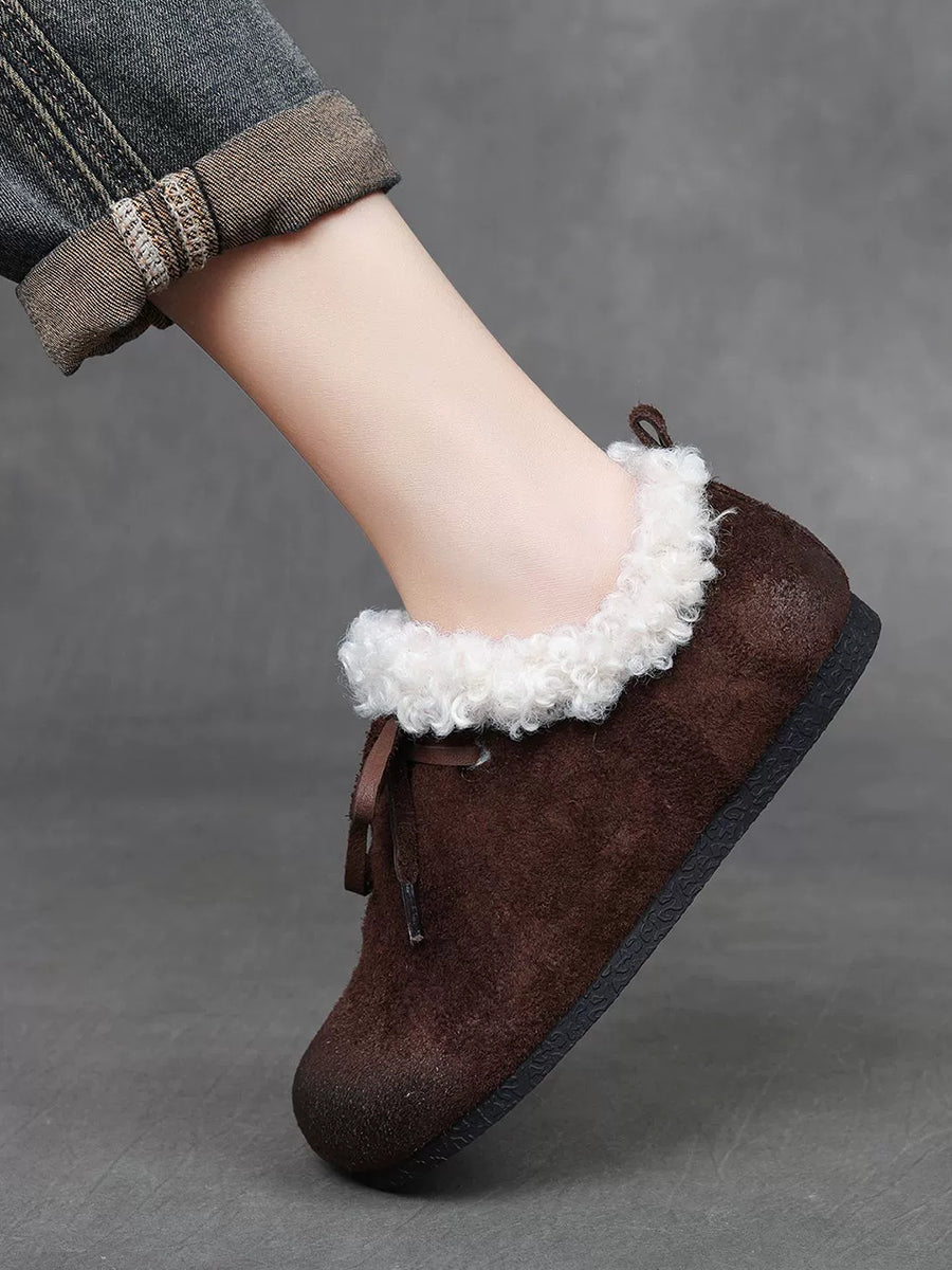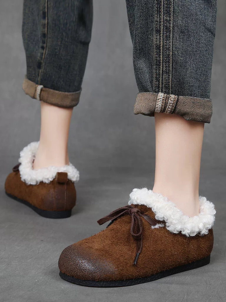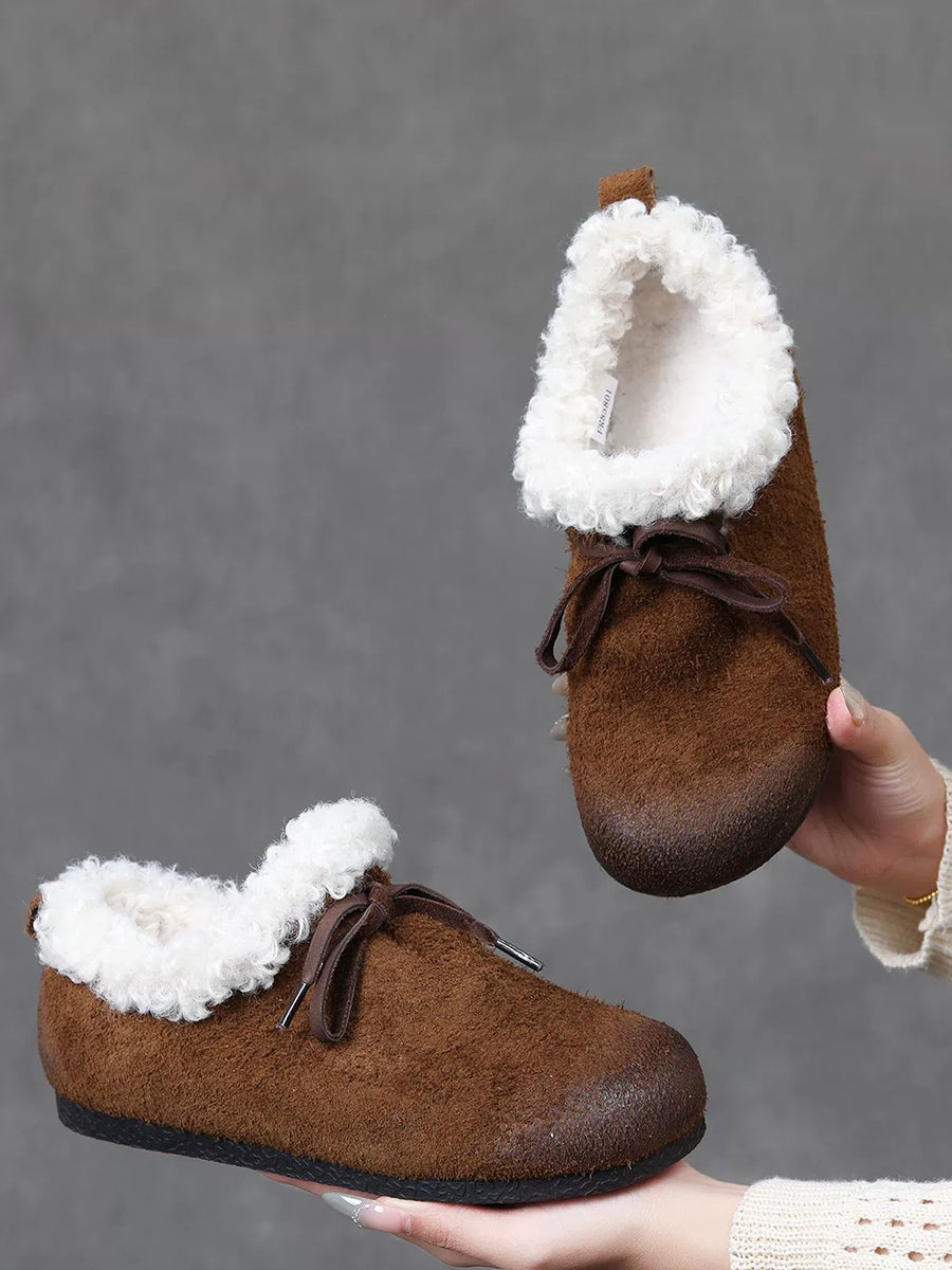 נעלי עור אמיתי וינטג' לנשים עם בטנת פליז