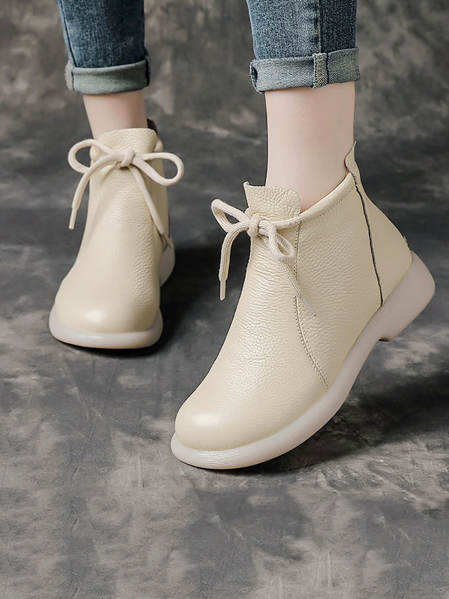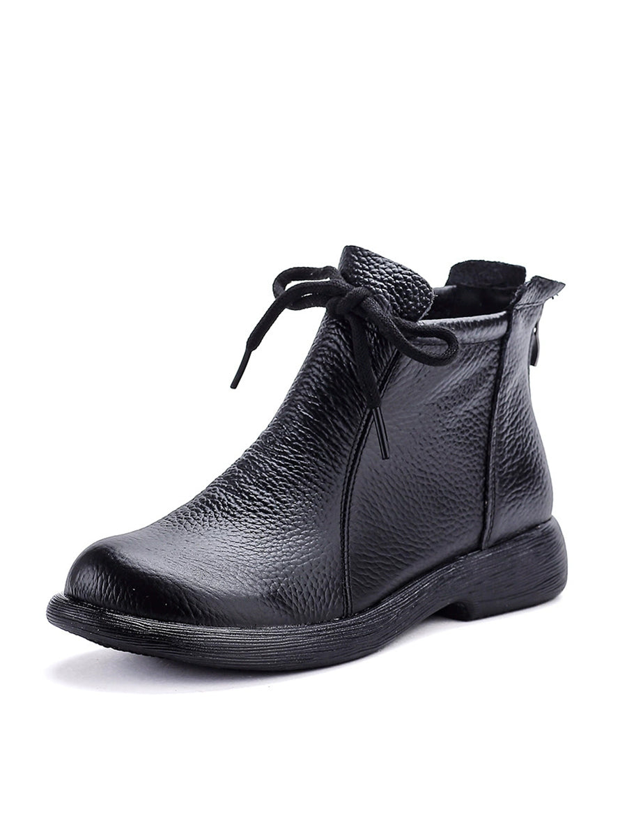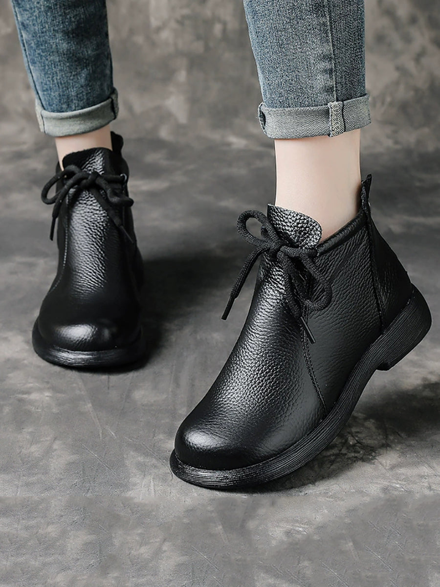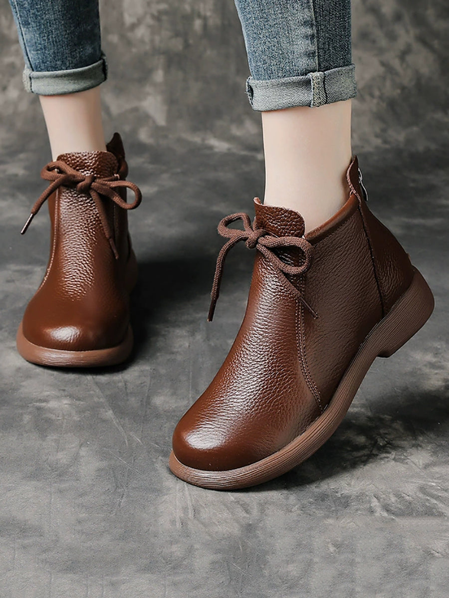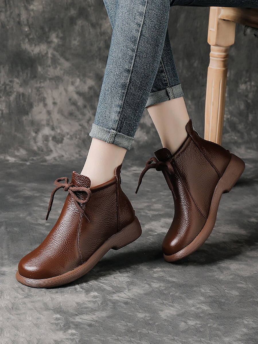 מגפי עור אמיתיים וינטג' לנשים עם עקב נמוך