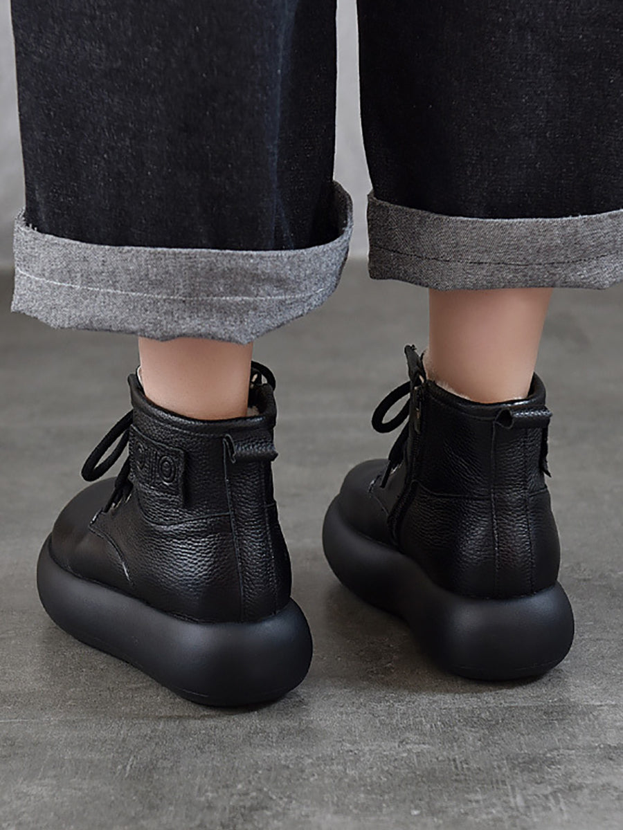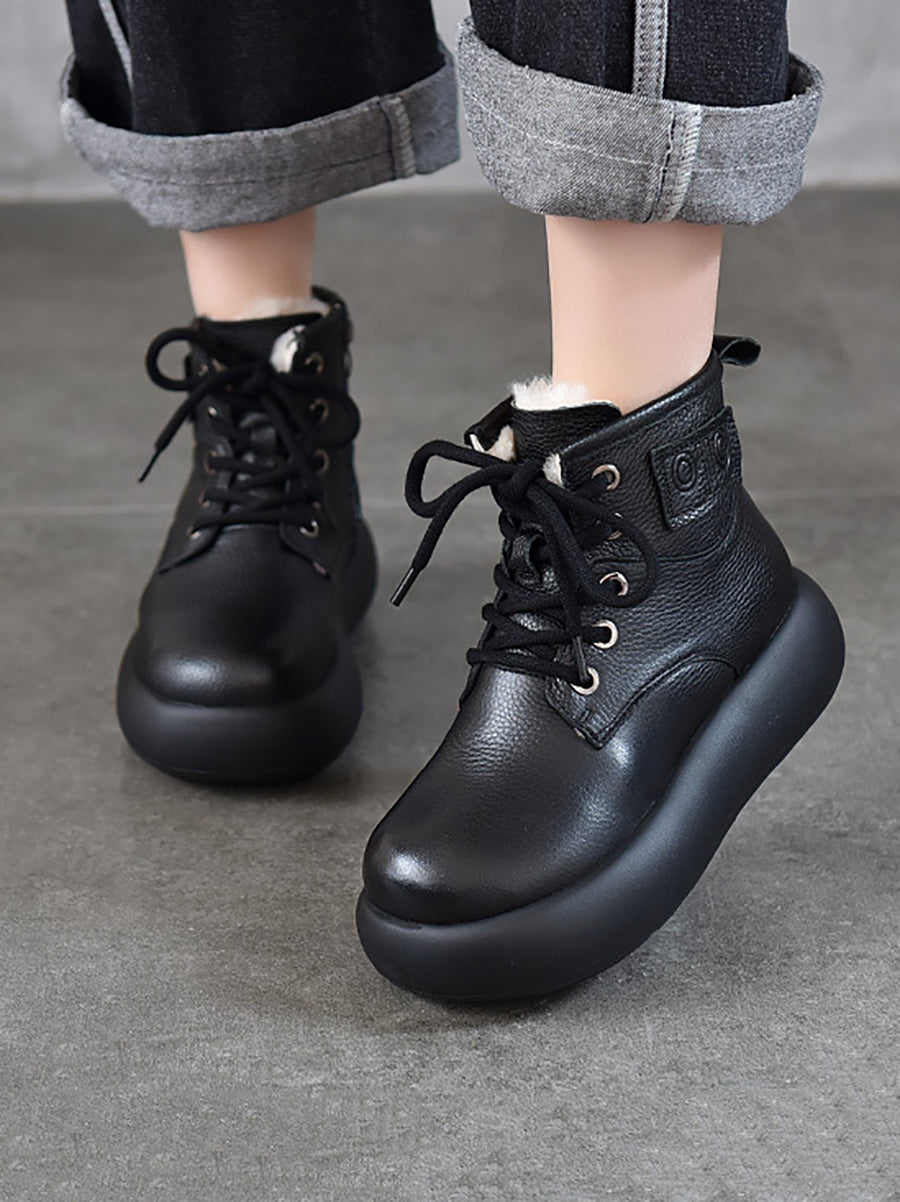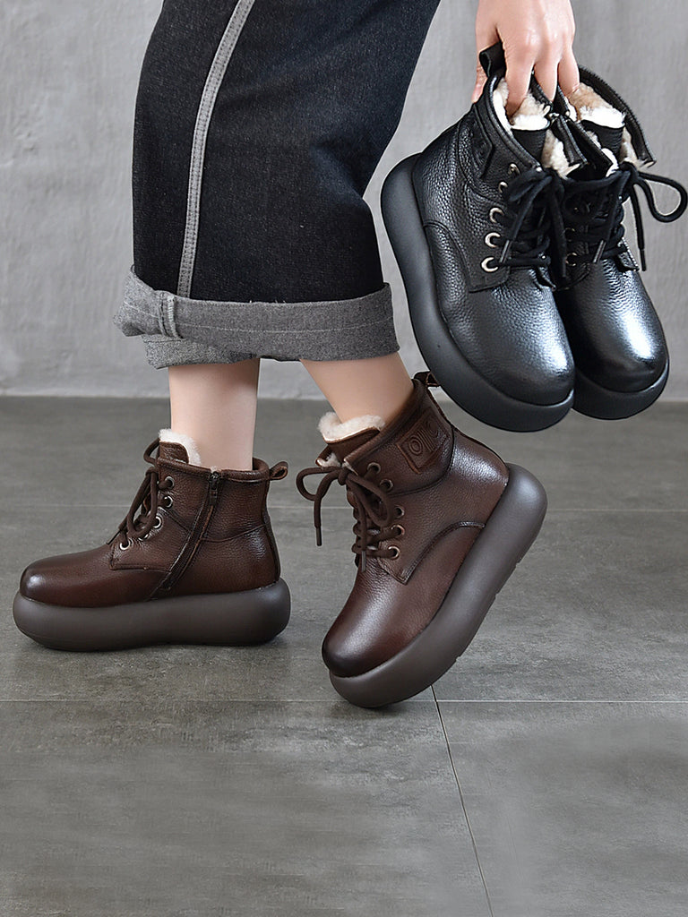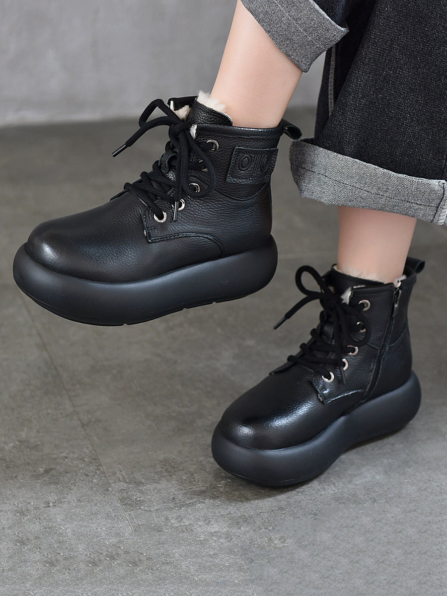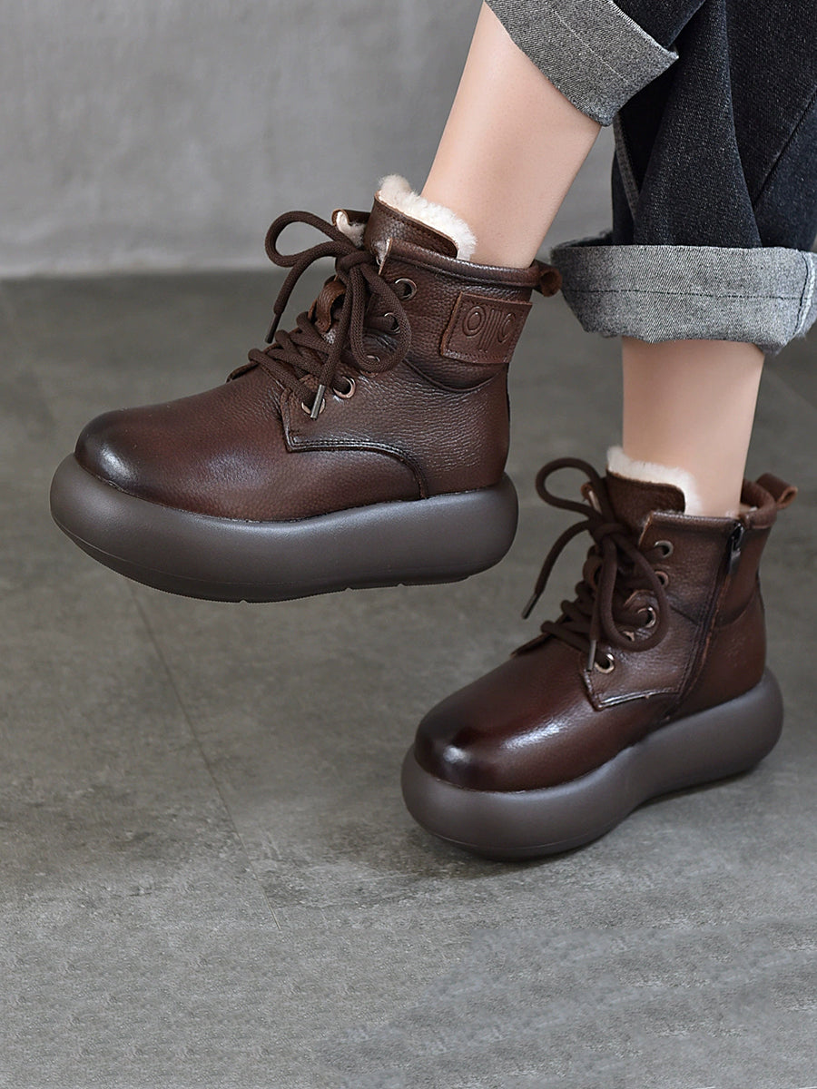 מגפי פלטפורמה מעור אמיתי לנשים בחורף