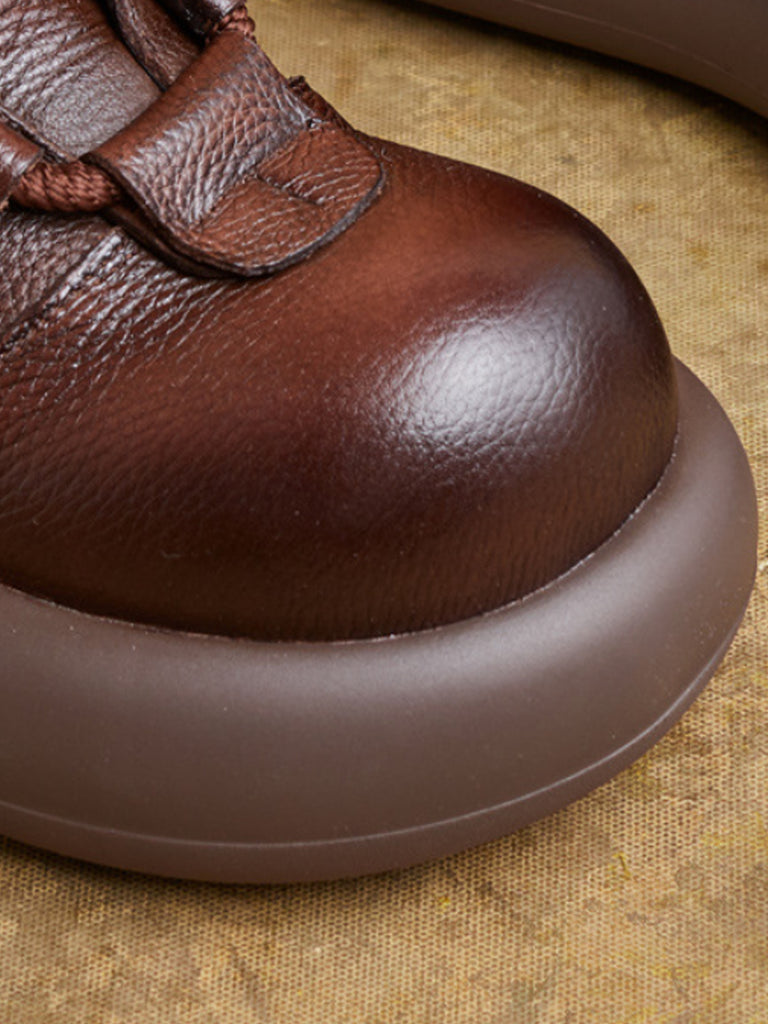 מגפי קרסול פלטפורמה מעור אמיתי לחורף לנשים