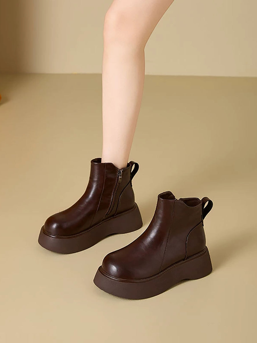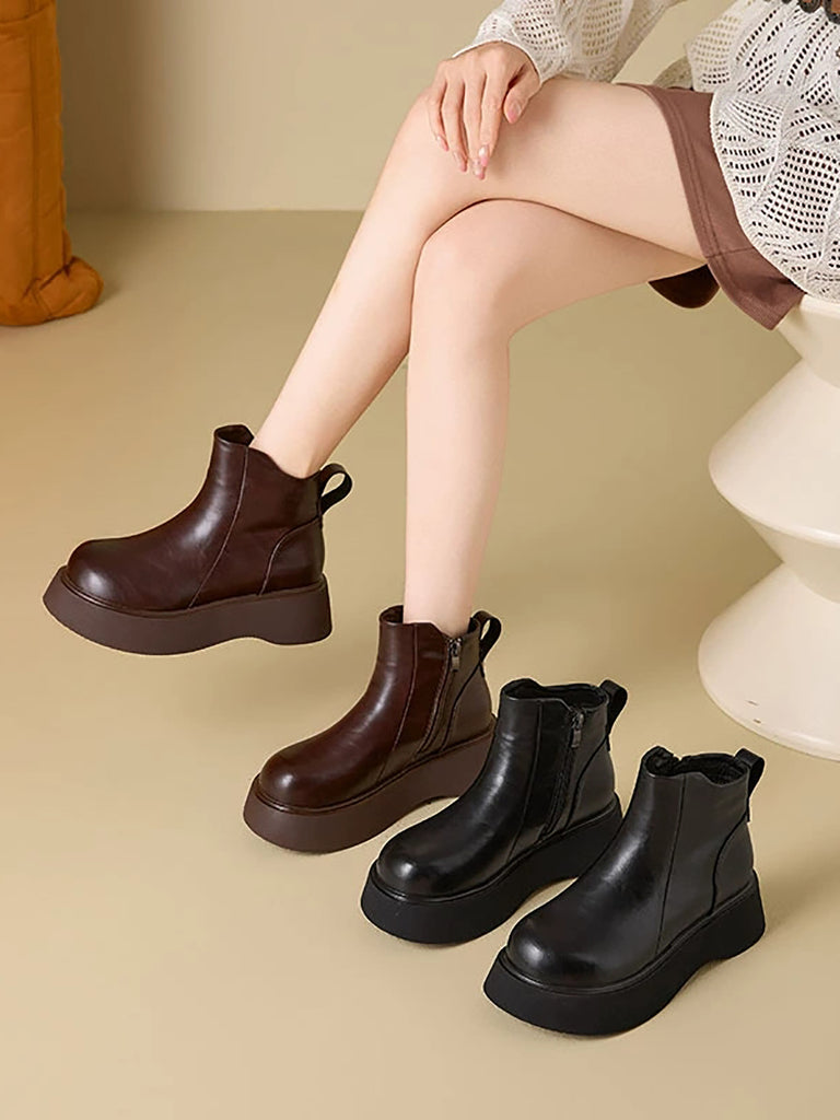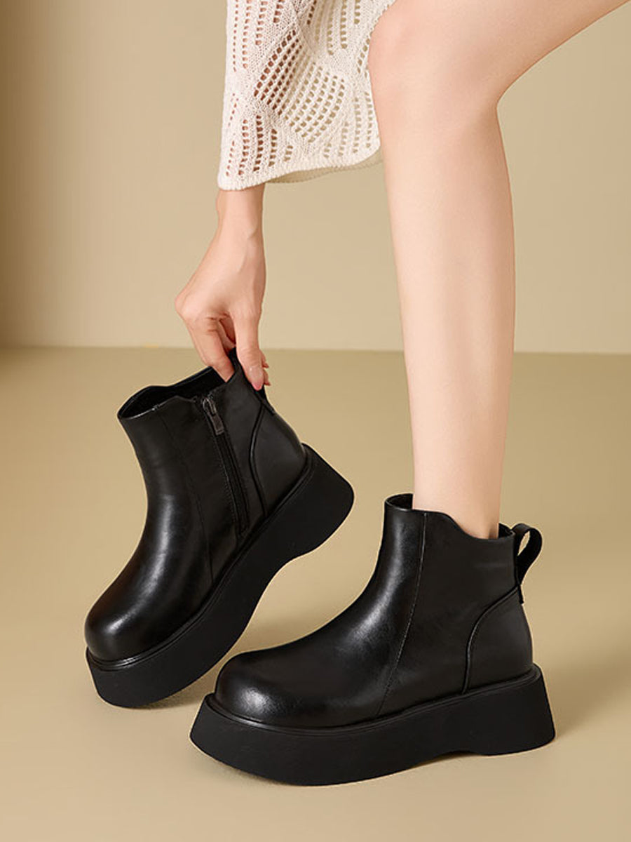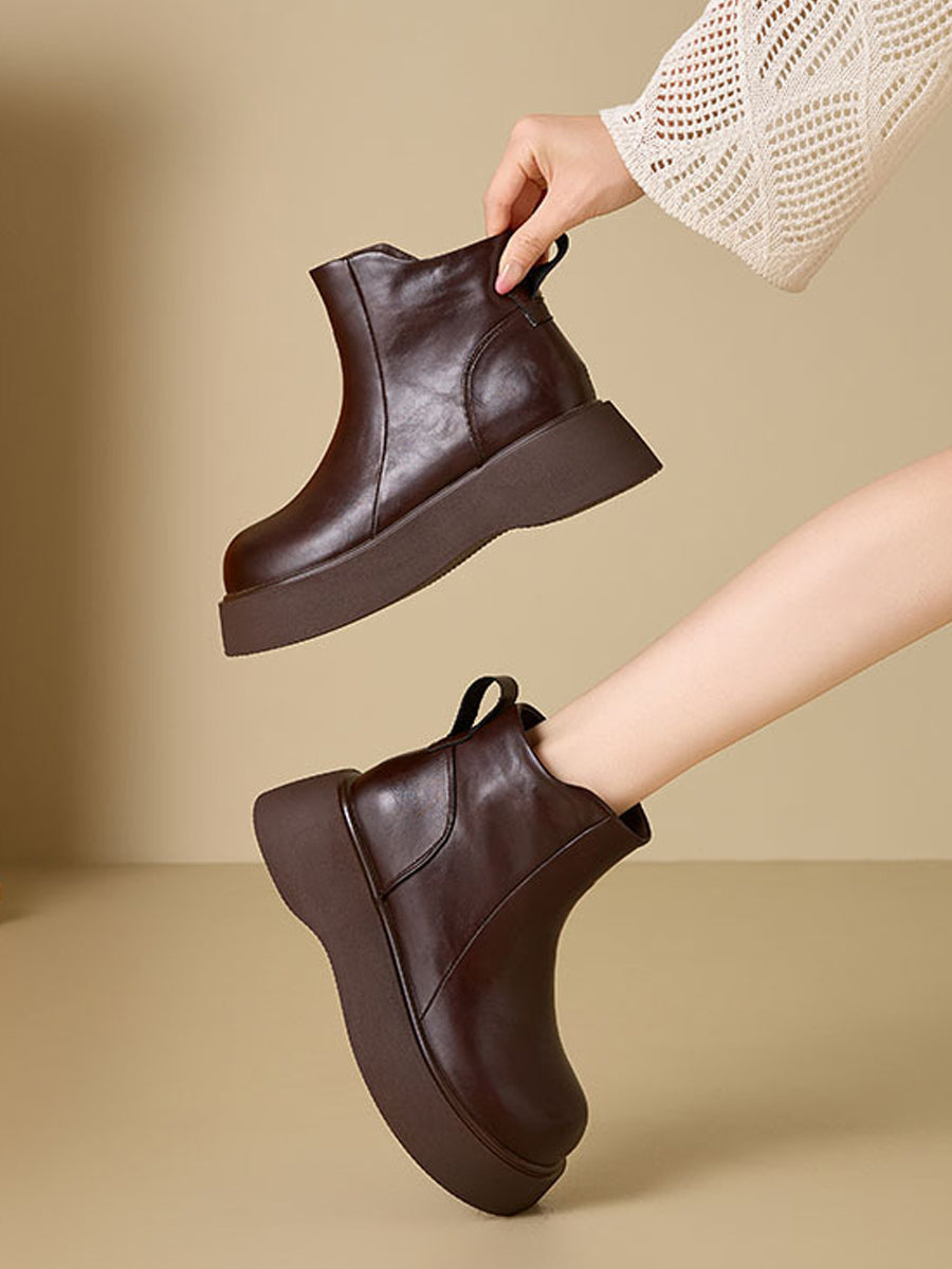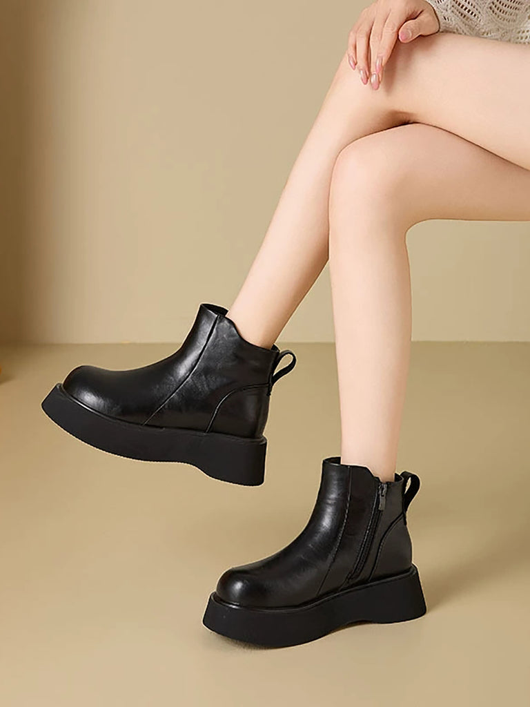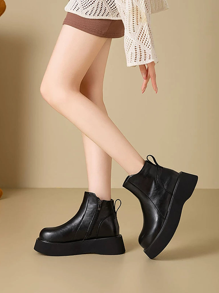 מגפי פלטפורמה מעור בצבע טהור לחורף לנשים