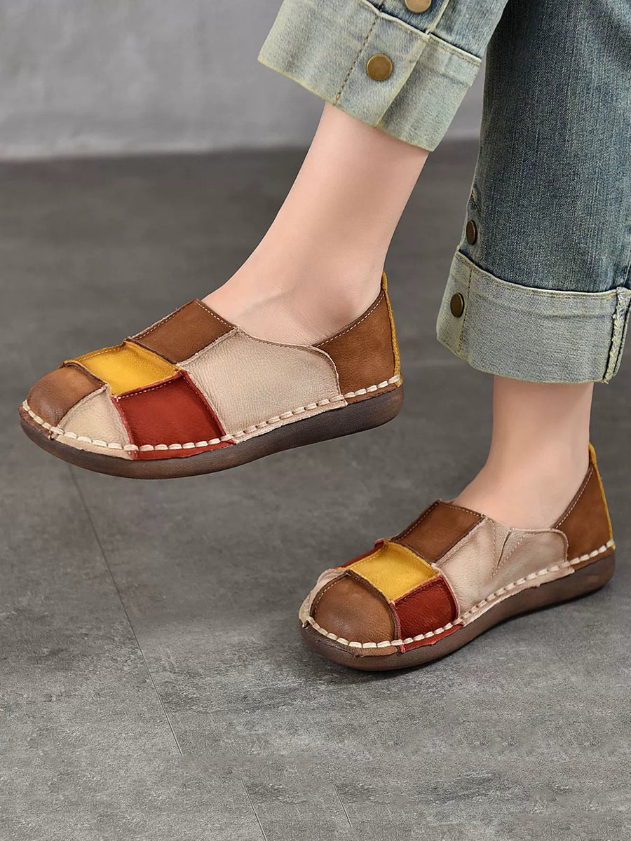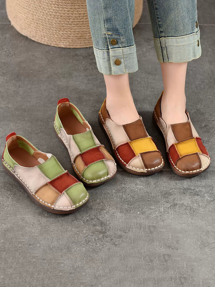 נעליים שטוחות מעור צבעוניות רטרו לנשים באביב