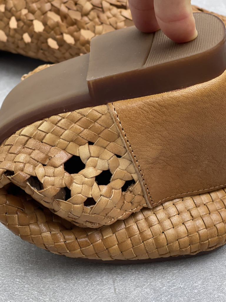 נעלי קיץ רטרו מעור אמיתי לארוג לנשים