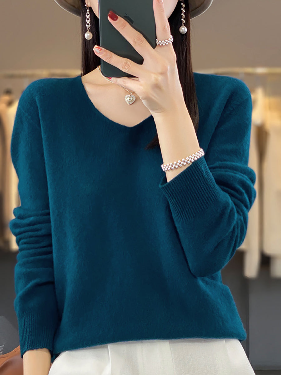 נשים סתיו בצבע טהור סוודר סריג צווארון V