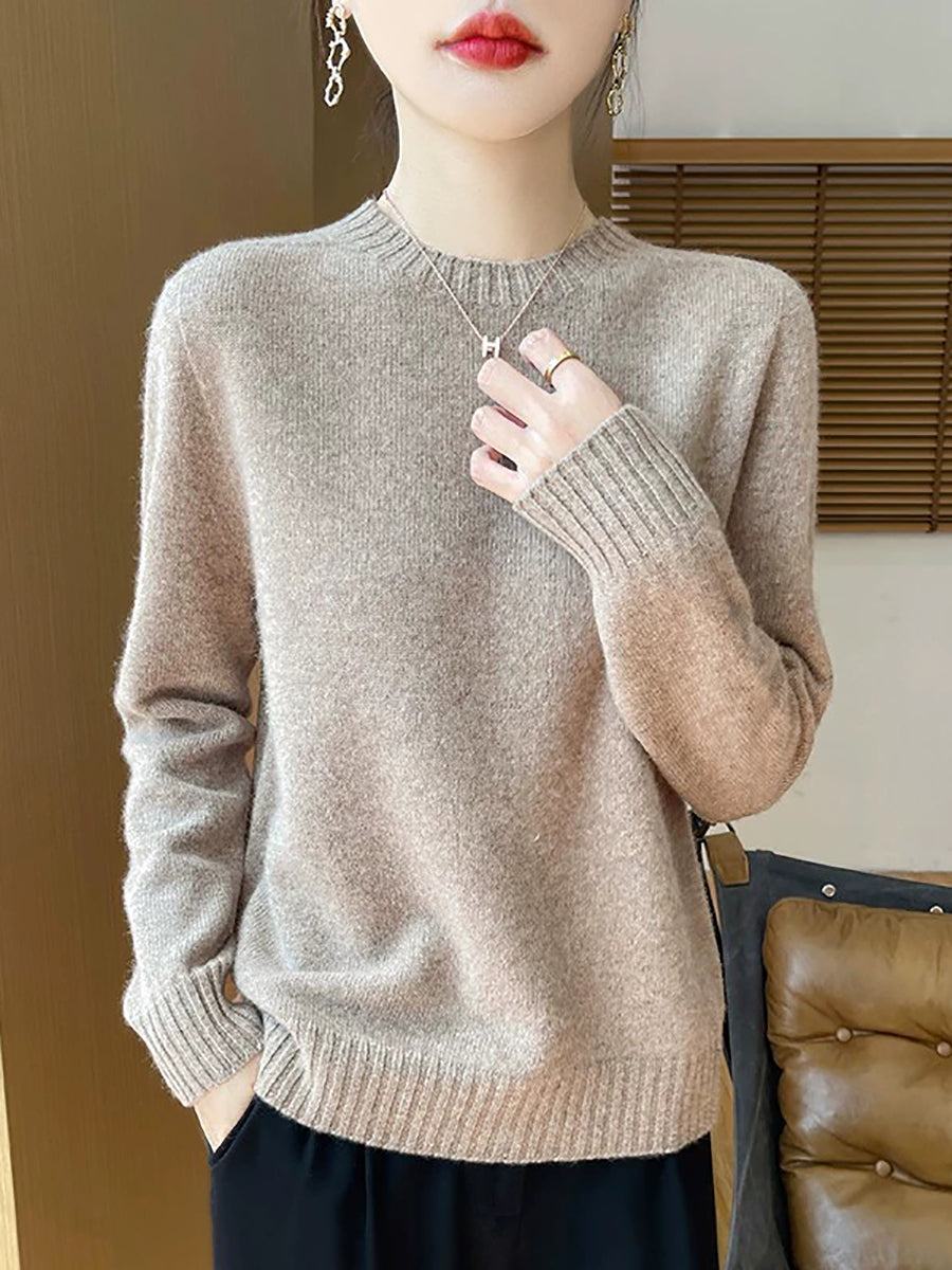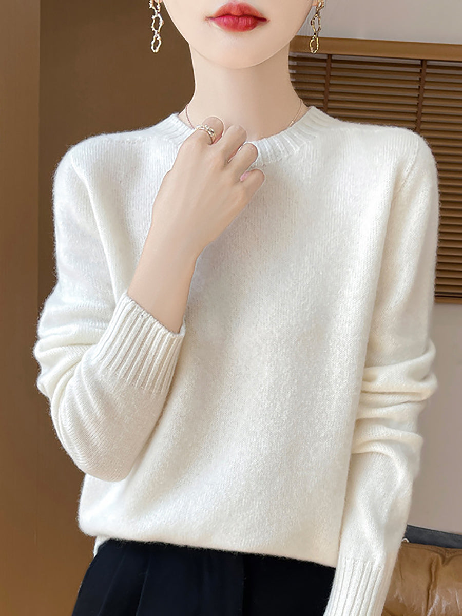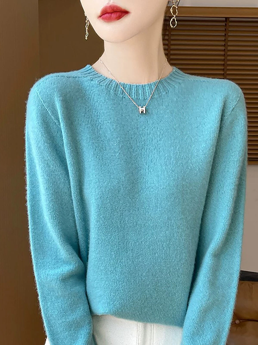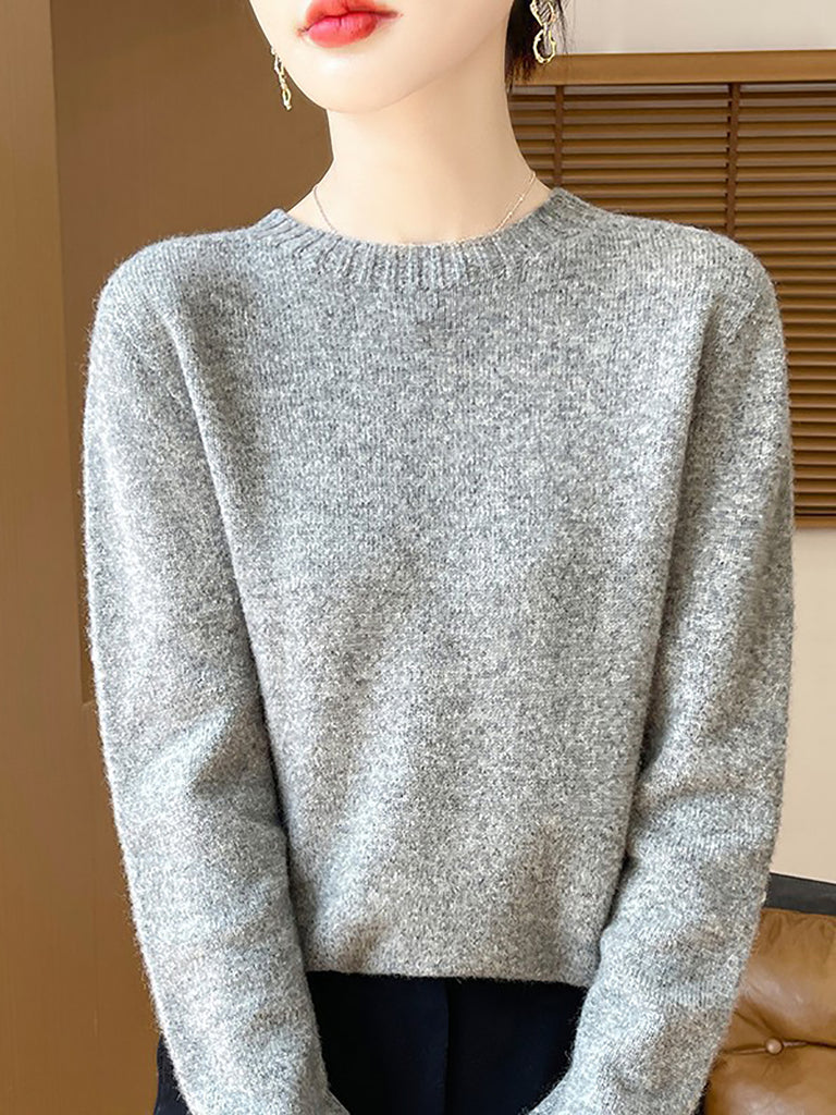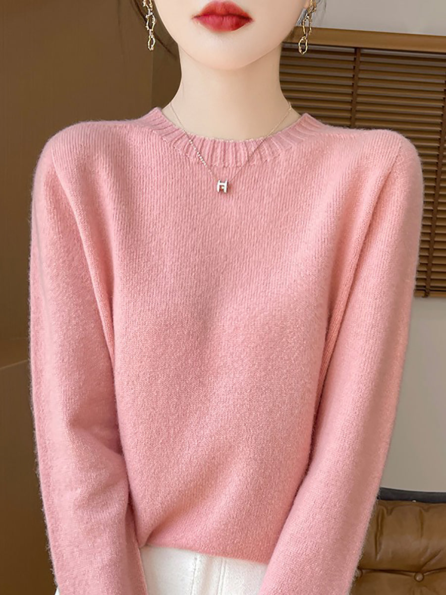 סוודר סרוג בצבע טהור חורפי לנשים עם צווארון O