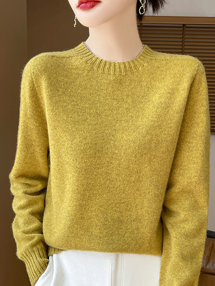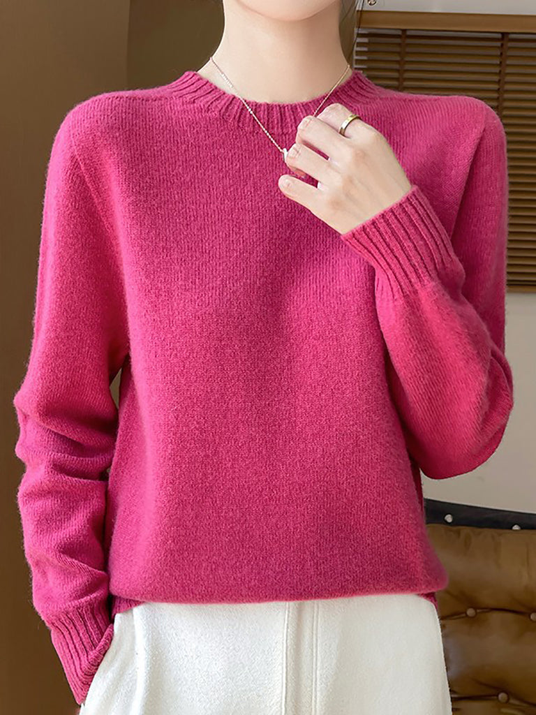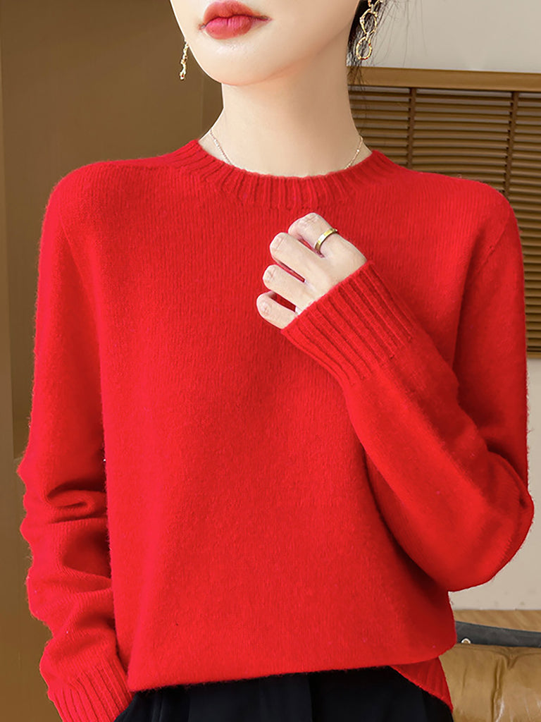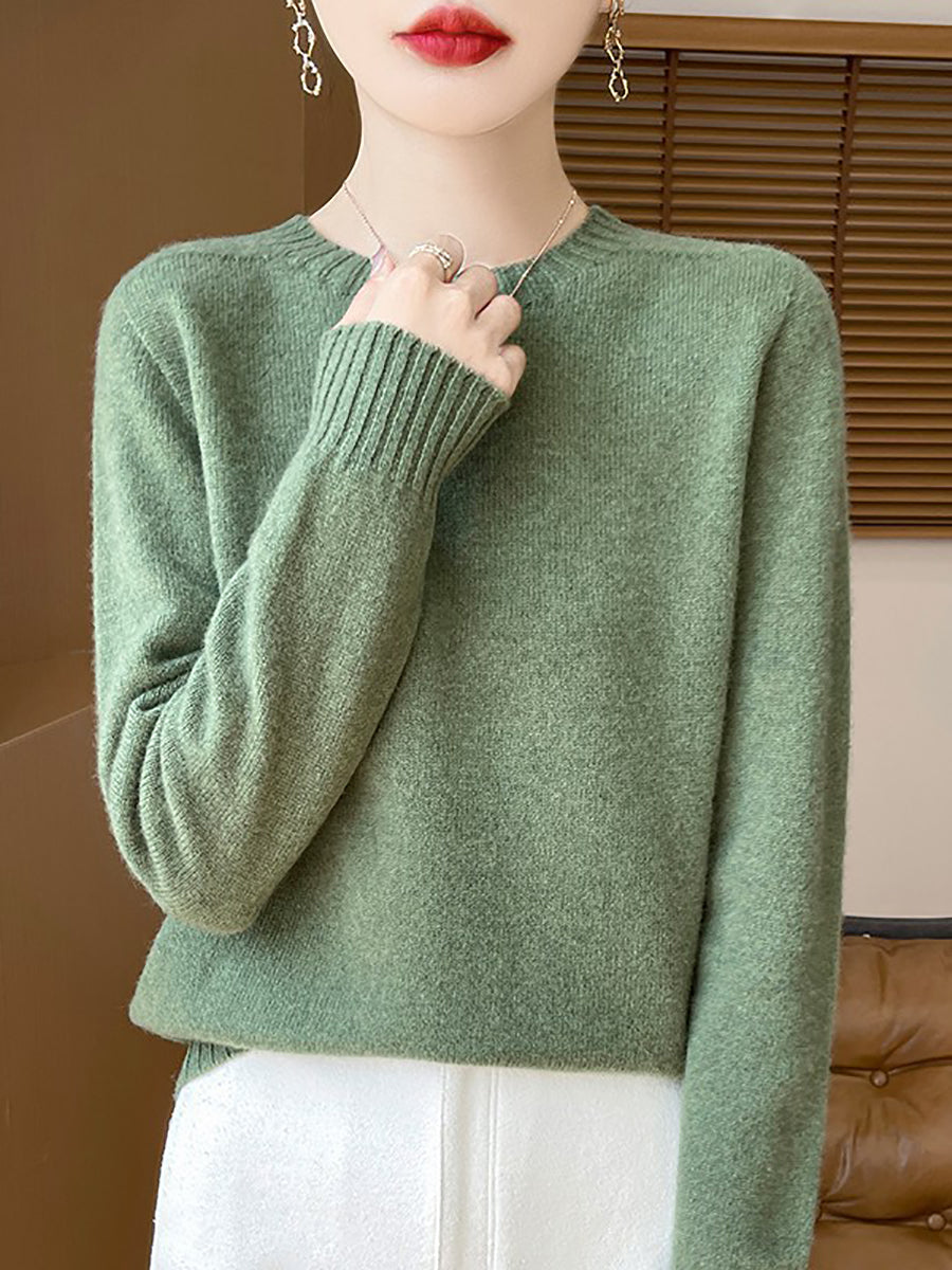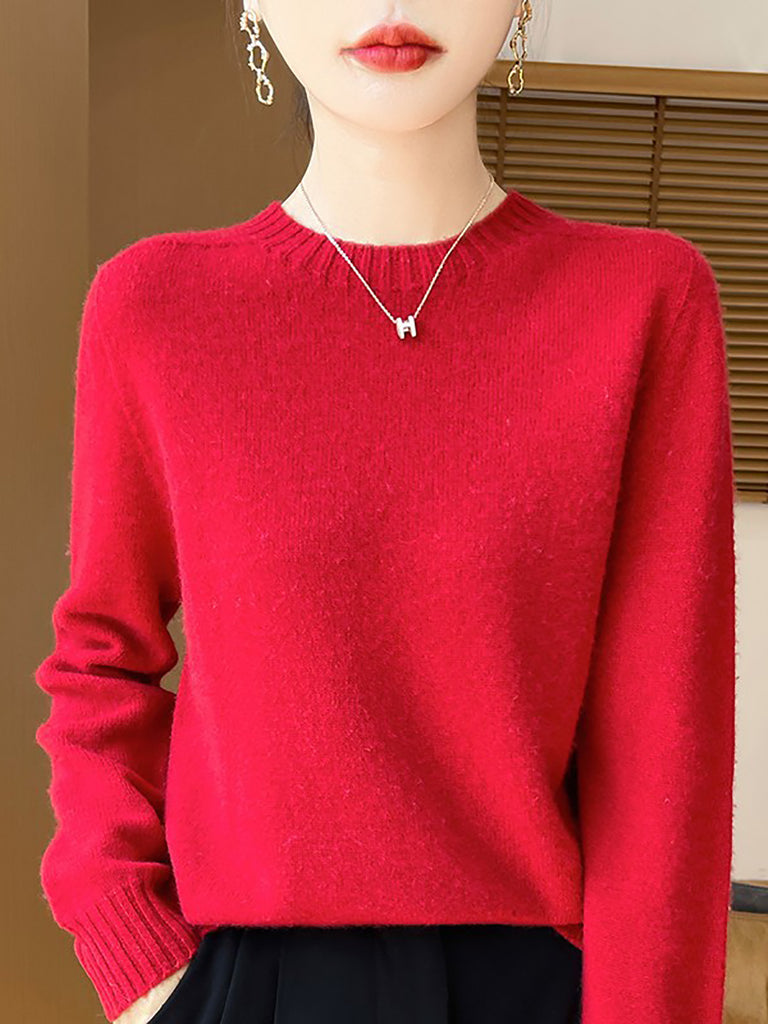 סוודר סרוג בצבע טהור חורפי לנשים עם צווארון O