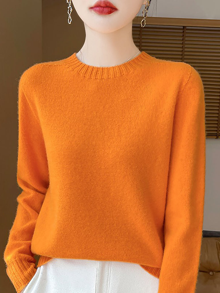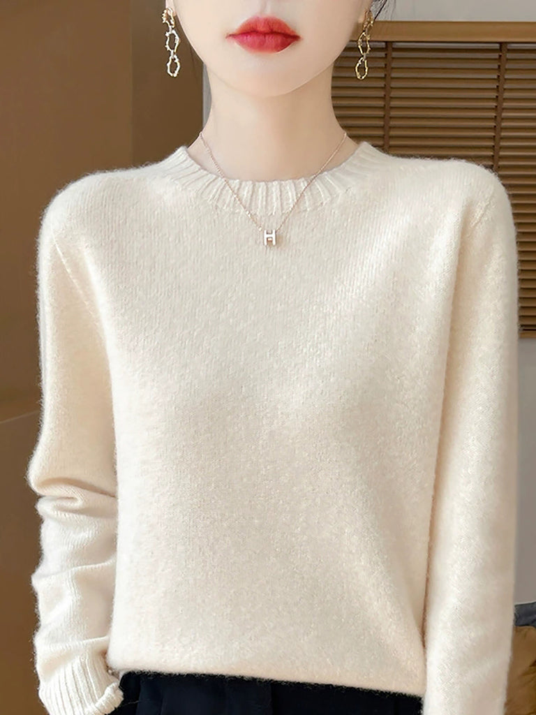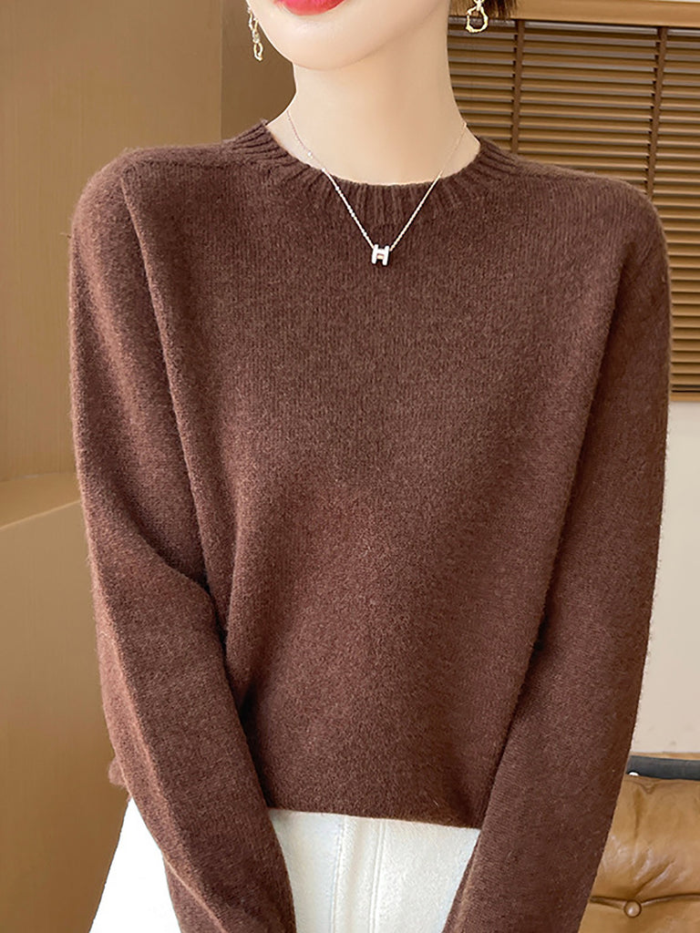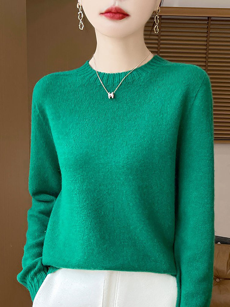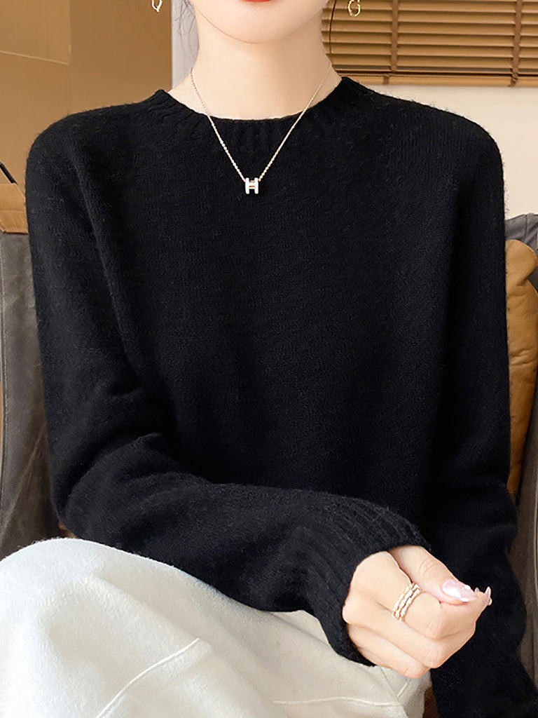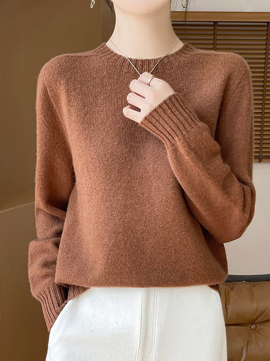 סוודר סרוג בצבע טהור חורפי לנשים עם צווארון O