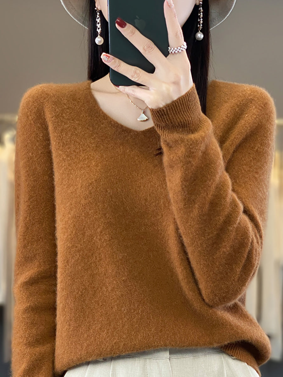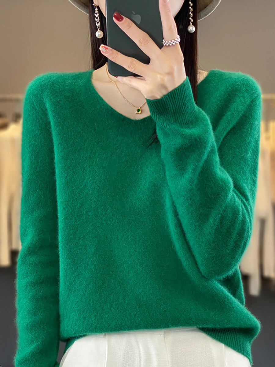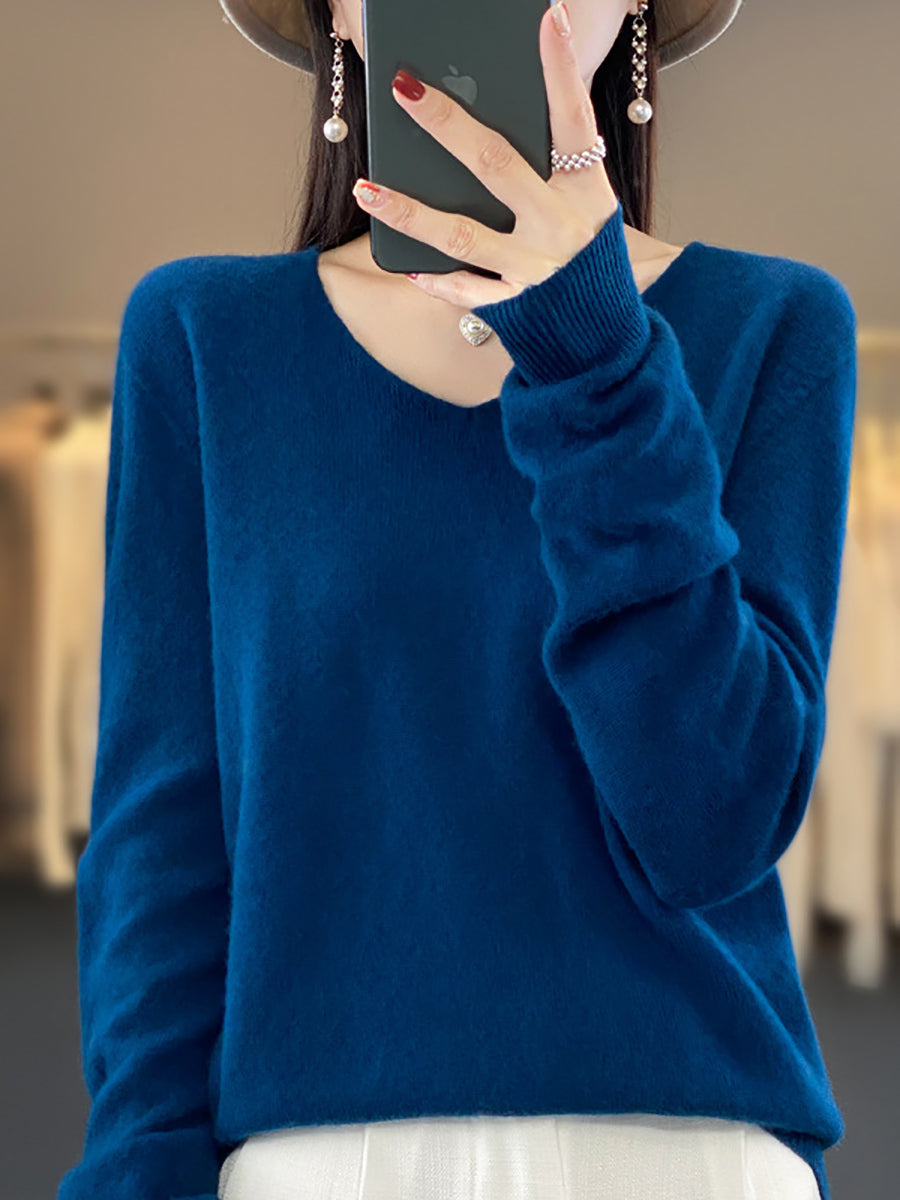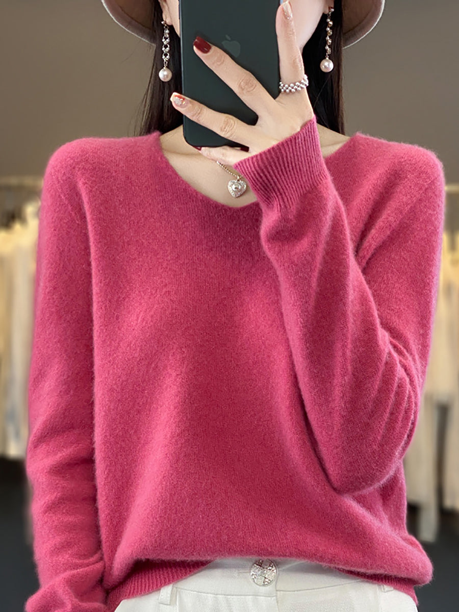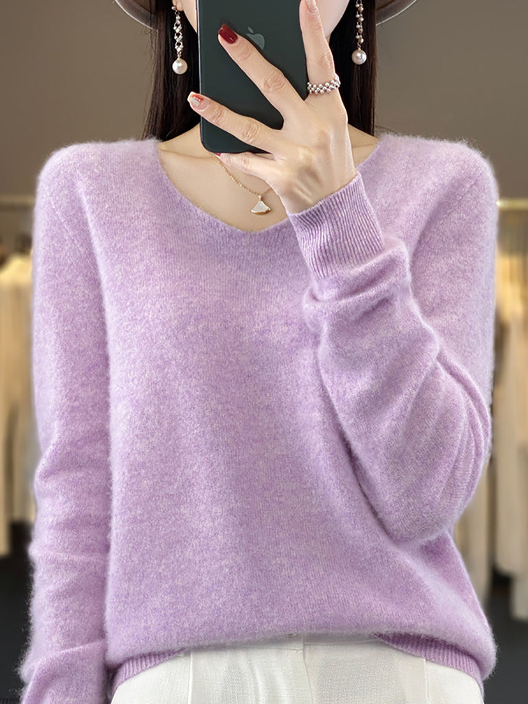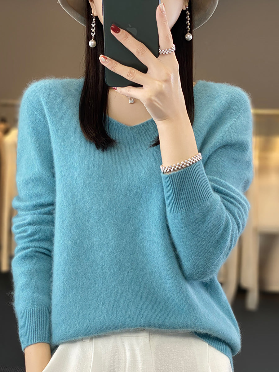 סוודר צווארון V בצבע טהור לחורף לנשים