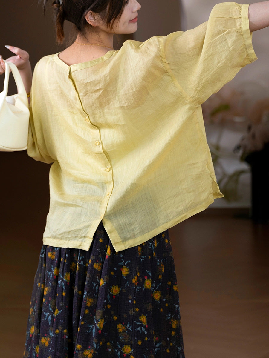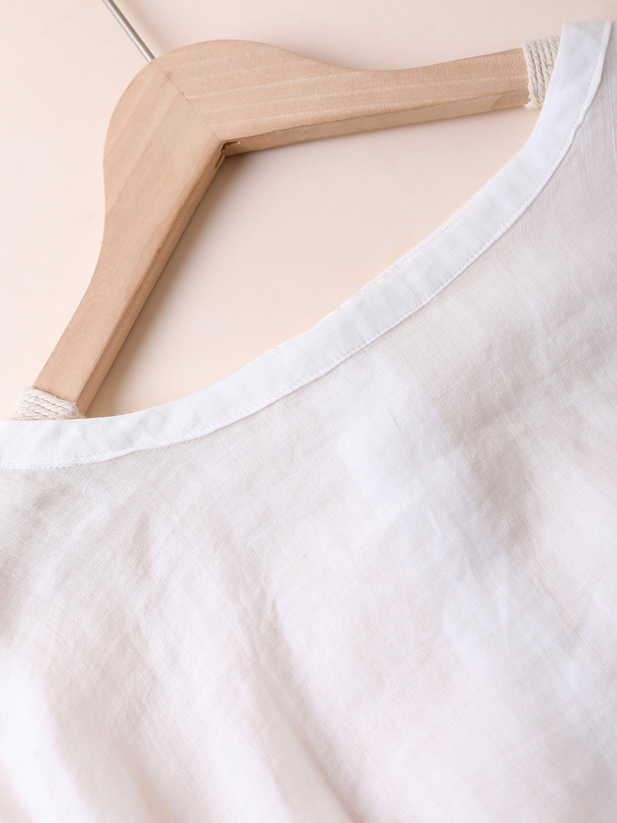 חולצת קיץ לנשים עם צווארון O בצבע טהור, 100% רמי