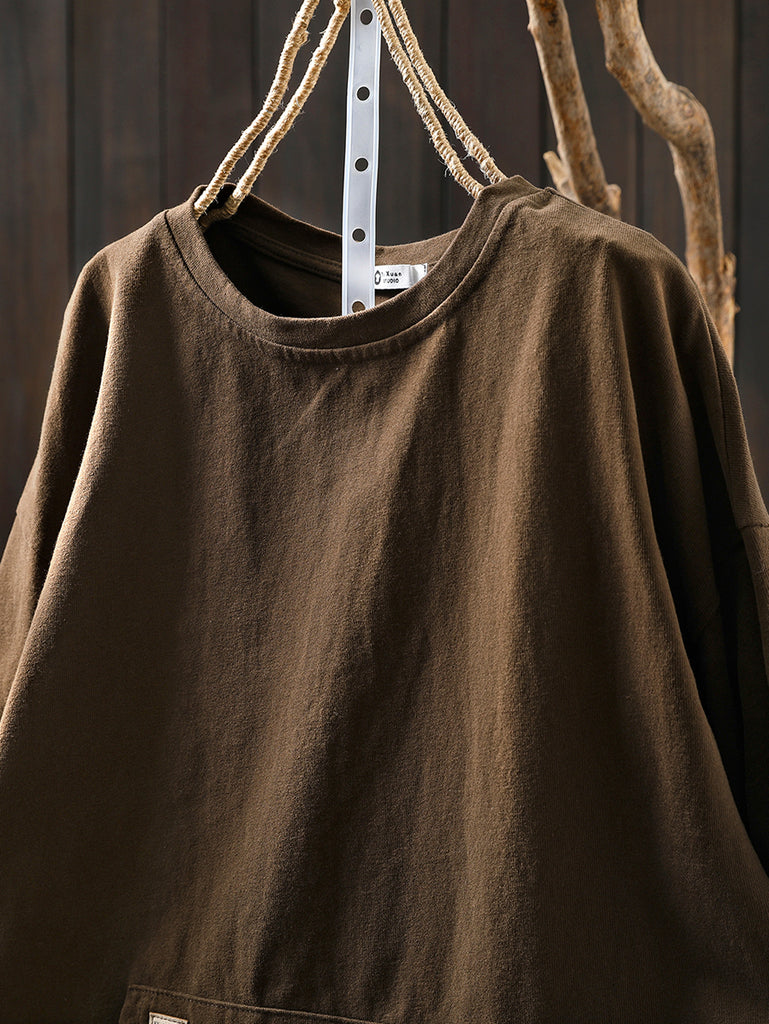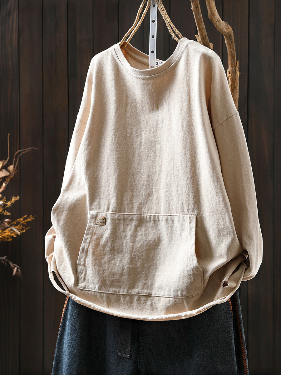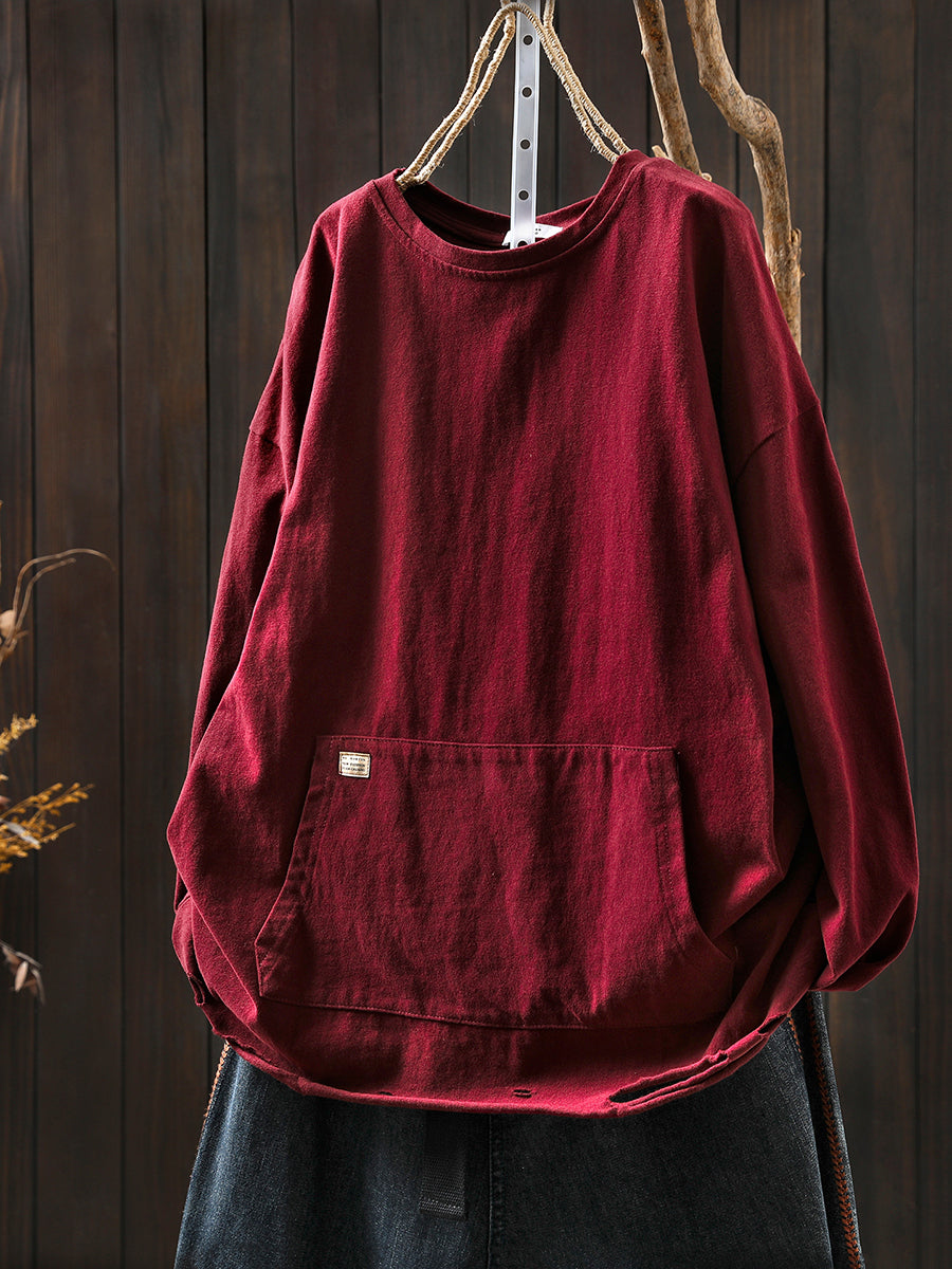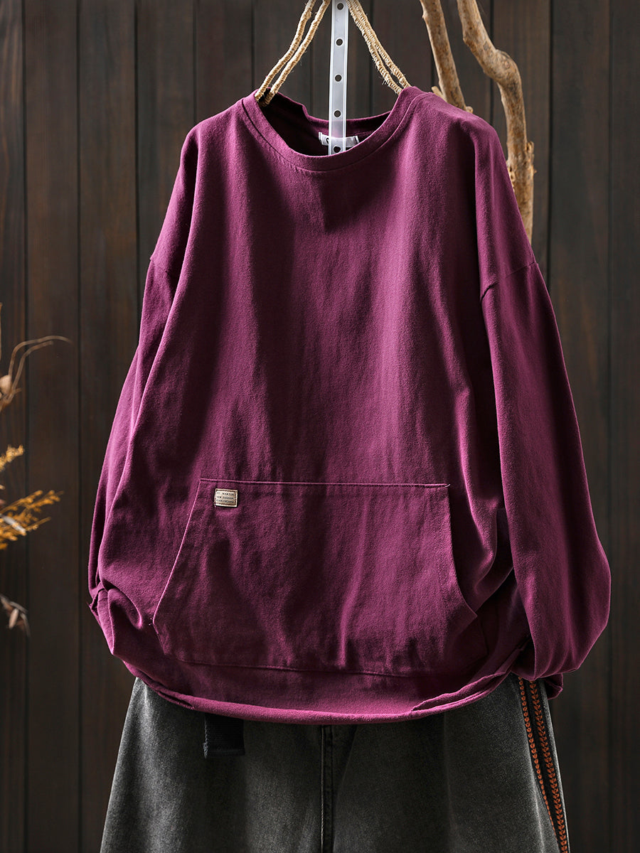 חולצה עם צווארון O בצבע טהור בסתיו לנשים