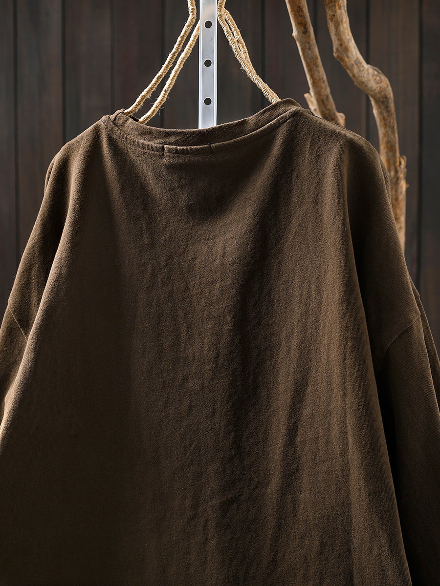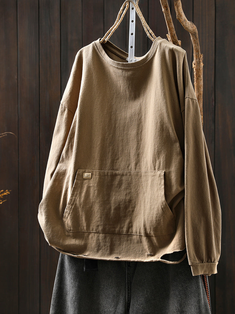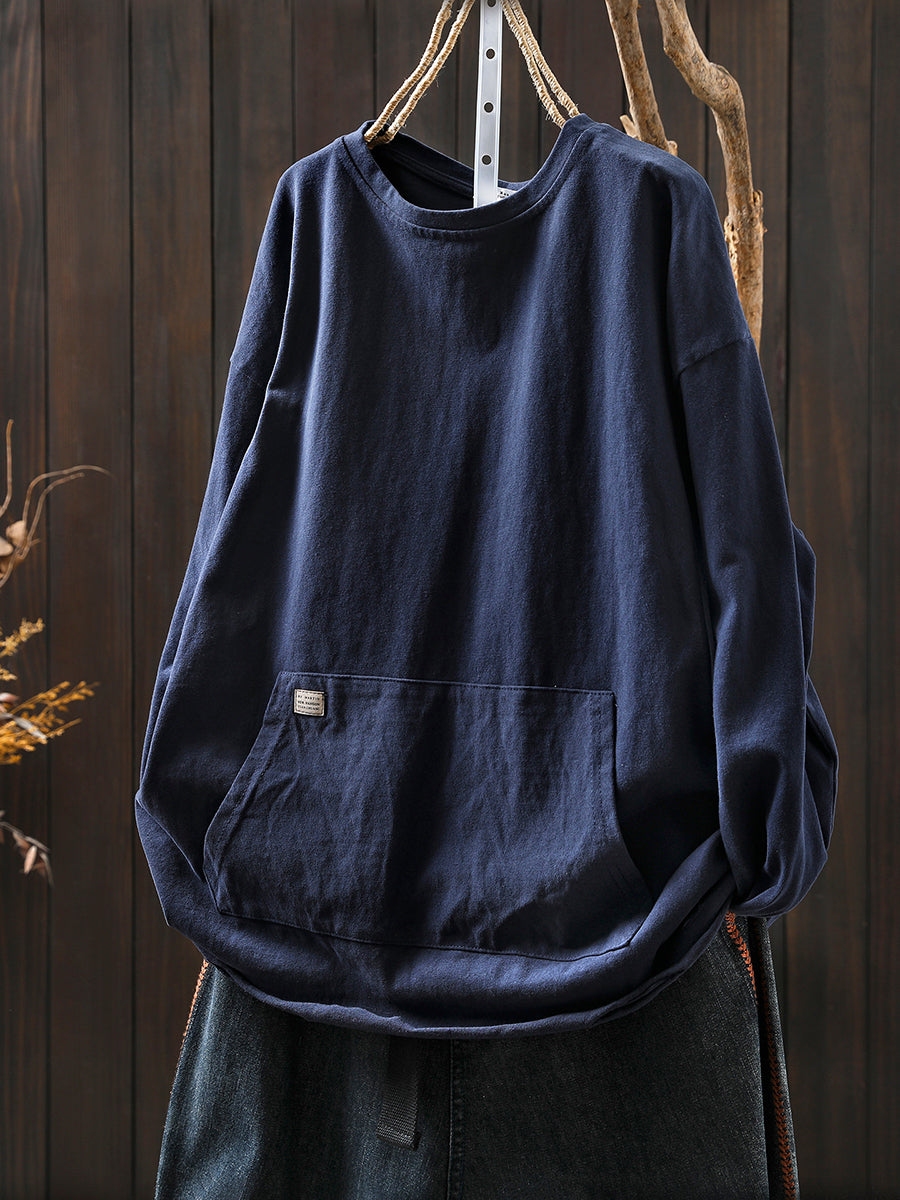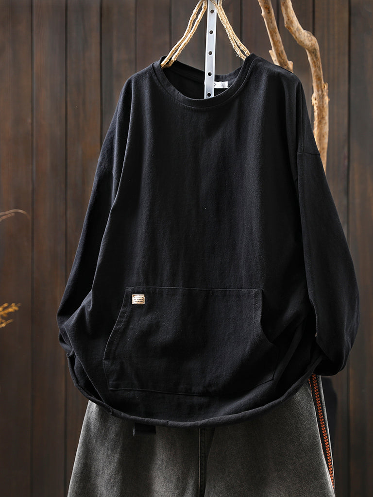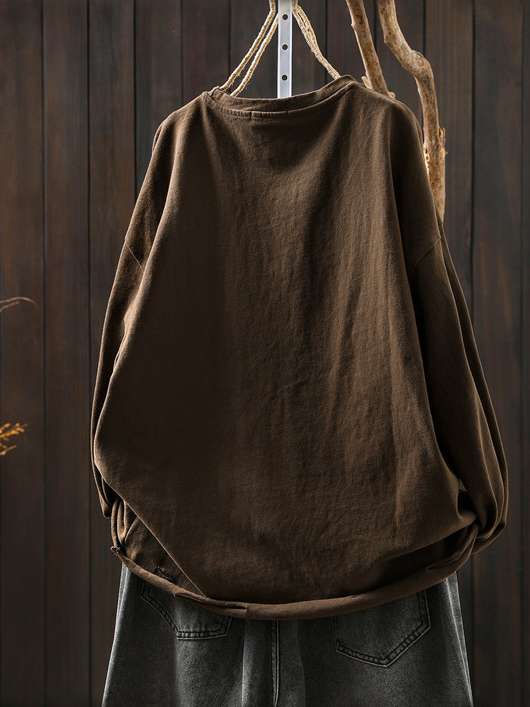חולצה עם צווארון O בצבע טהור בסתיו לנשים