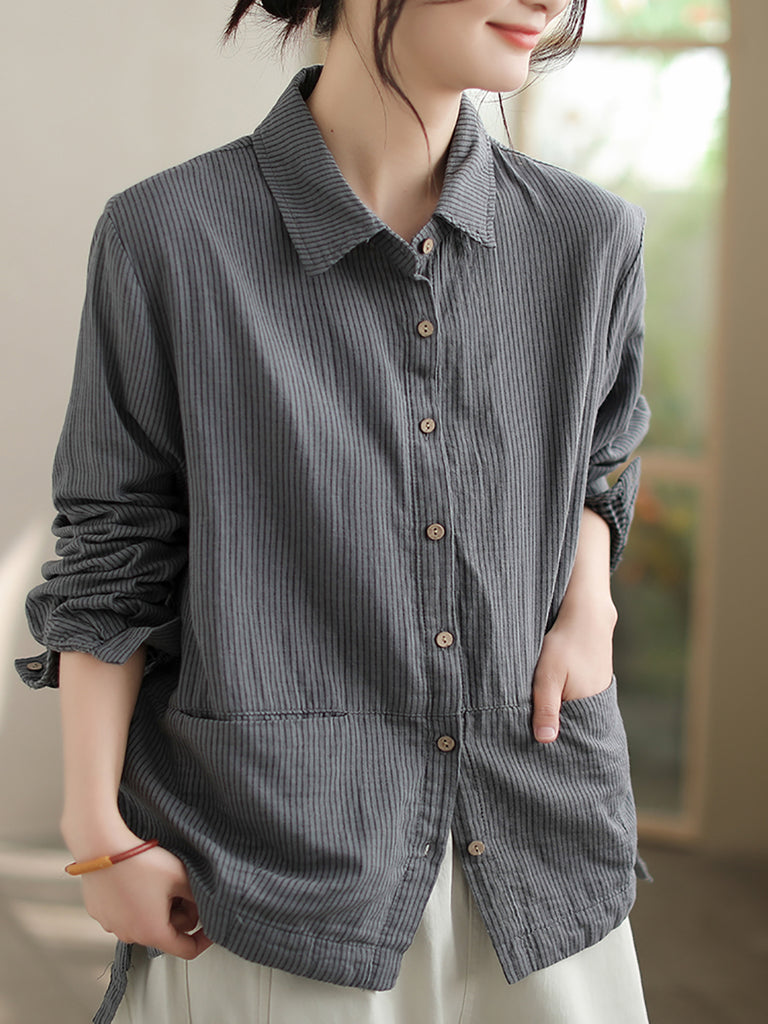 חולצת סתיו לנשים עם צווארון הפוך 100% כותנה