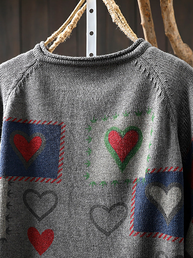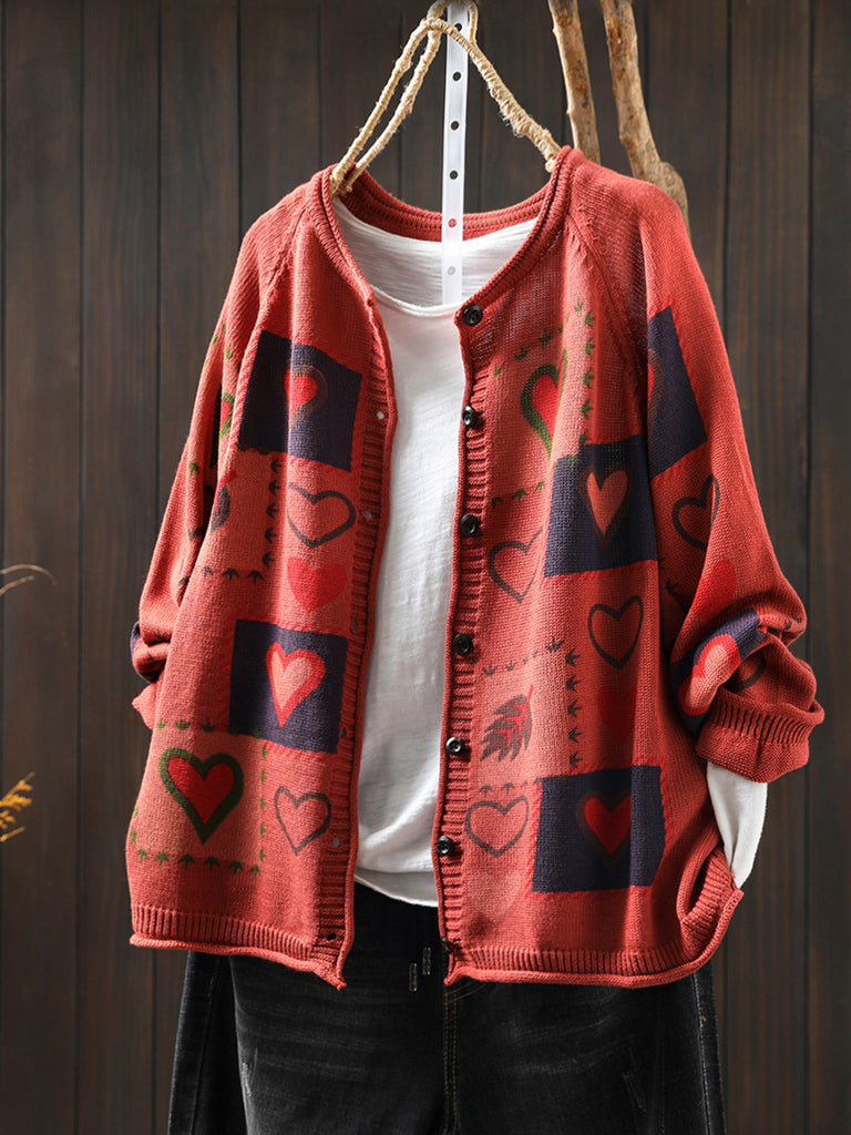 חולצת O-צוואר סרוגה עם צווארון כפתורים ועיצוב לבבות לקיץ לנשים