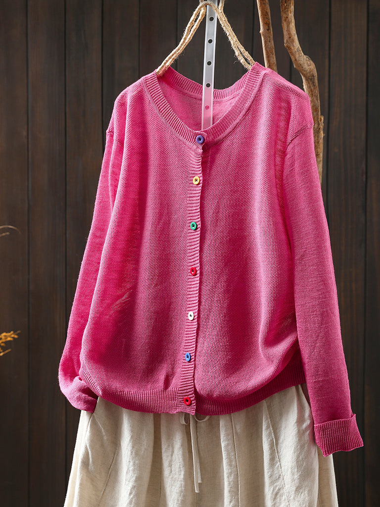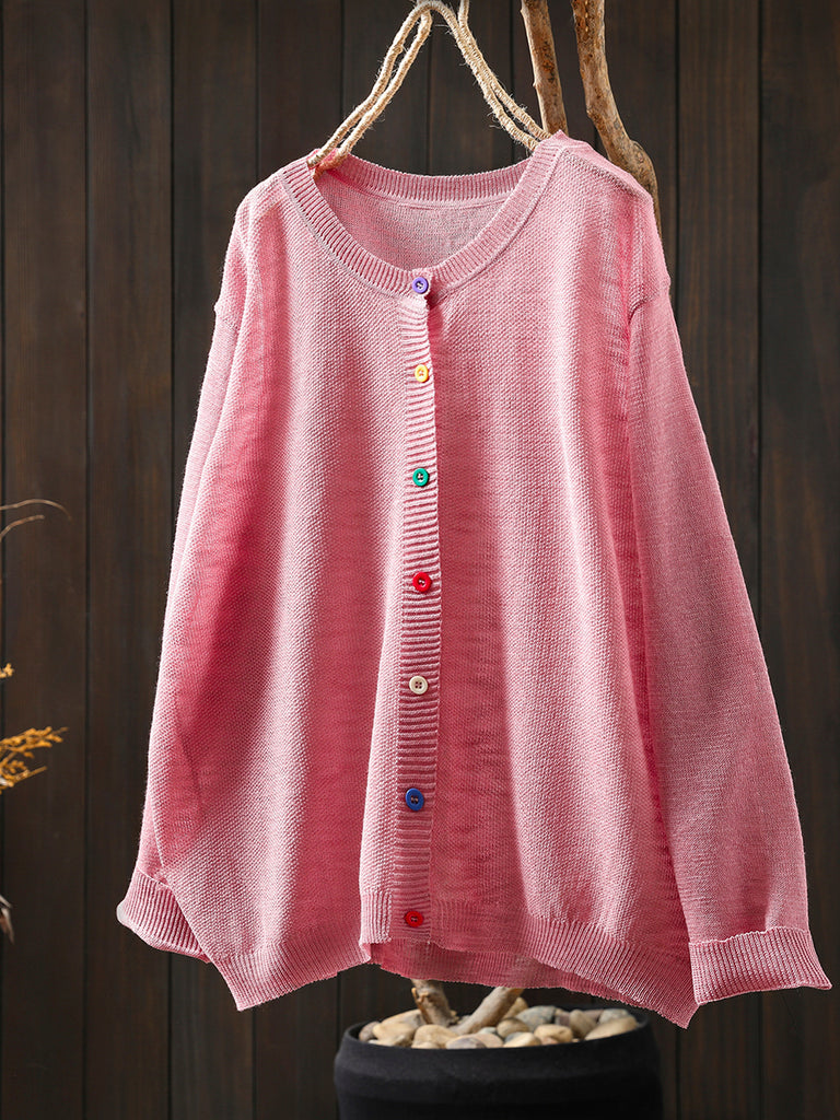 חולצת O-צוואר סרוגה עם כפתורים צבעוניים לקיץ לנשים