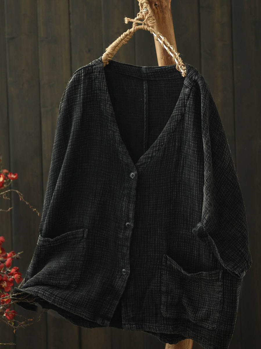 חולצת כותנה עם צווארון V בצבע טהור לקיץ לנשים