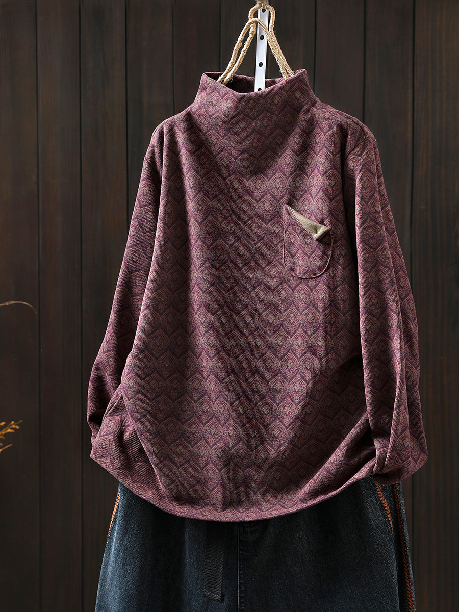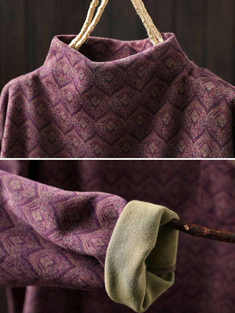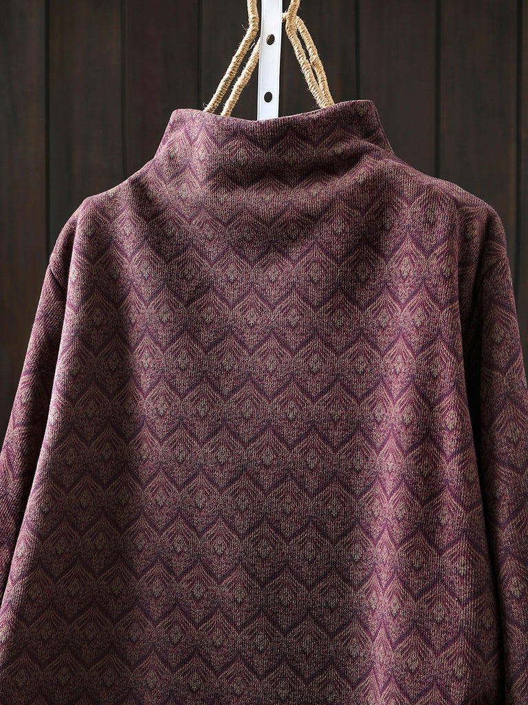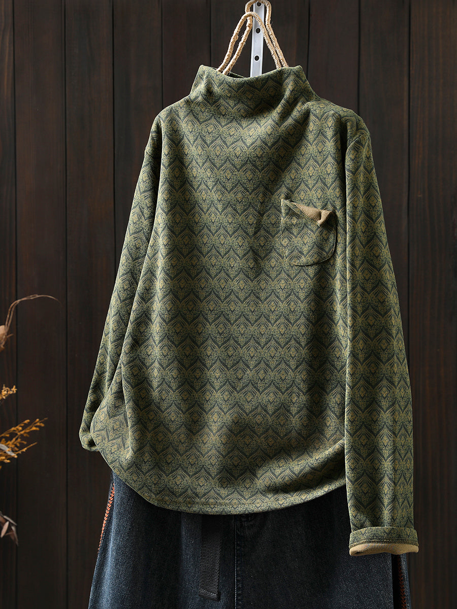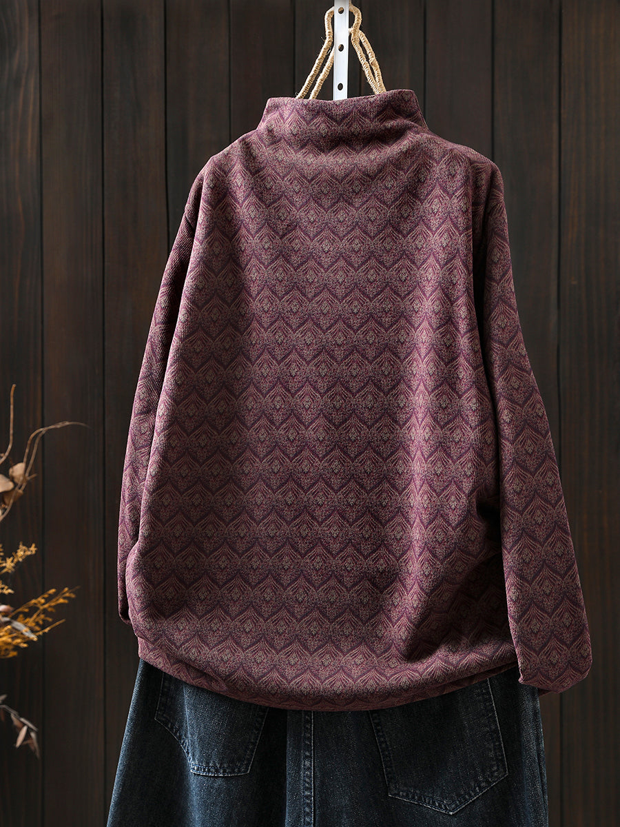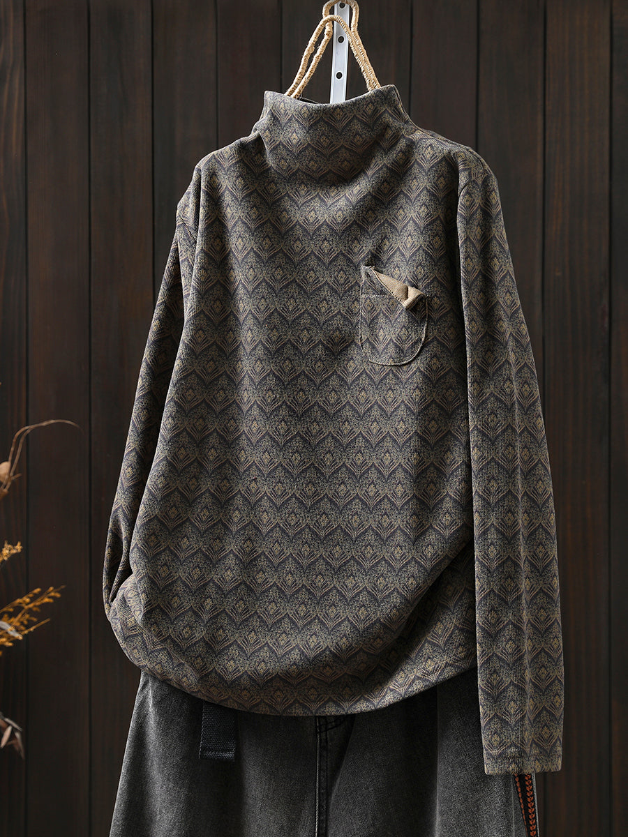 חולצה חצי גולף עם הדפס וינטג' חורפי לנשים