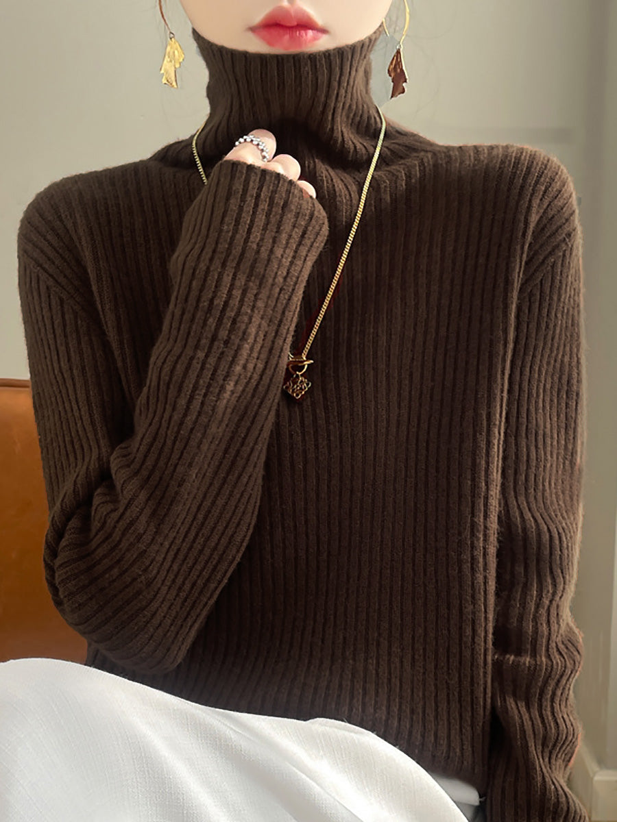 נשים סתיו קז'ואל קאט-אאוט O-Neck סוודר סריג צמר