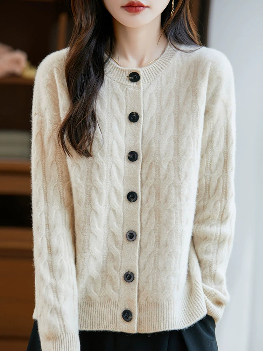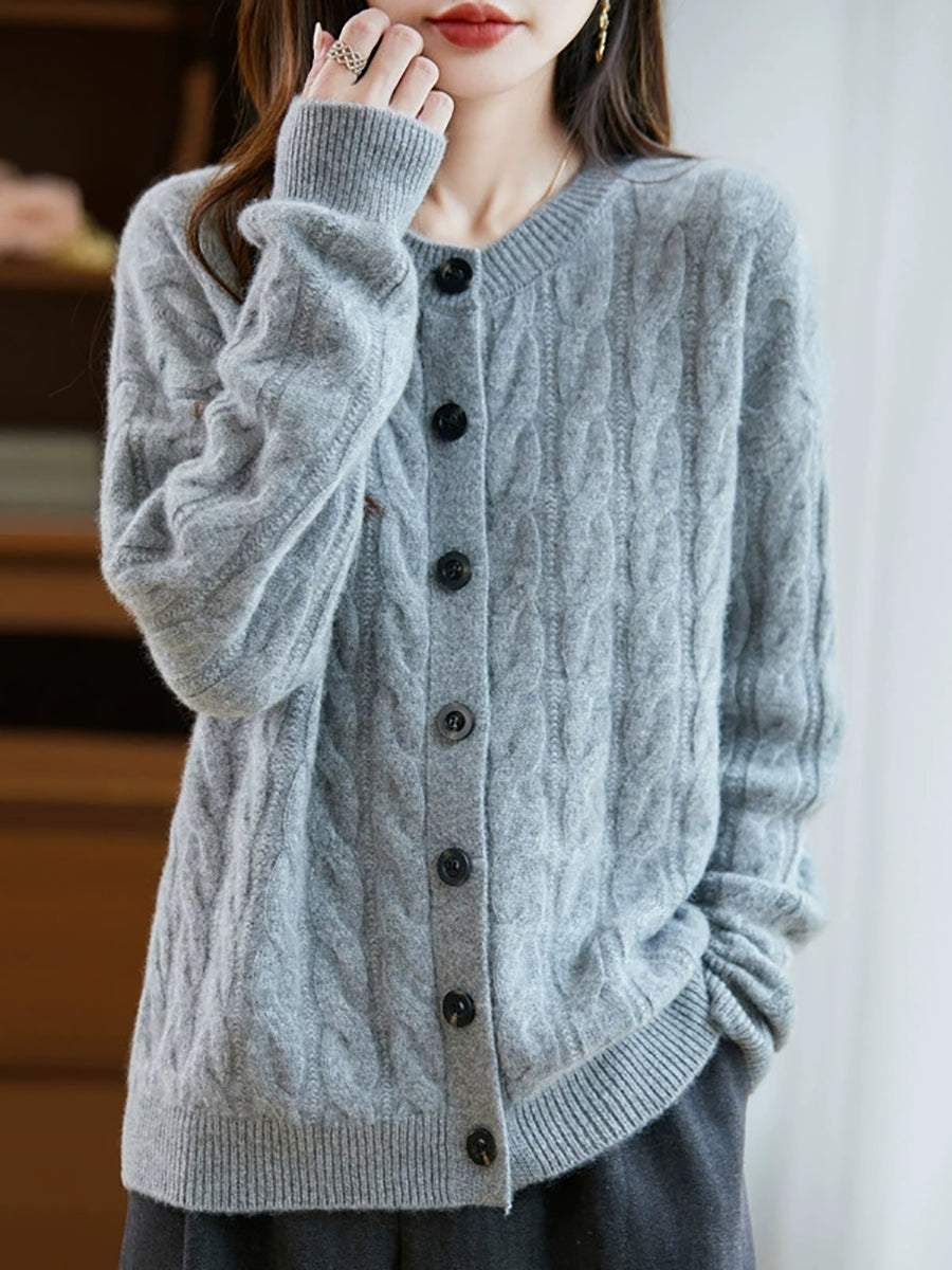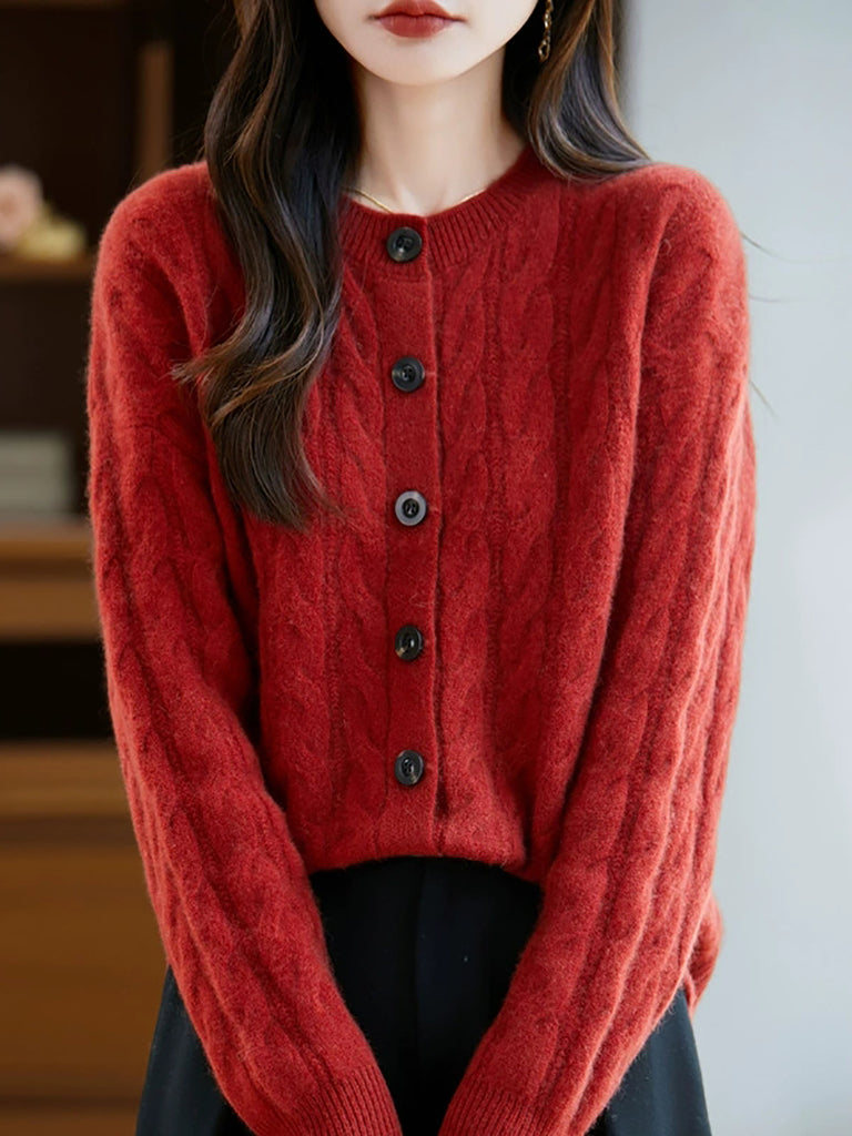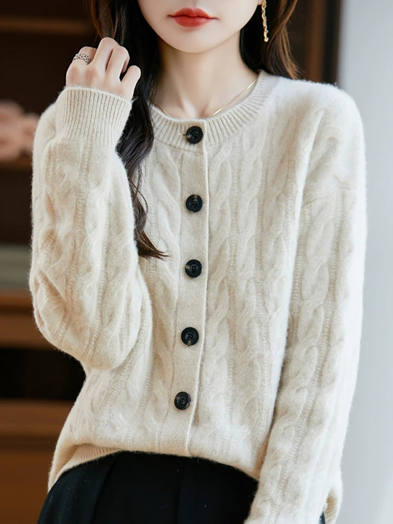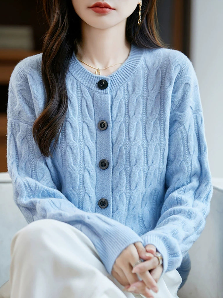 סוודר O-צוואר בצבע טהור בסתיו לנשים