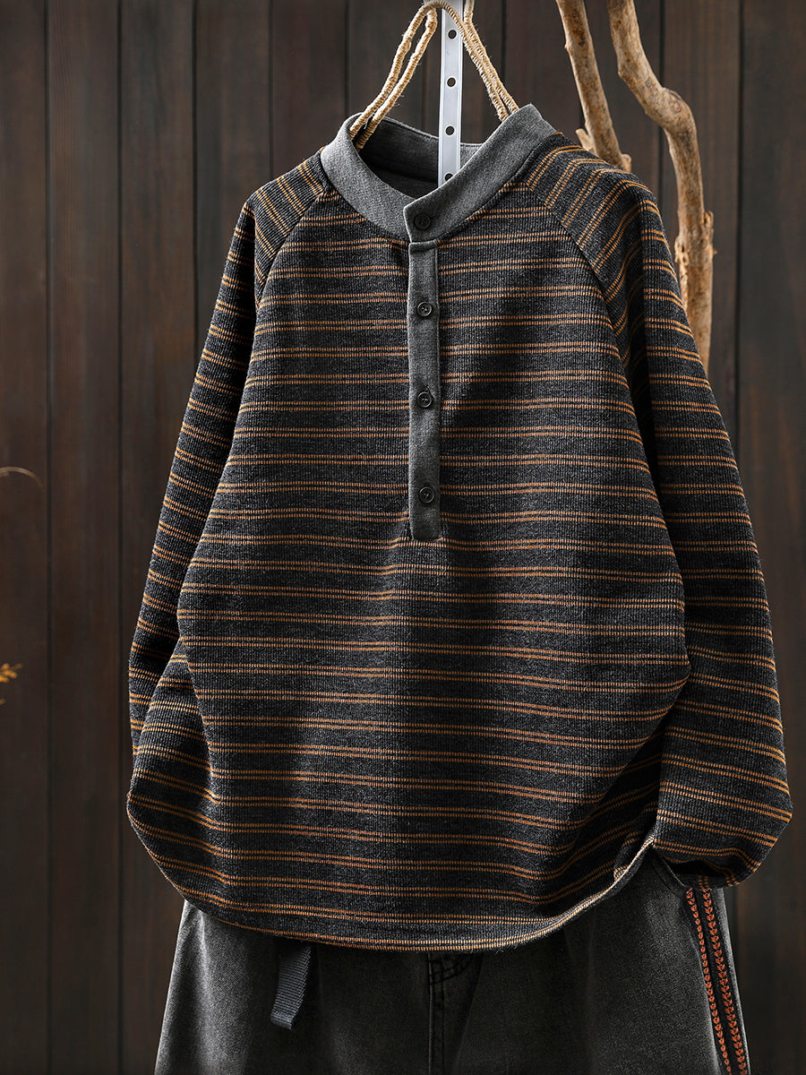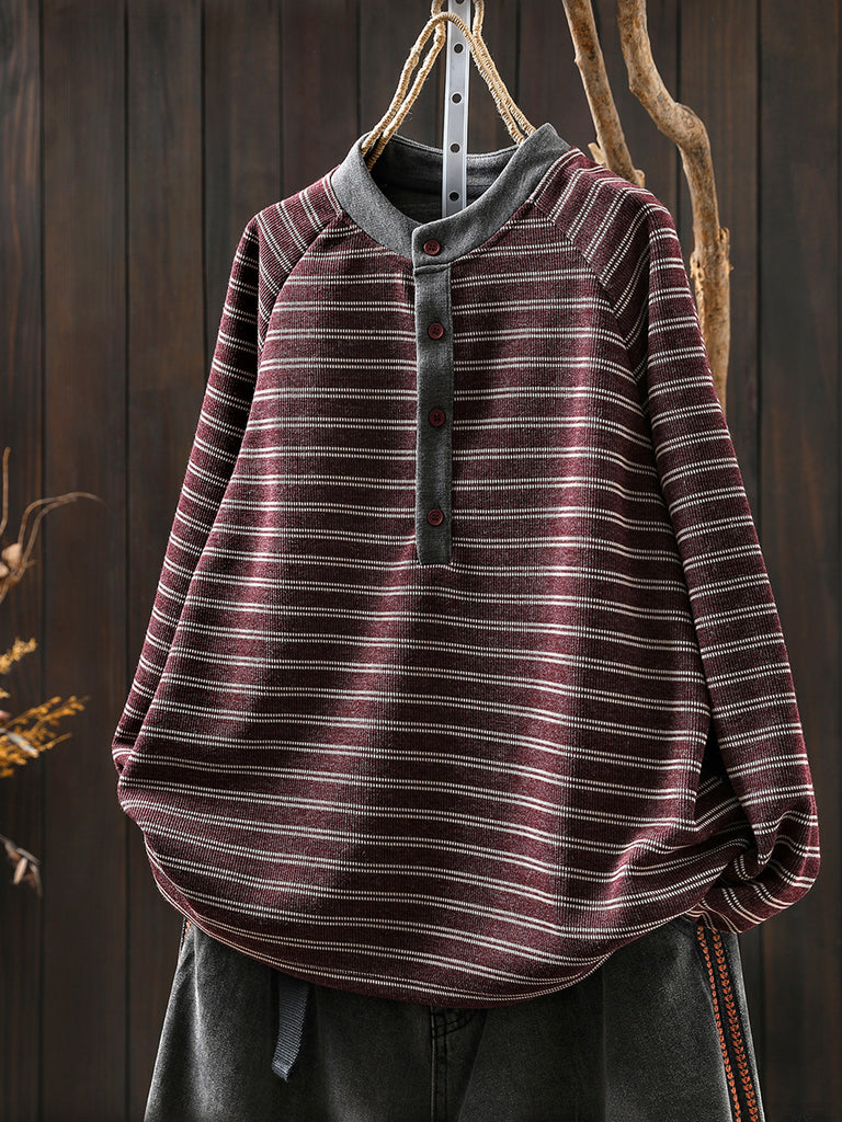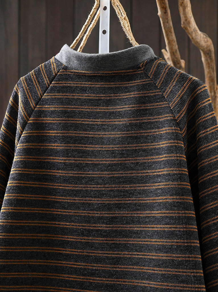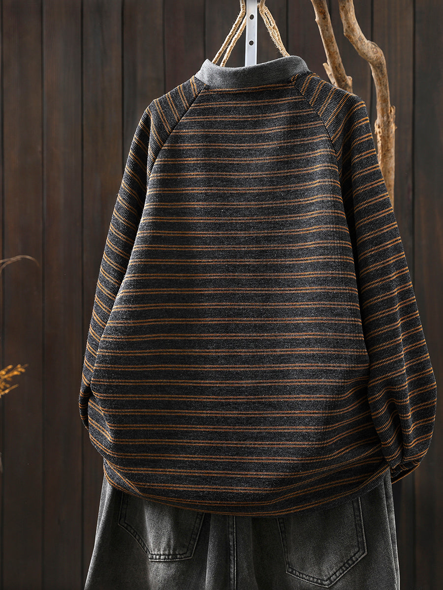 סוודר O-צוואר עם פסים בסגנון רטרו לנשים