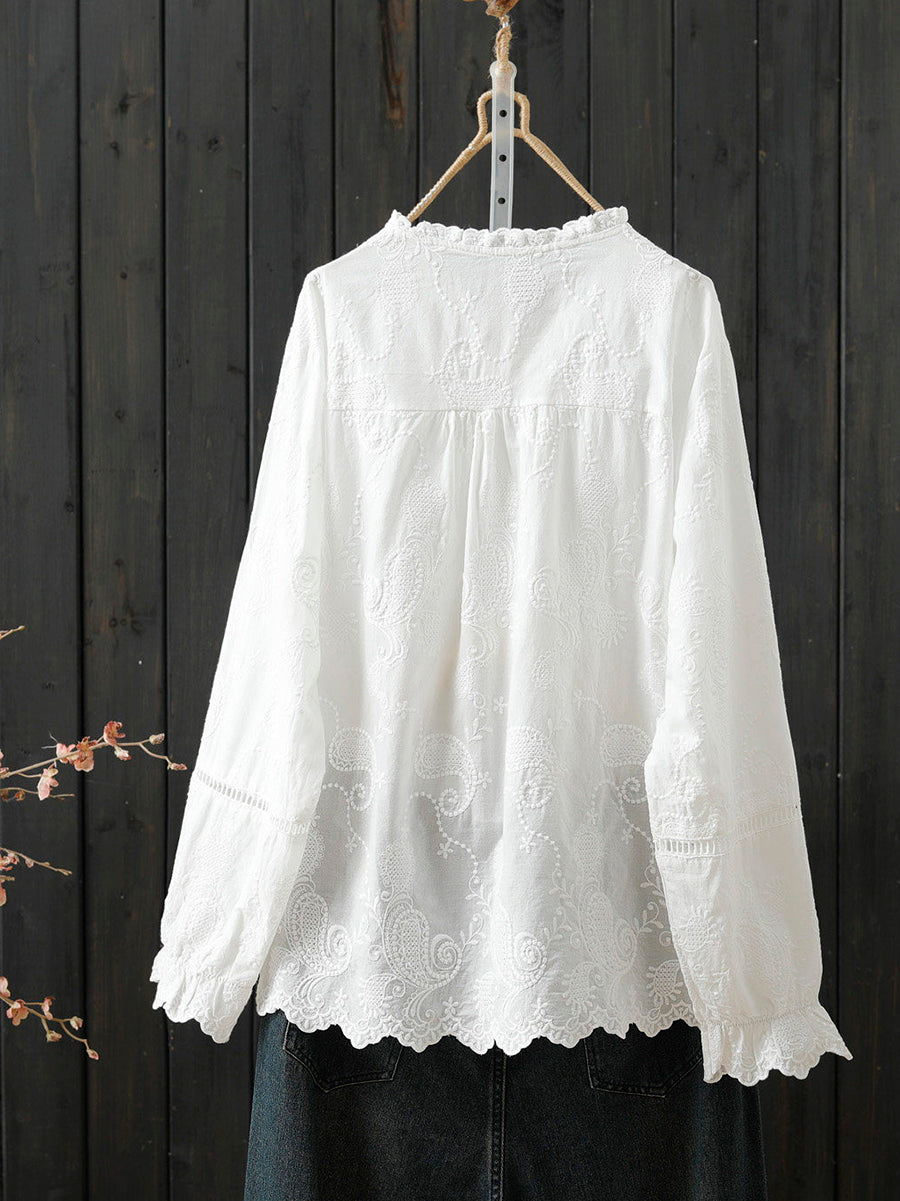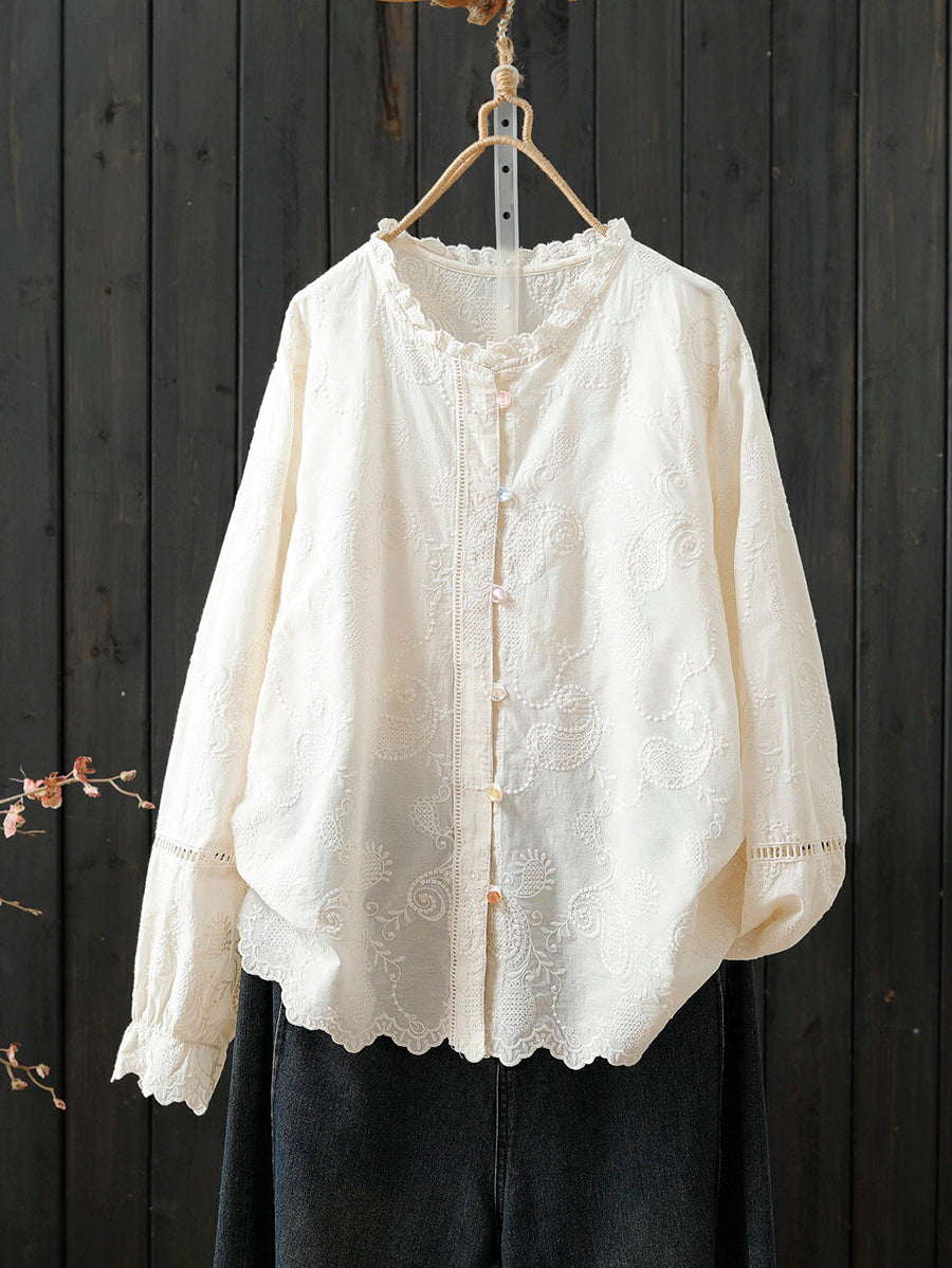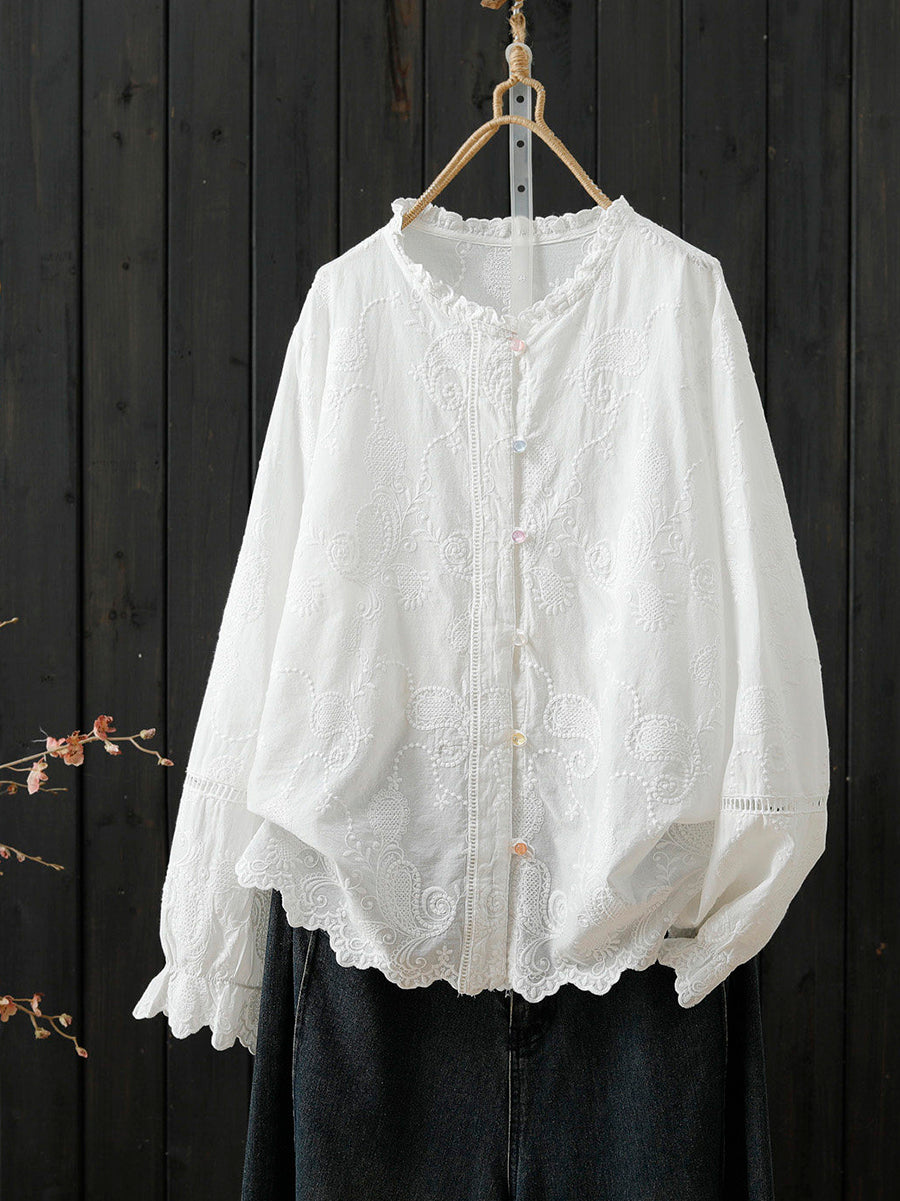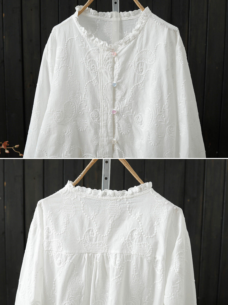 חולצת צווארון עומדת 100% כותנה רקמה אומנותית לנשים באביב
