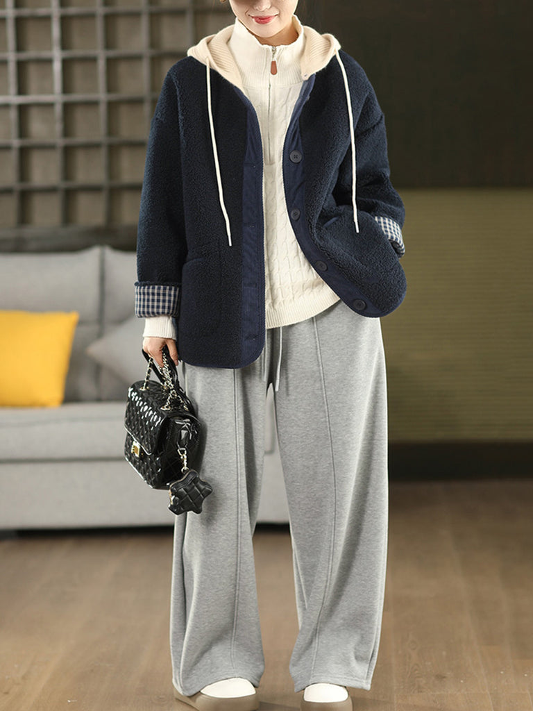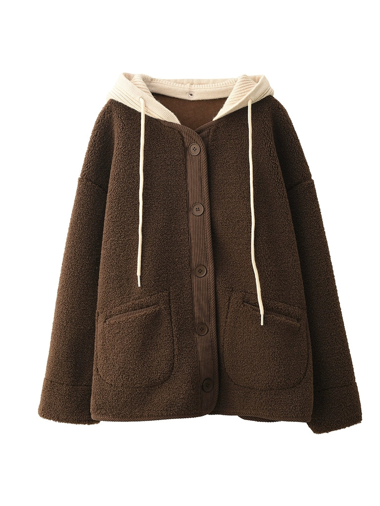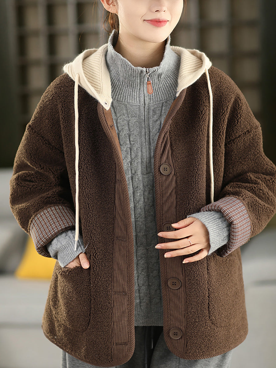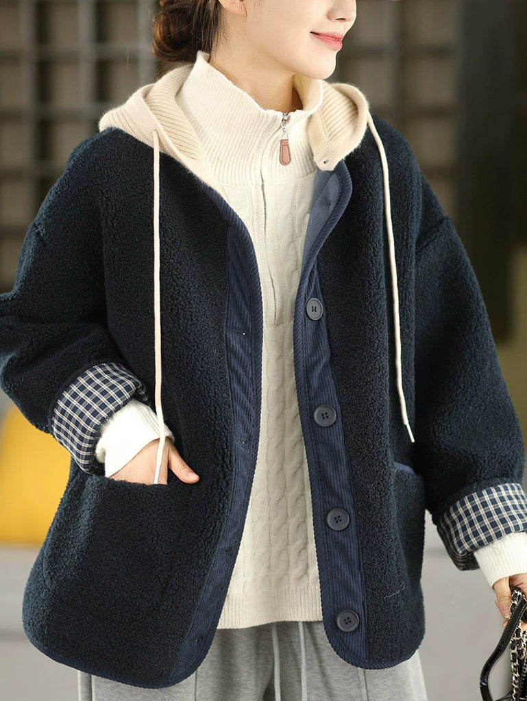 מעיל פליז חורף לנשים עם קפוצ'ון וצבעים
