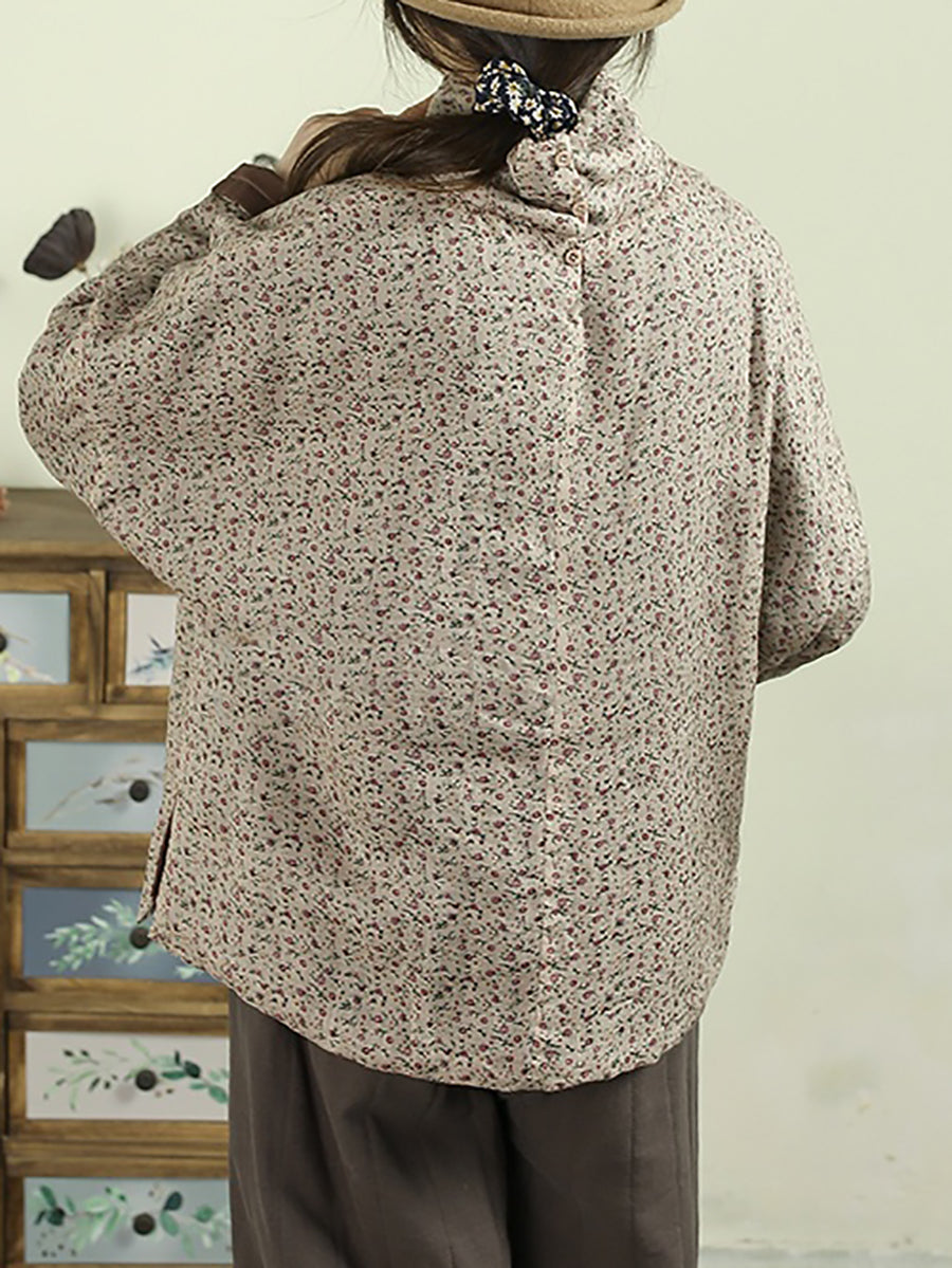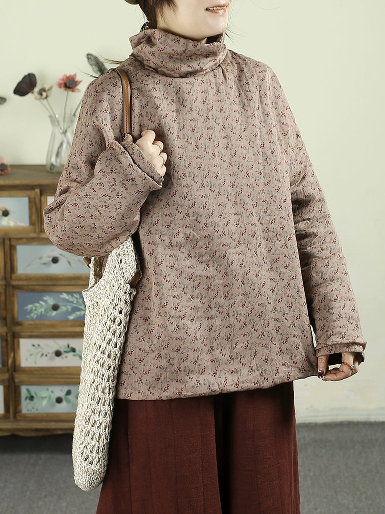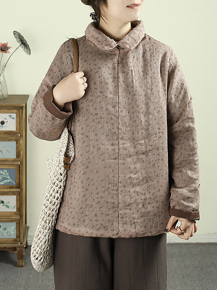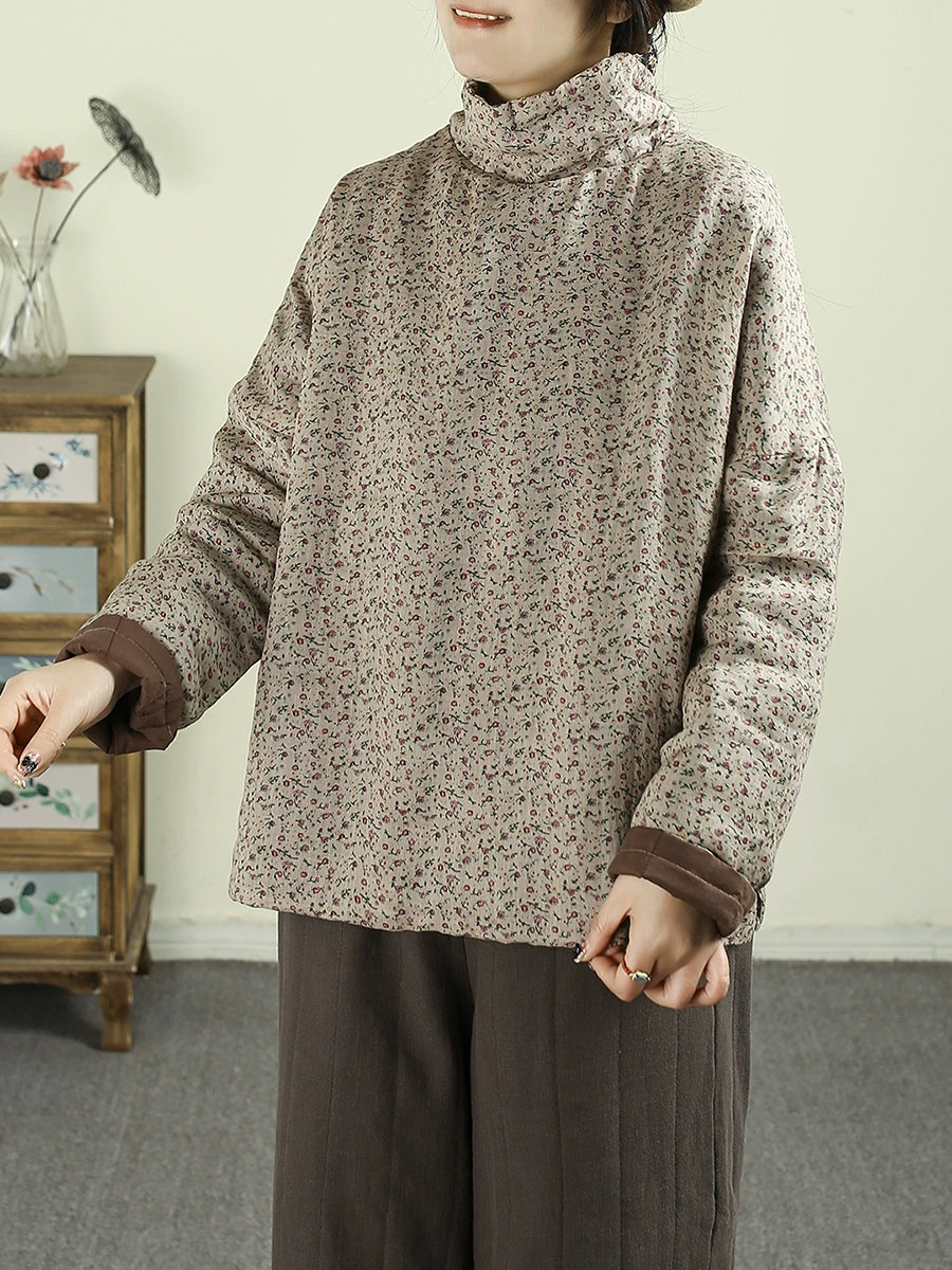 מעיל חורף אתני פרחוני מרופד בצווארון עומד לנשים