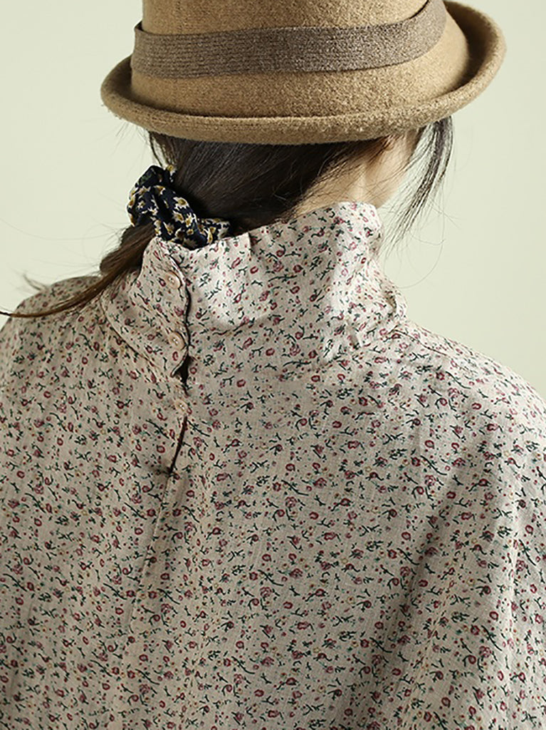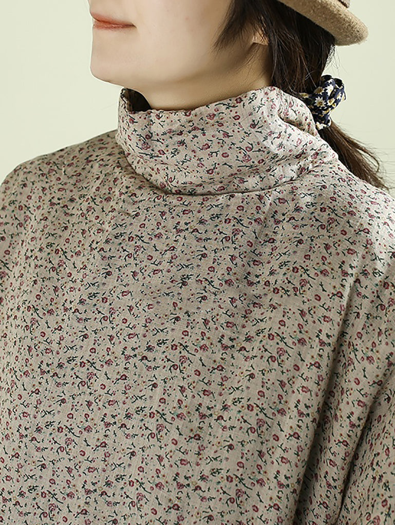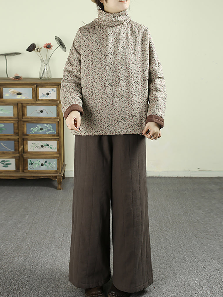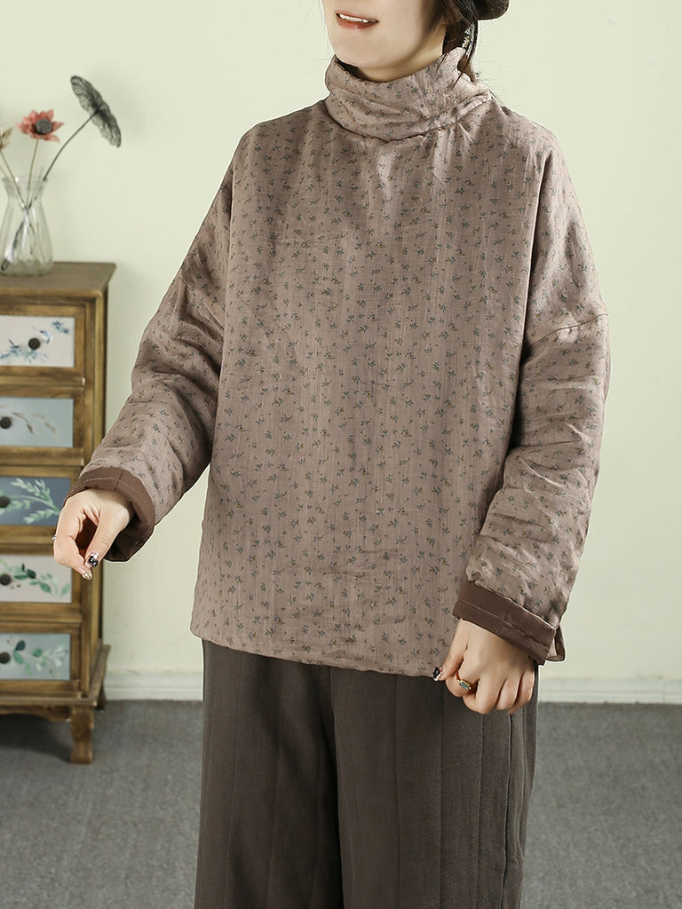 מעיל חורף אתני פרחוני מרופד בצווארון עומד לנשים