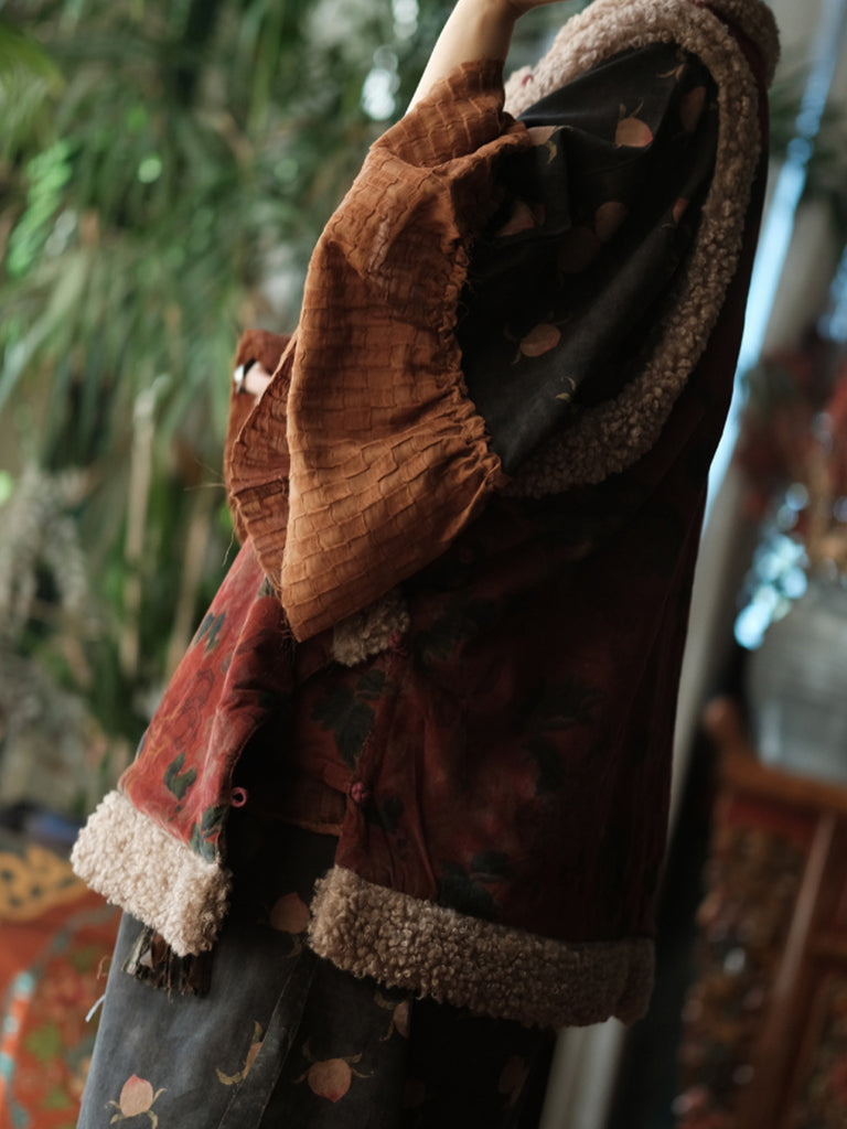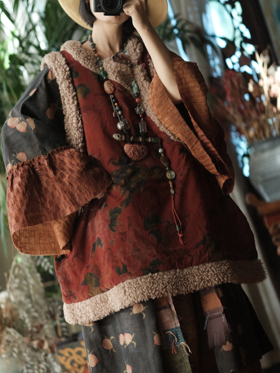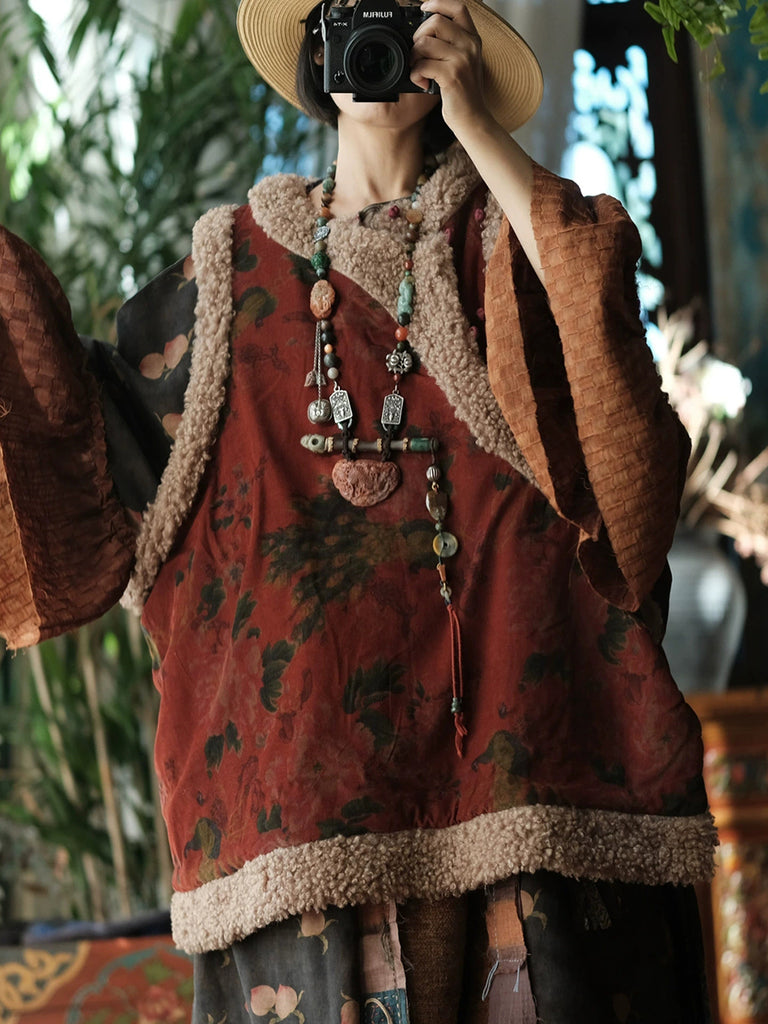 אפוד מרופד עם שוליים מצופים פרחים וינטג' לנשים