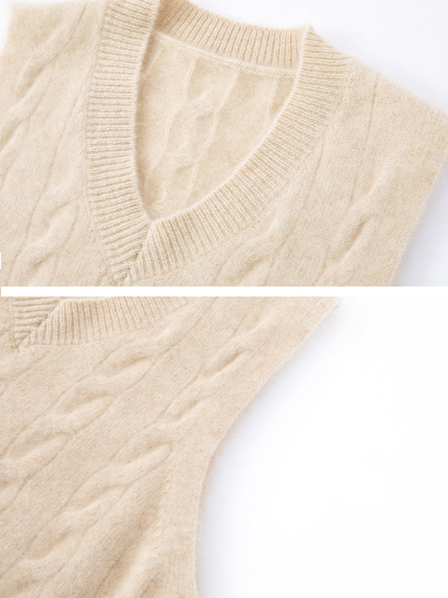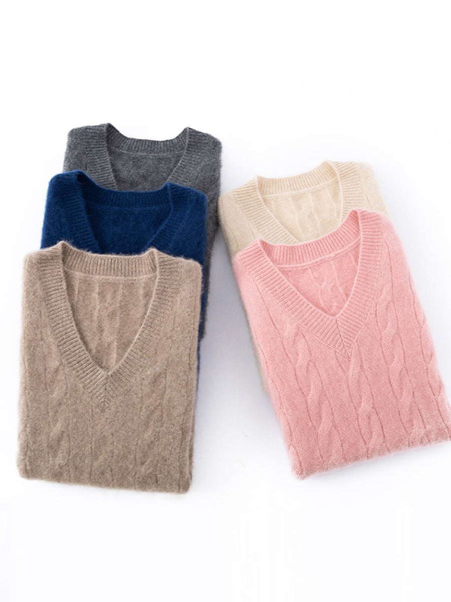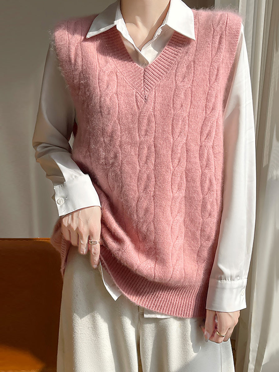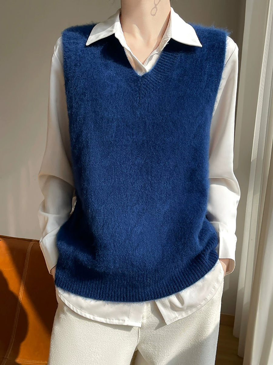 אפוד סרוג עם צווארון V בצבע טהור בסתיו לנשים