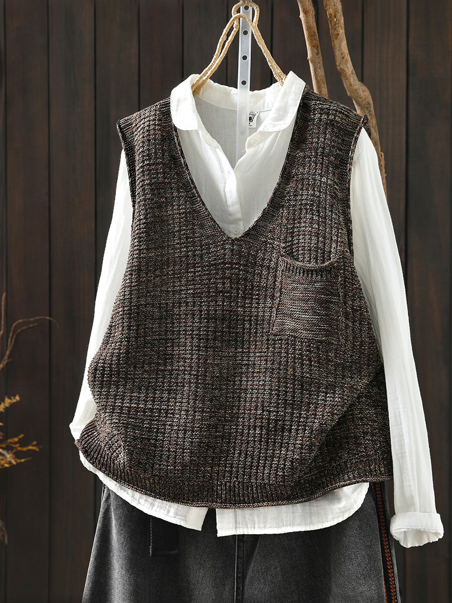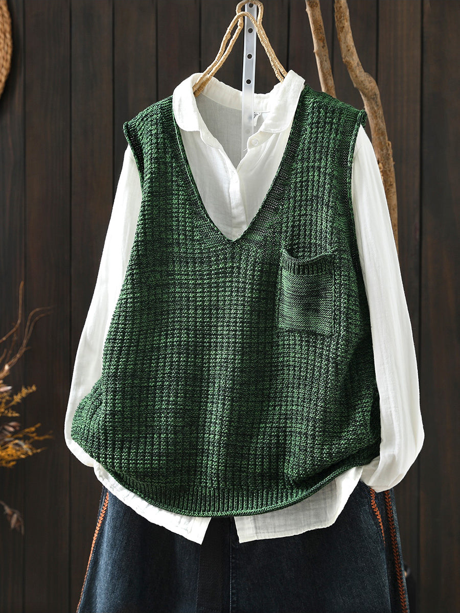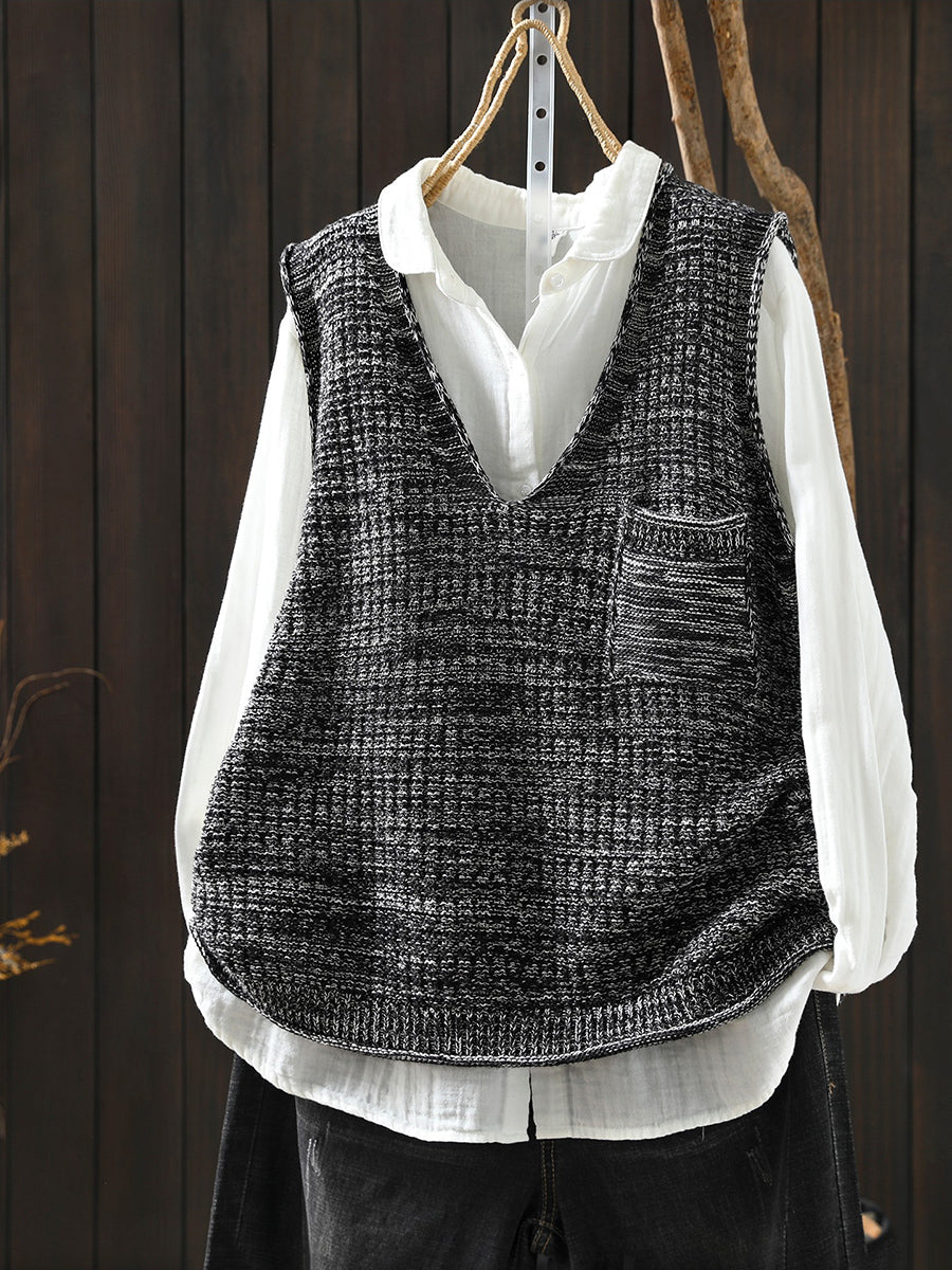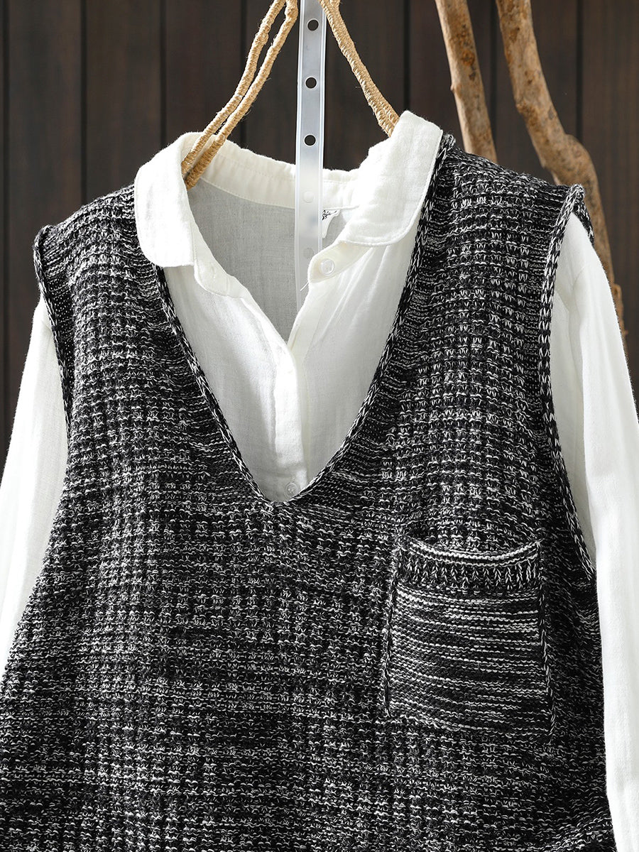 אפוד סרוג עם צווארון V לאביב לנשים