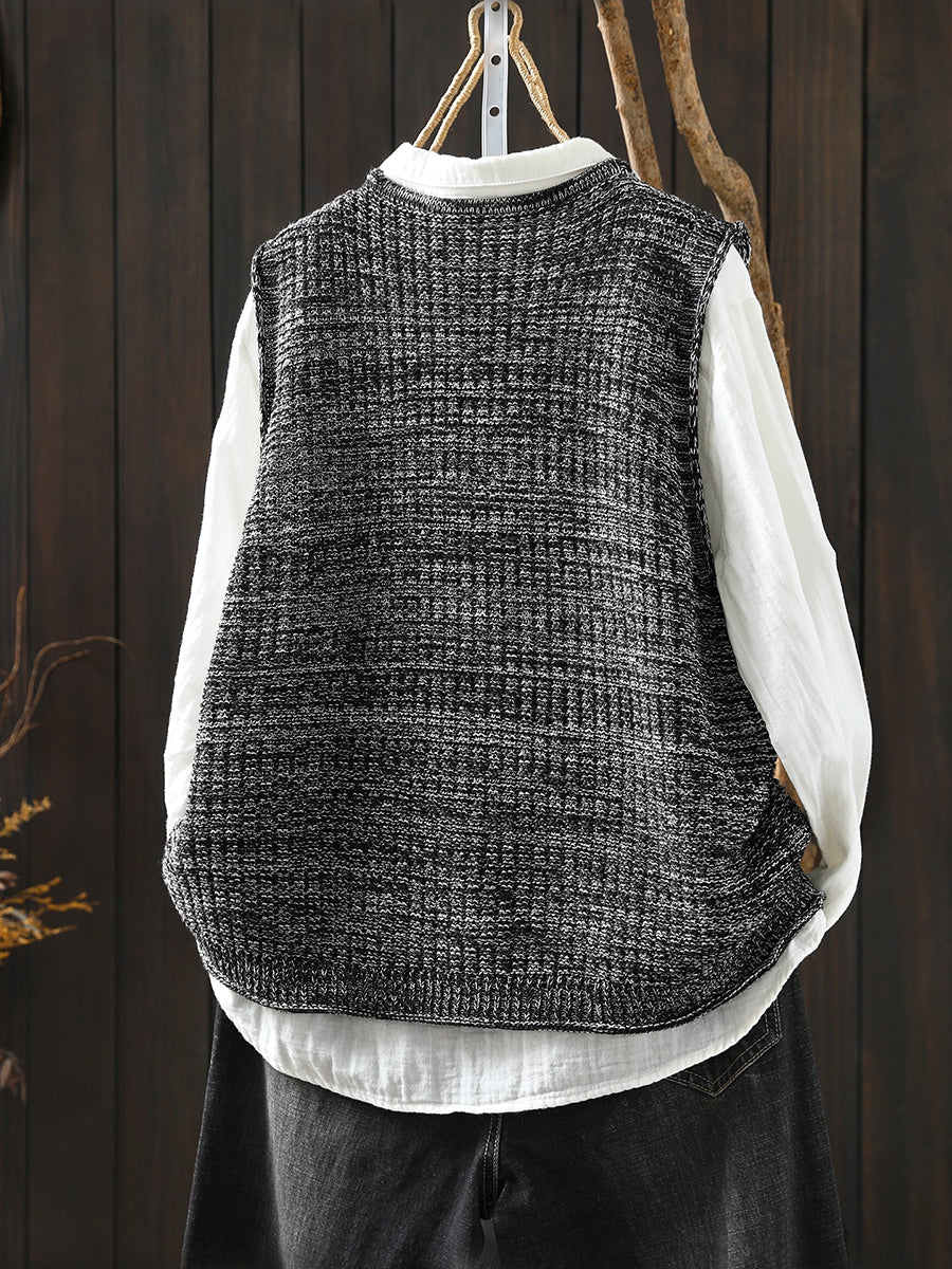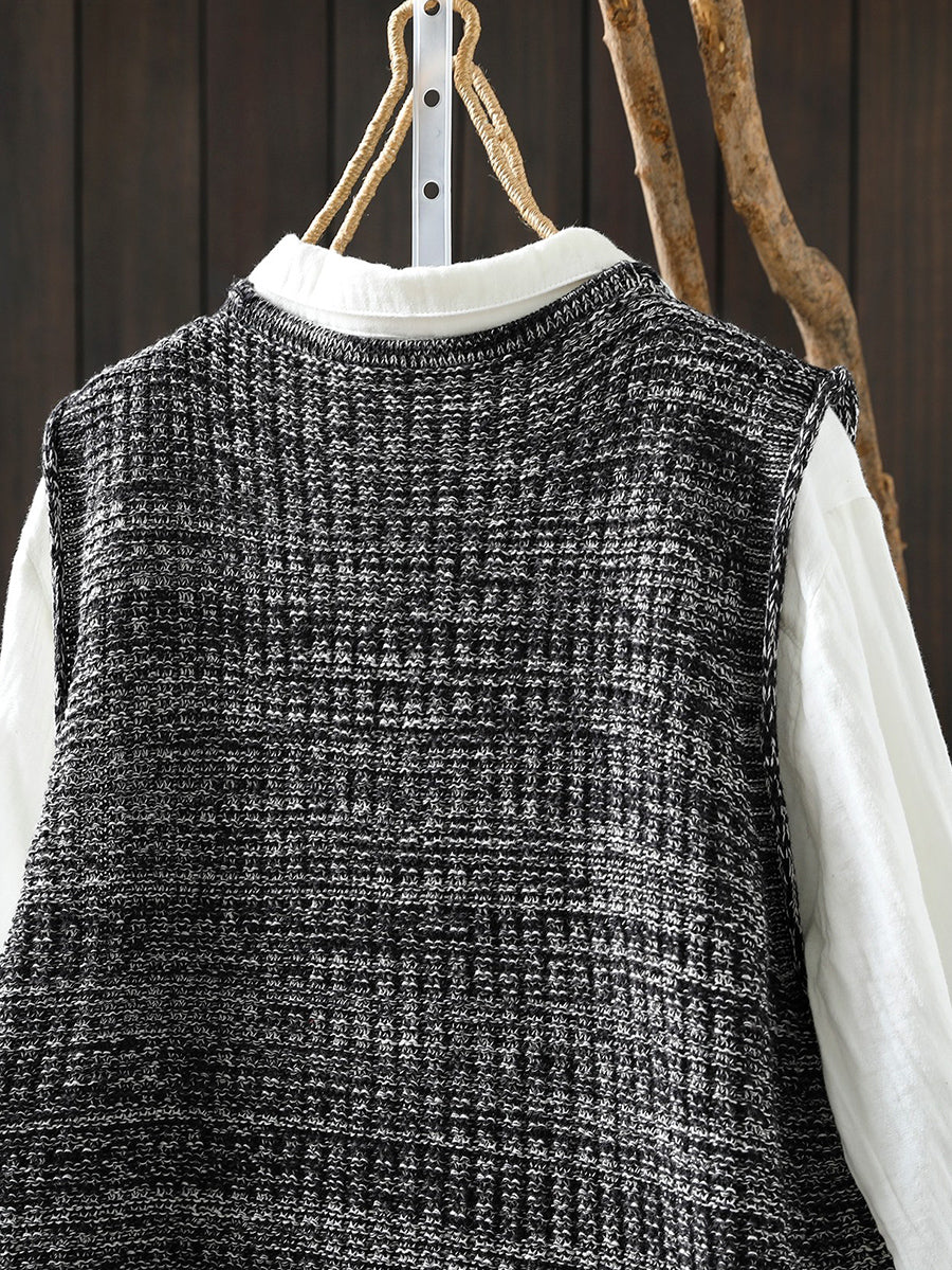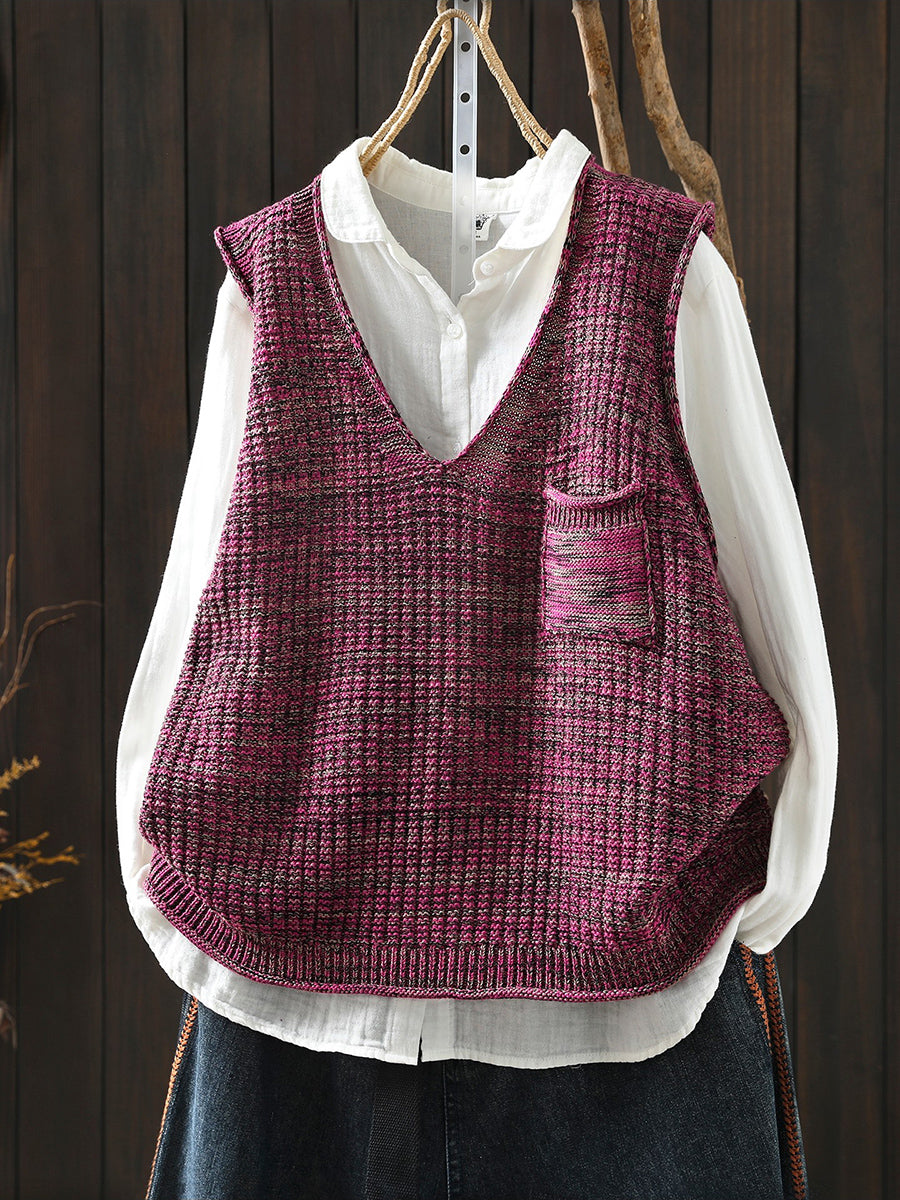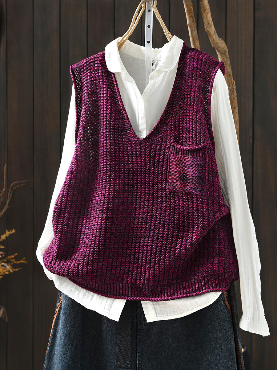 אפוד סרוג עם צווארון V לאביב לנשים