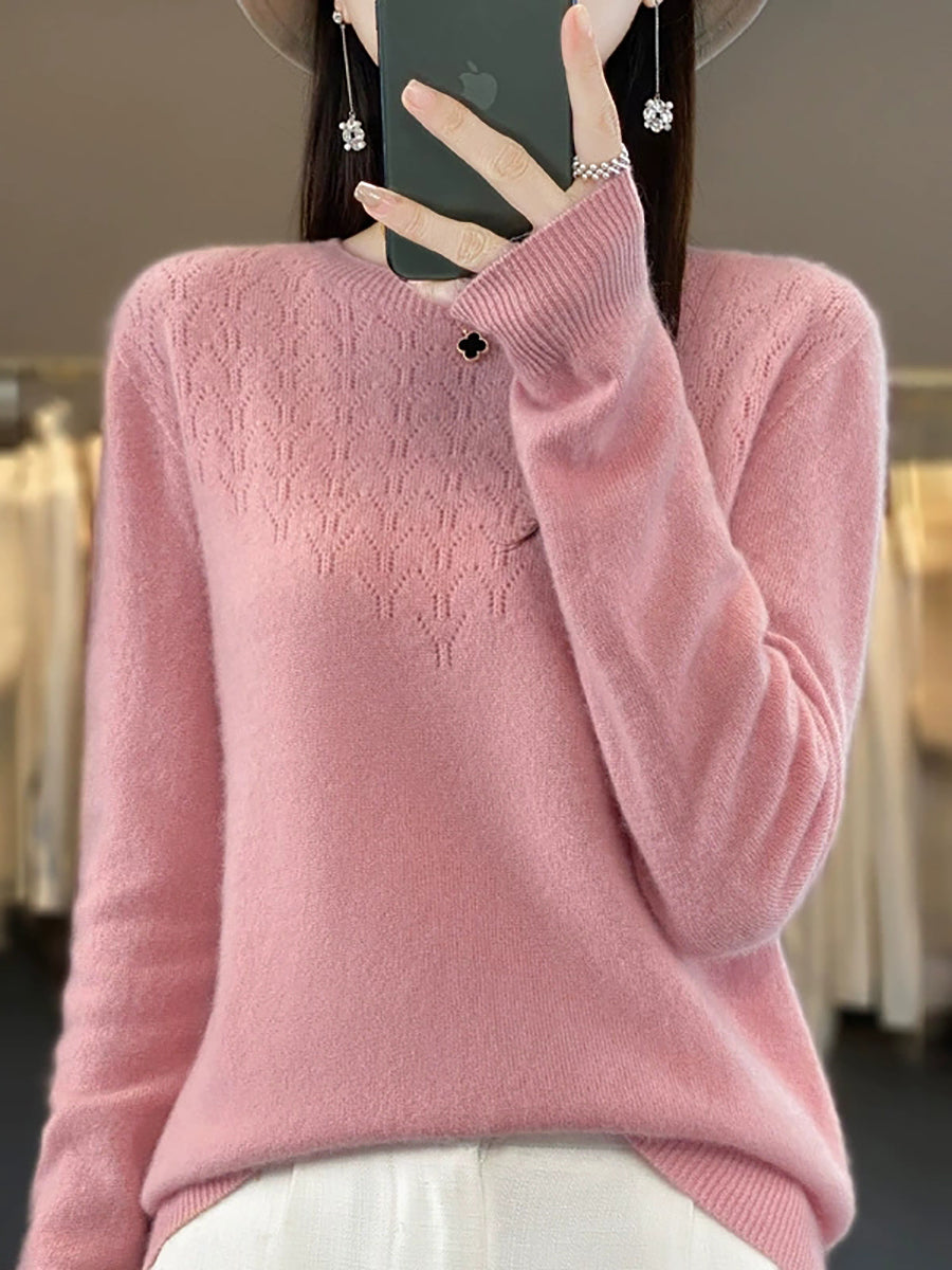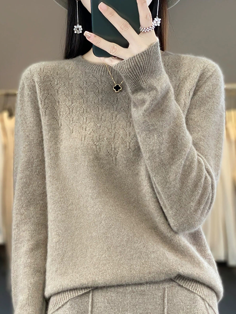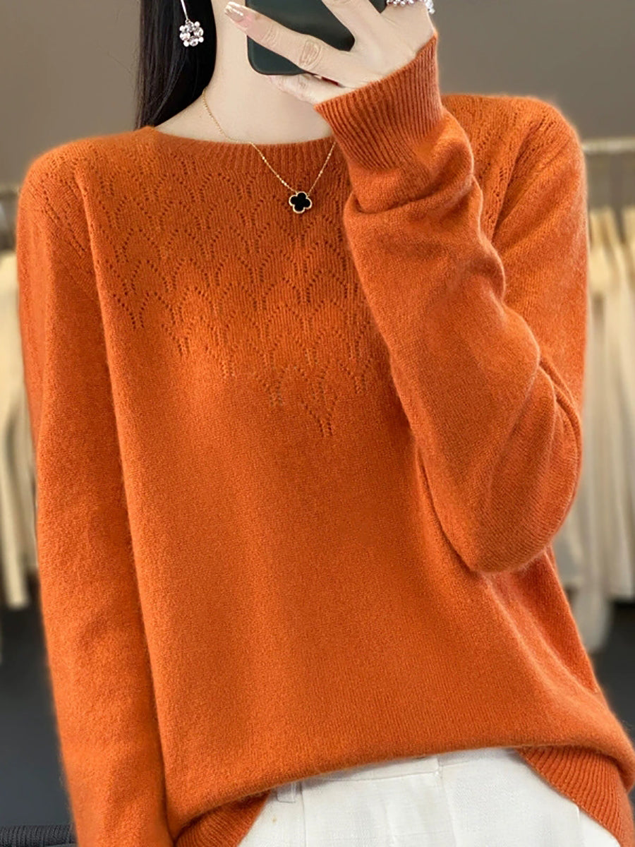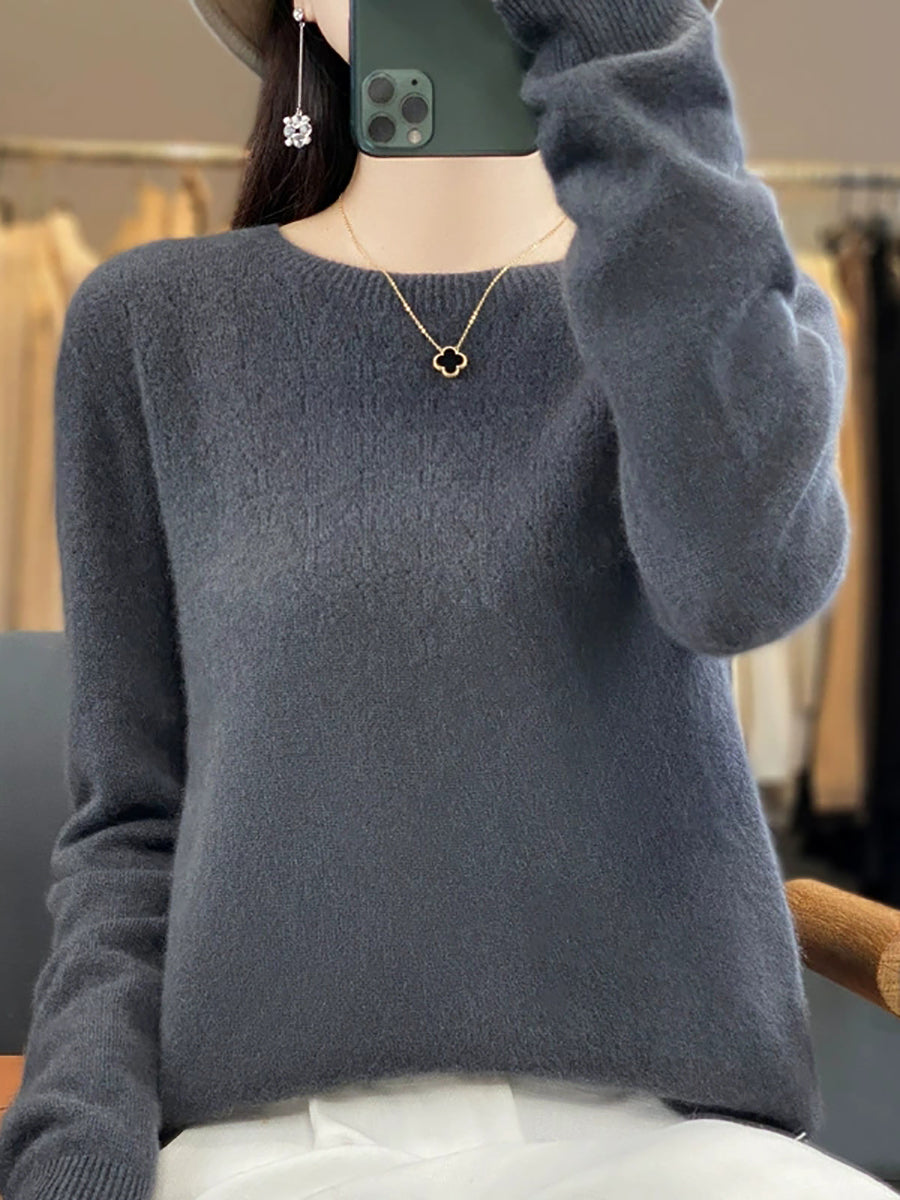 סוודר O-צוואר בצבע טהור אומנותי לנשים סתיו