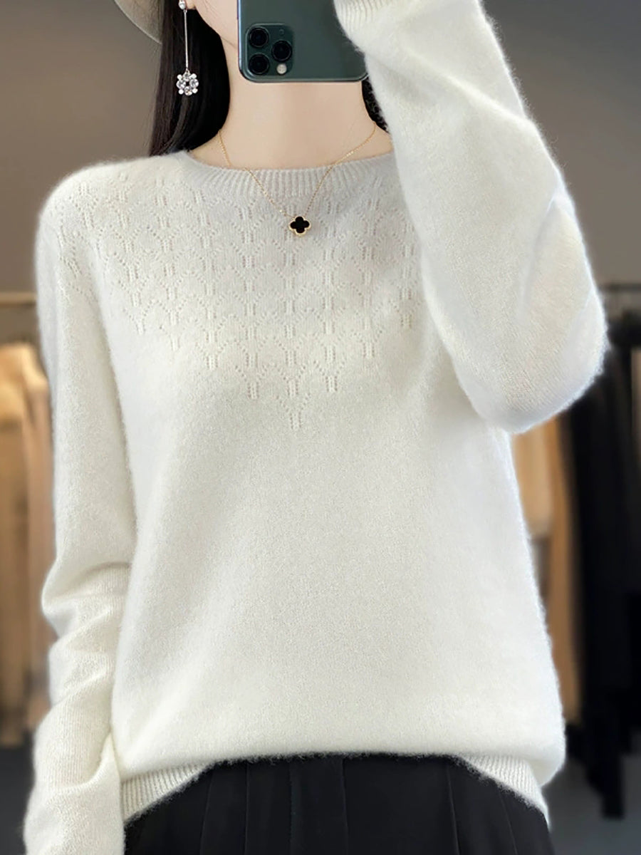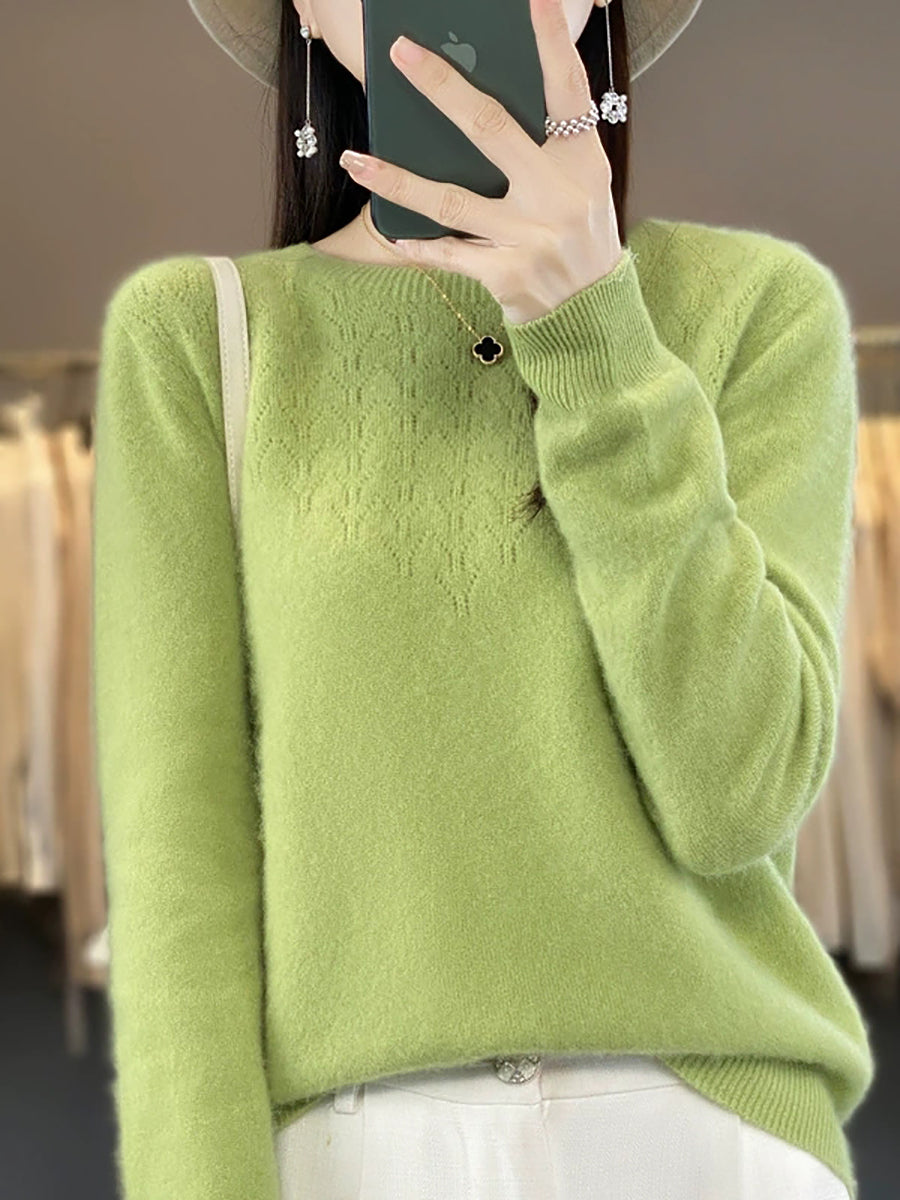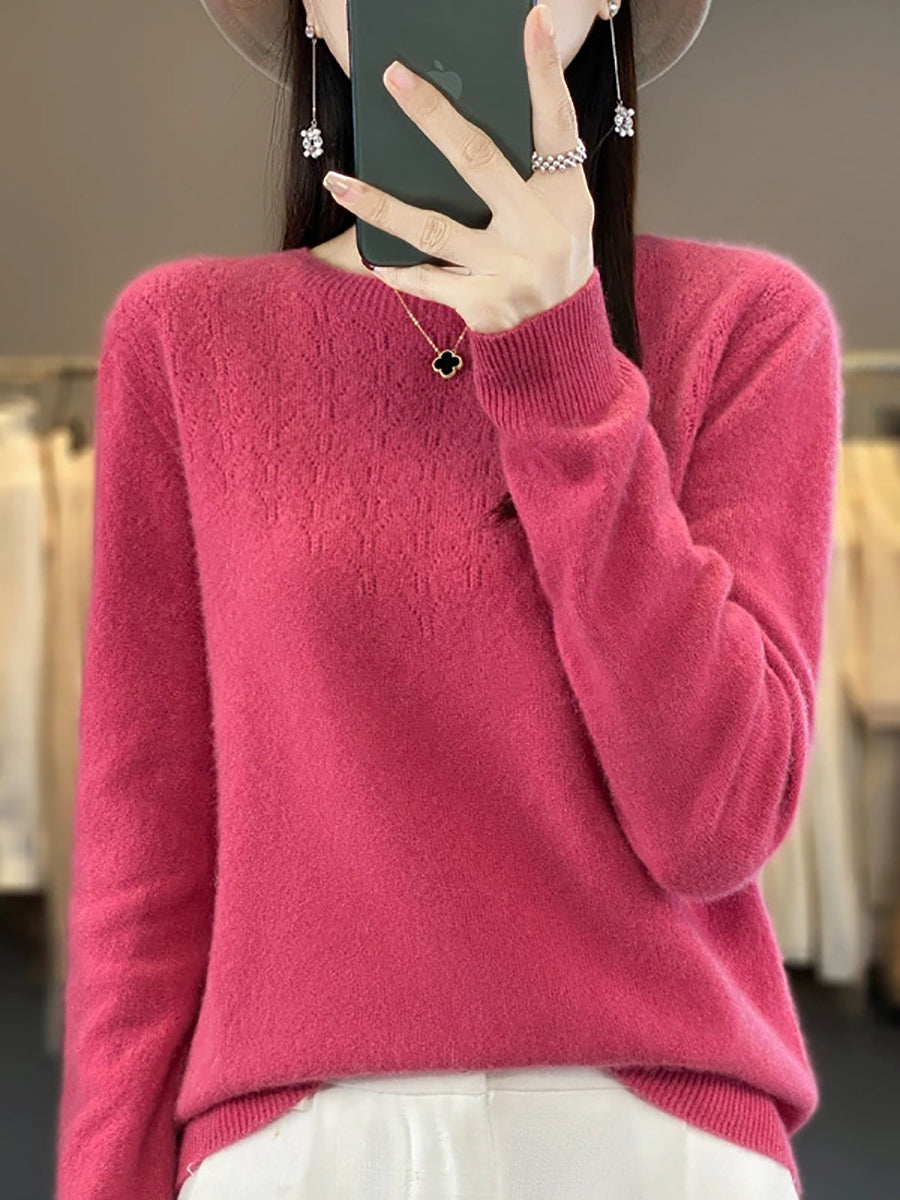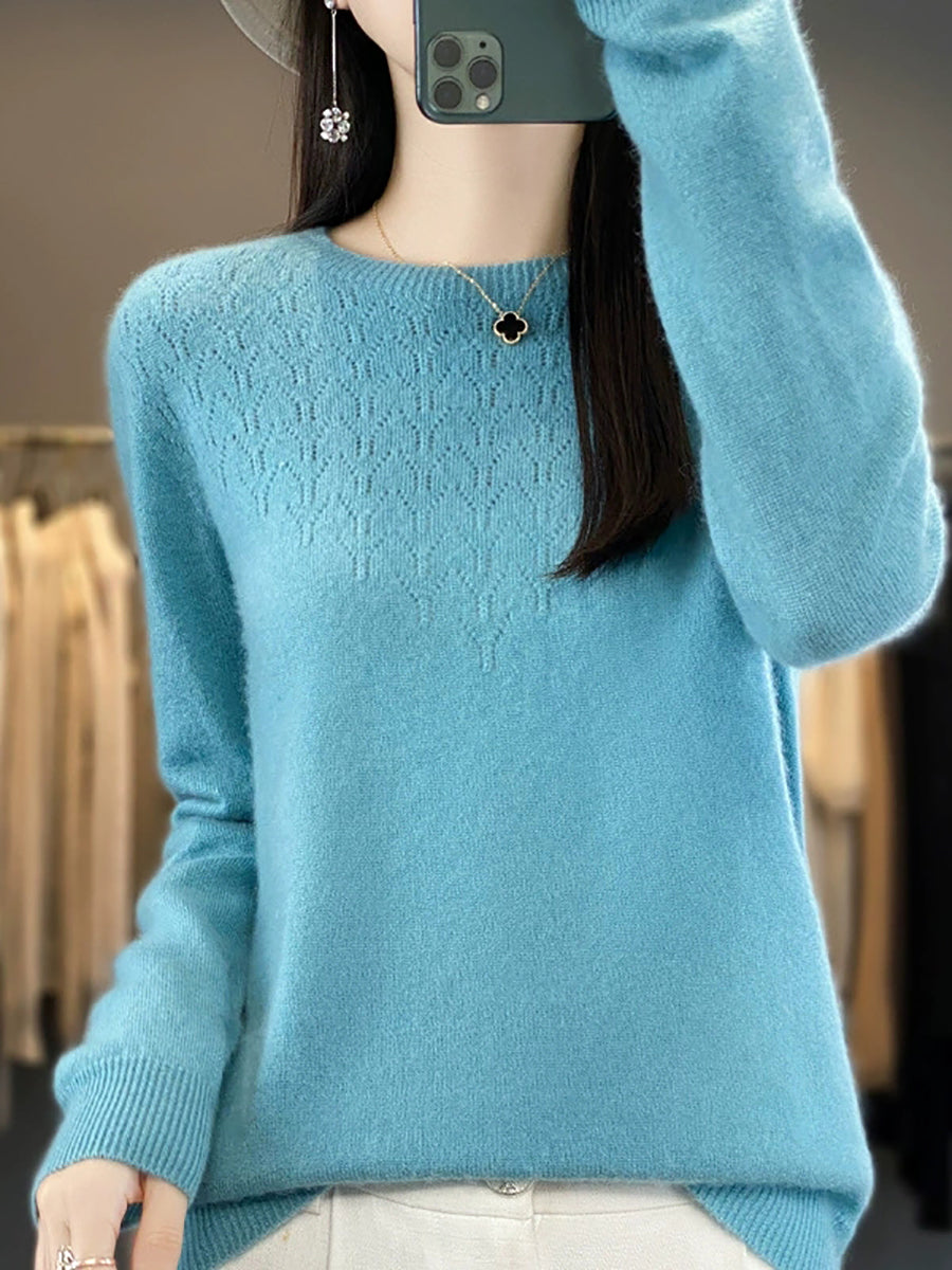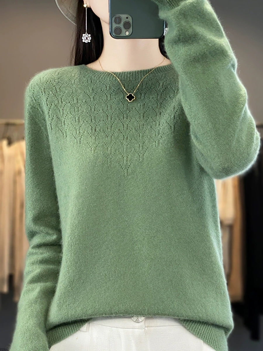 סוודר O-צוואר בצבע טהור אומנותי לנשים סתיו